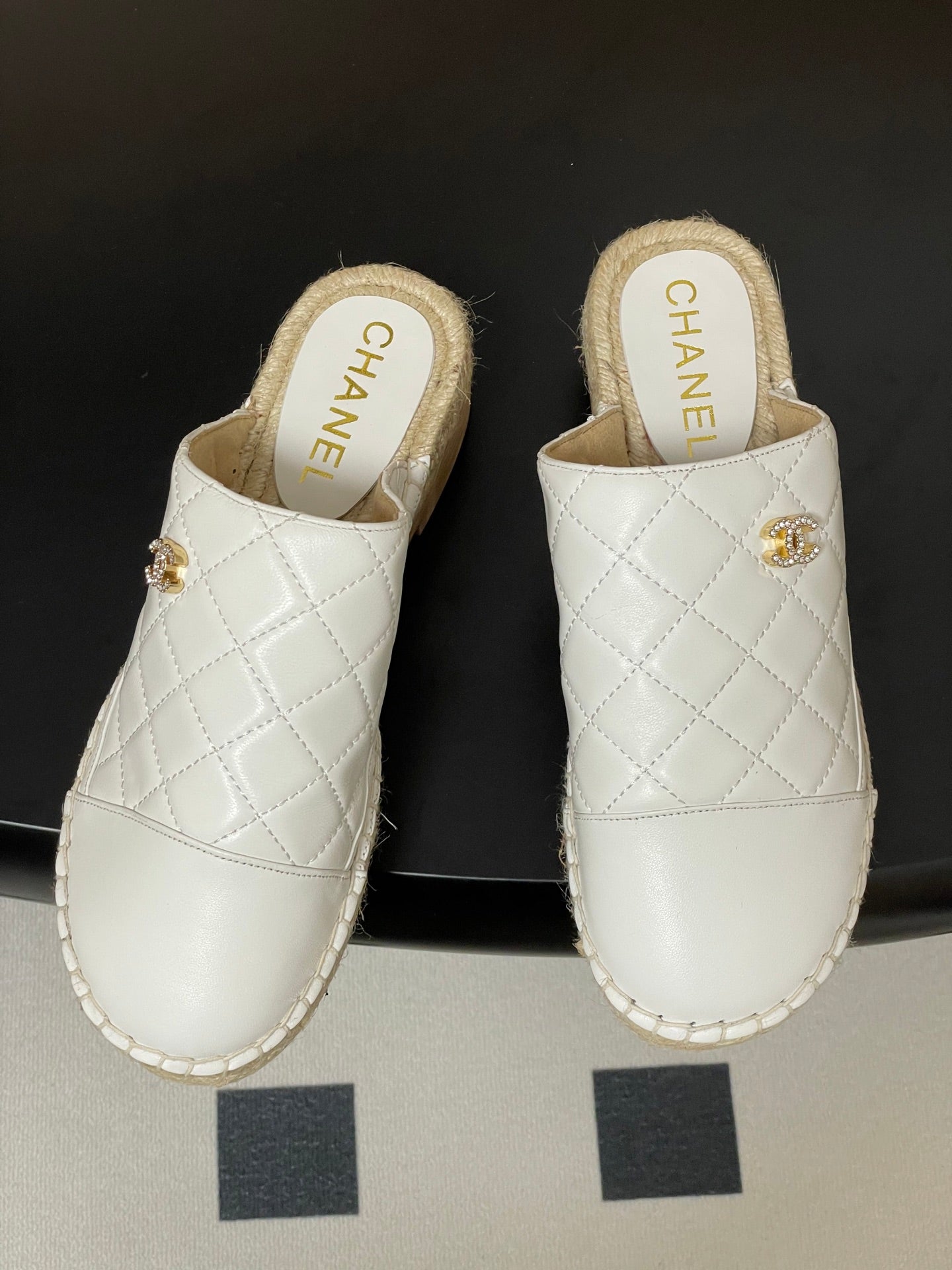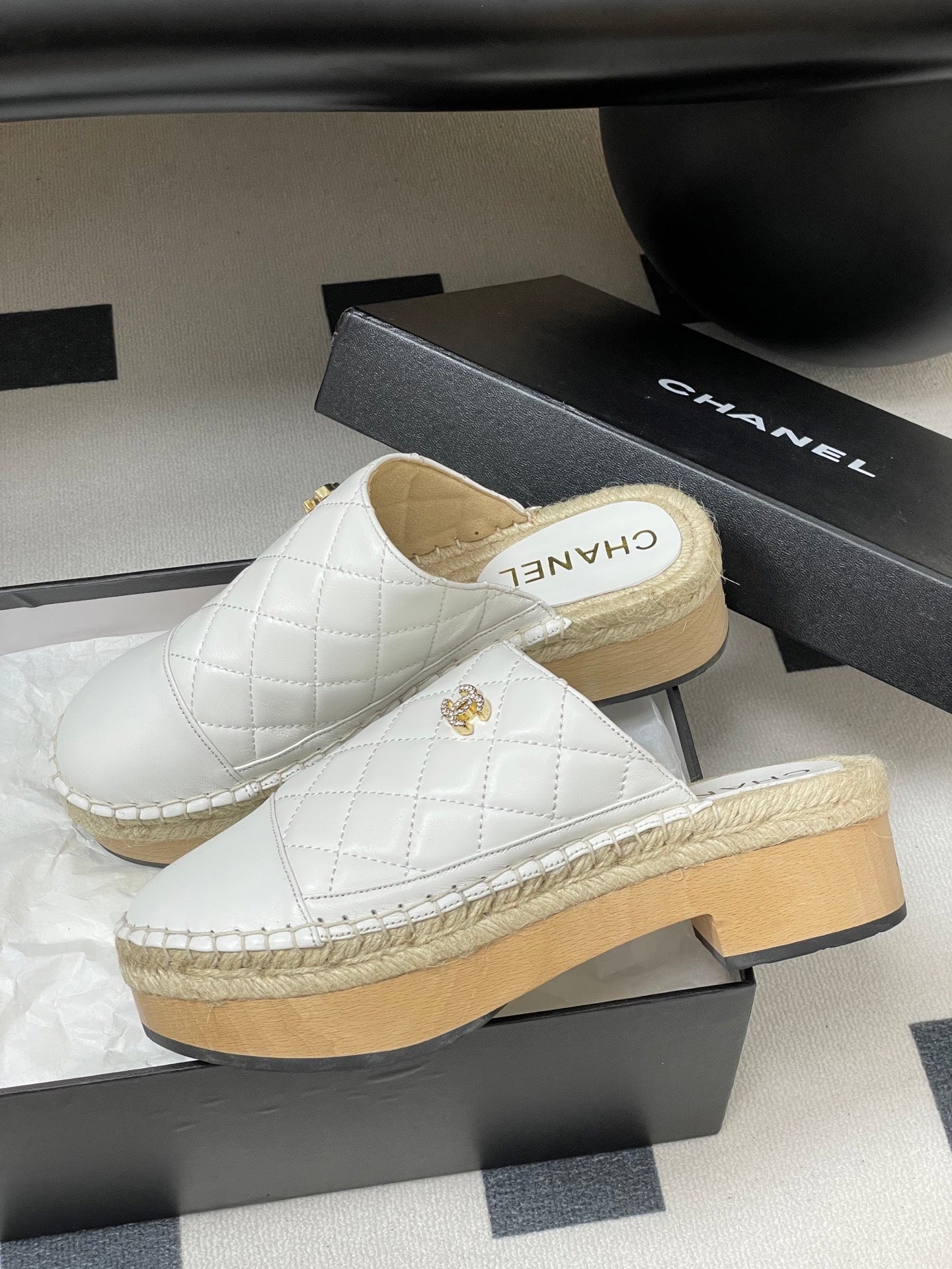 CC 25A Clog Slippers 40mm White Quilted Lambskin 393950