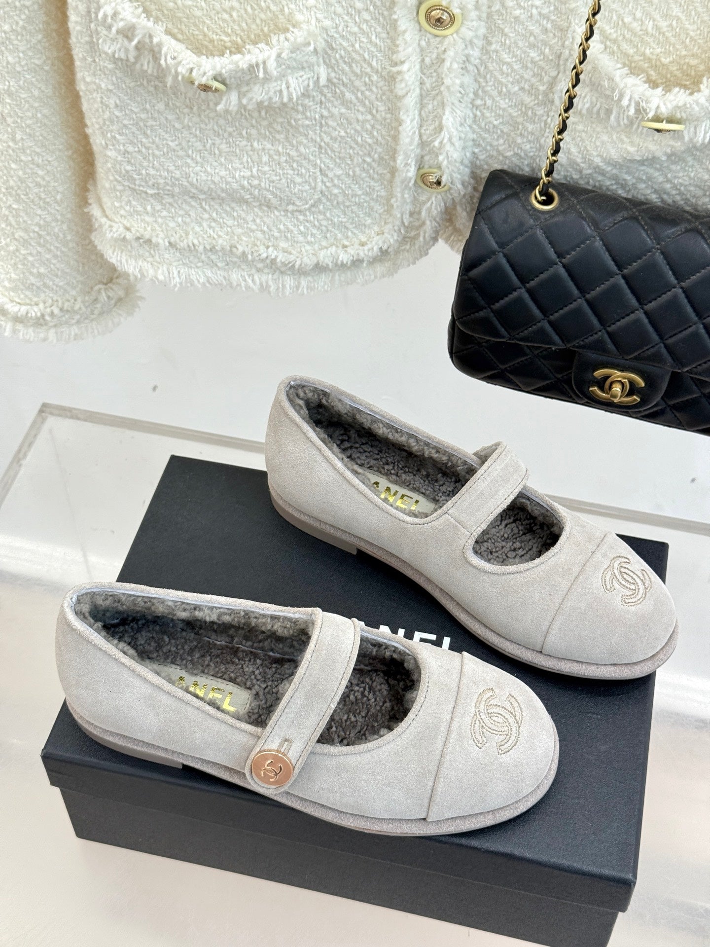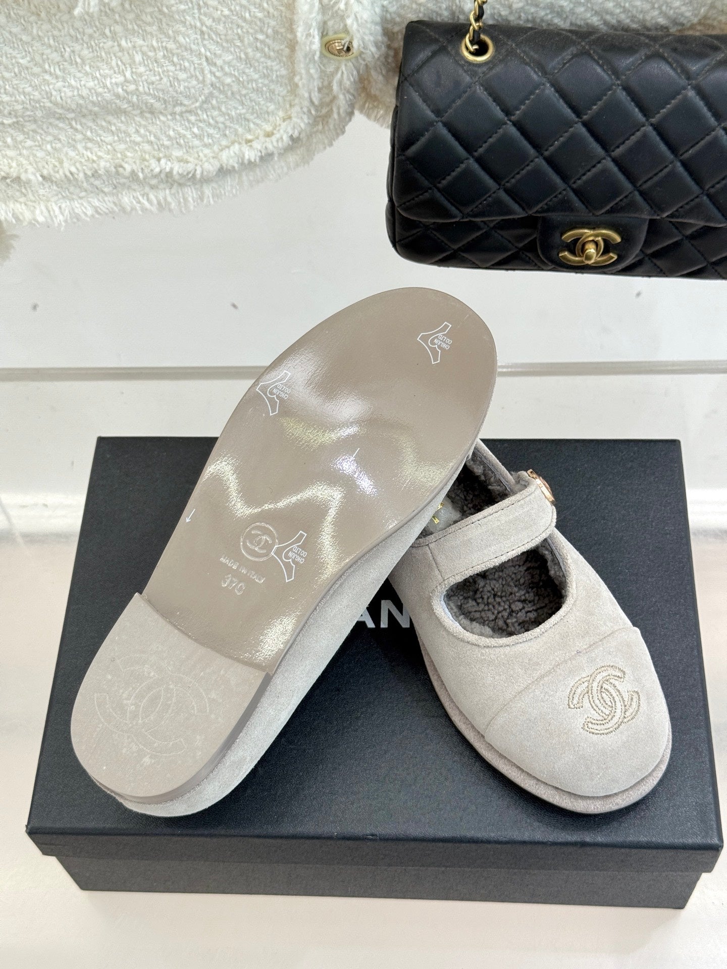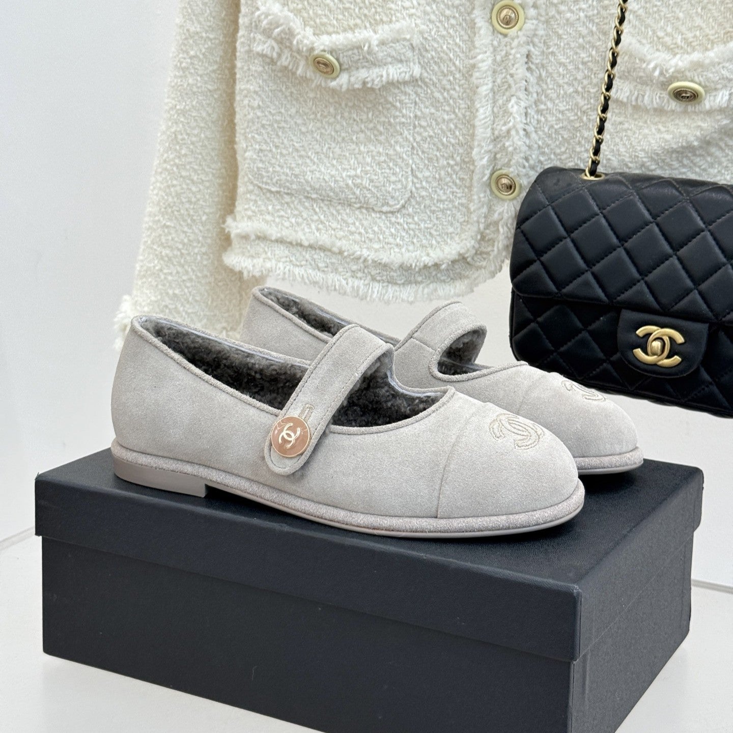 CC 25A Mary Janes Grey Suede And Lambswool 404663