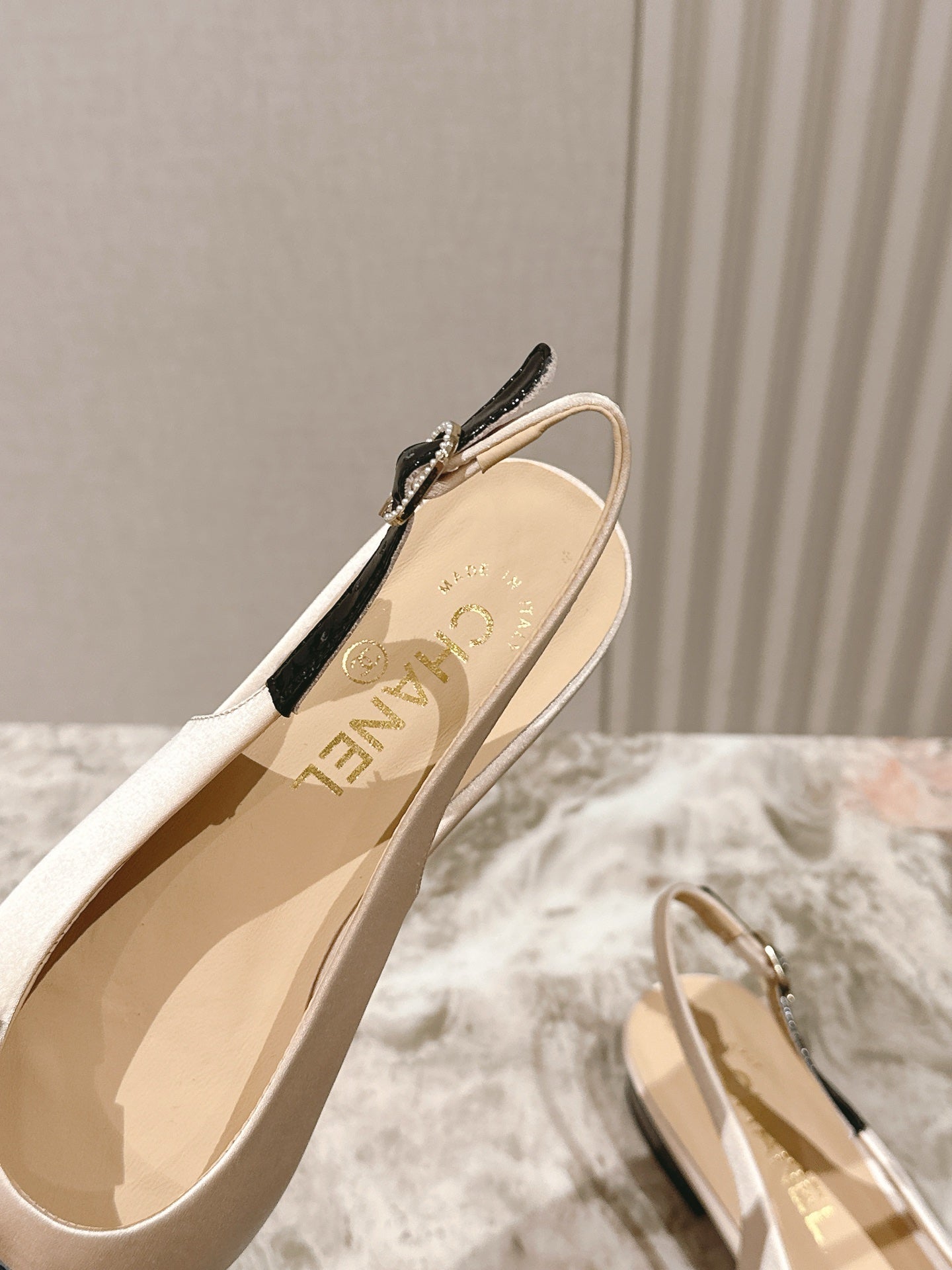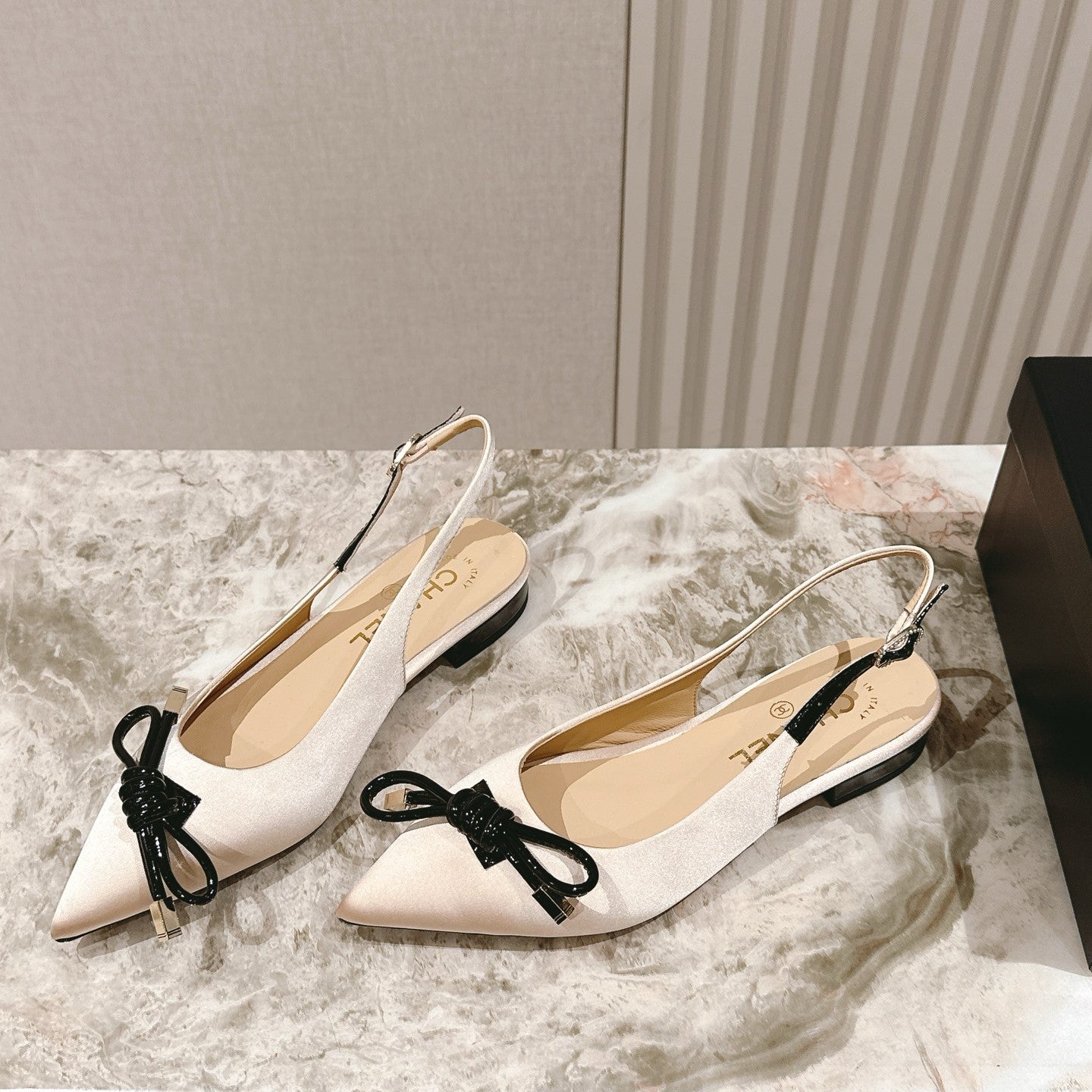 CC 25ss Bow Tie Slingbacks 20mm Beige Satin & Patent Leather 447410