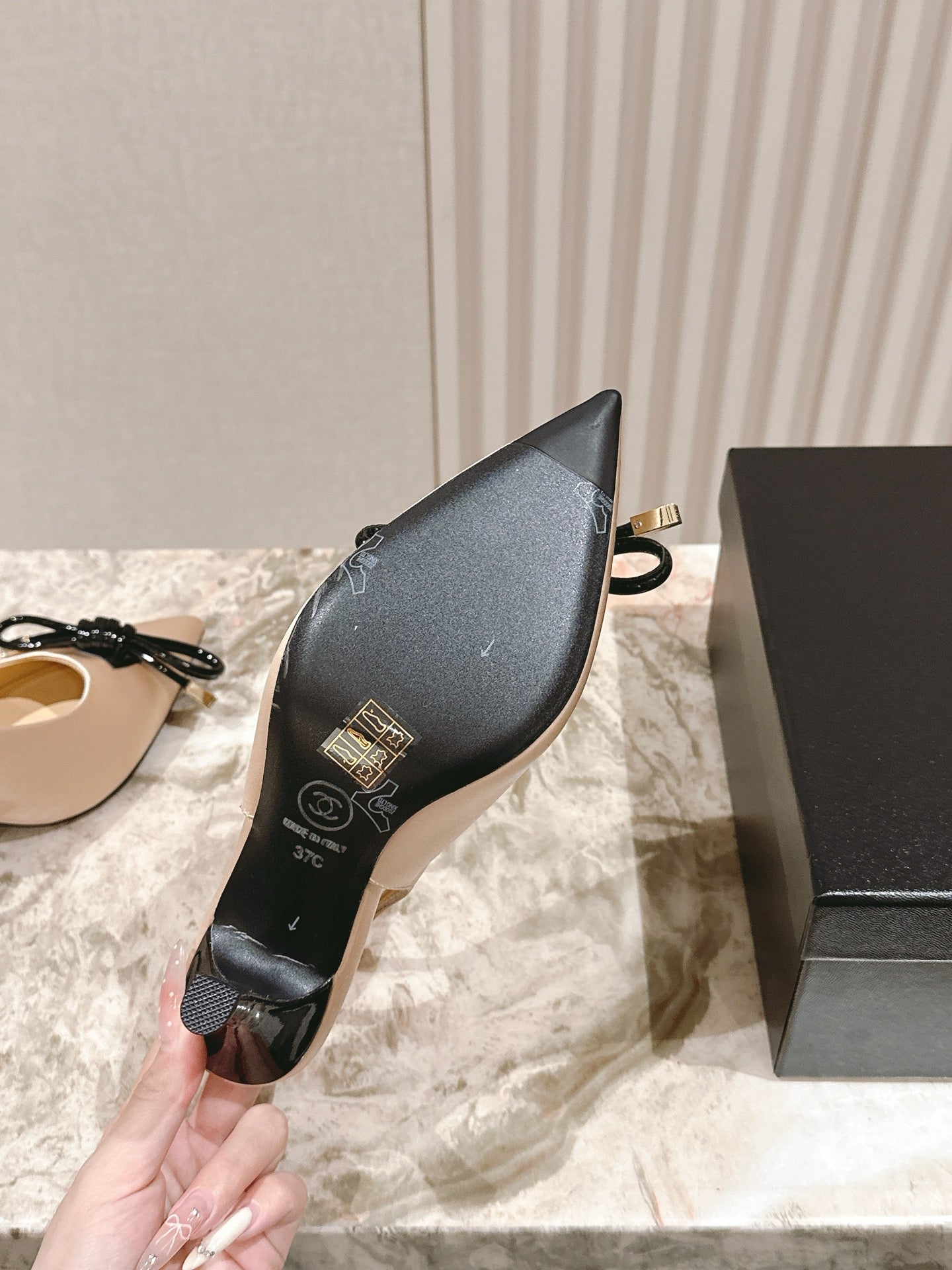 CC 25ss Bow Tie Slingbacks 85mm Beige Satin & Patent Leather 447413