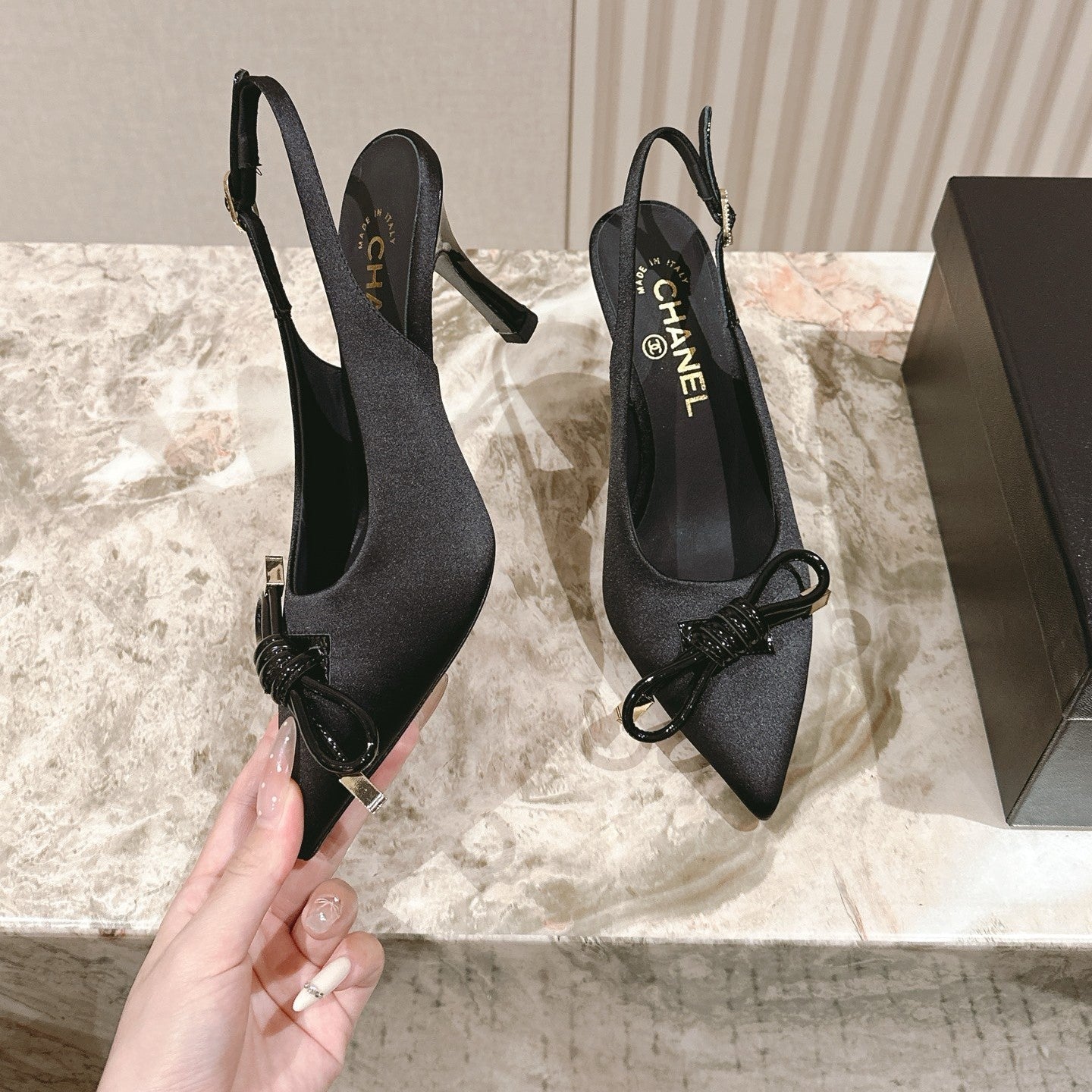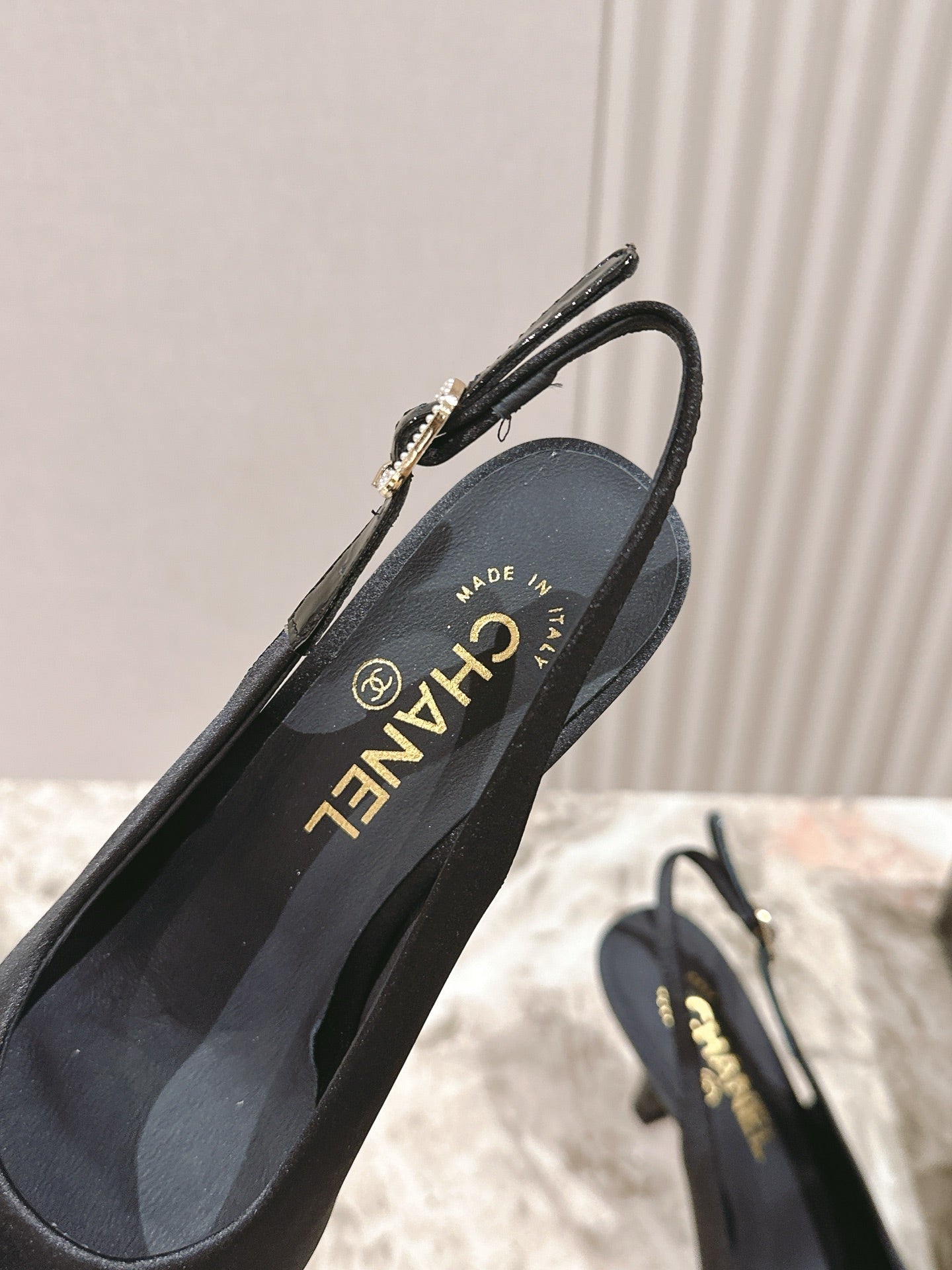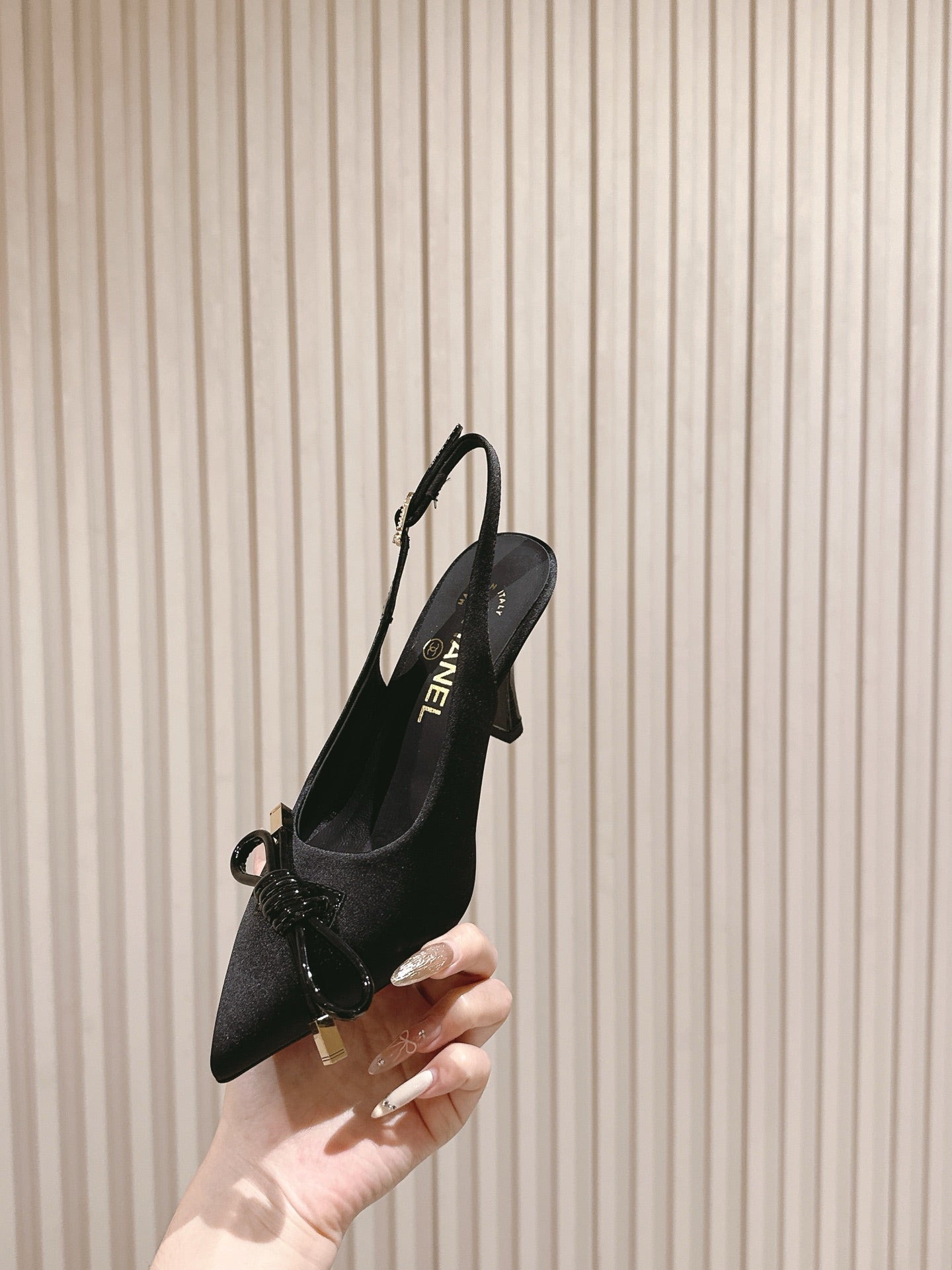 CC 25ss Bow Tie Slingbacks 85mm Black Satin & Patent Leather 447414