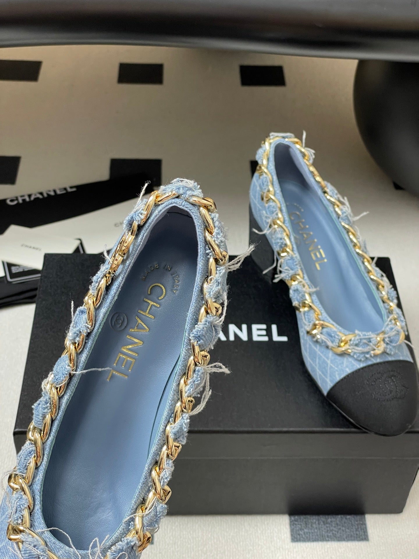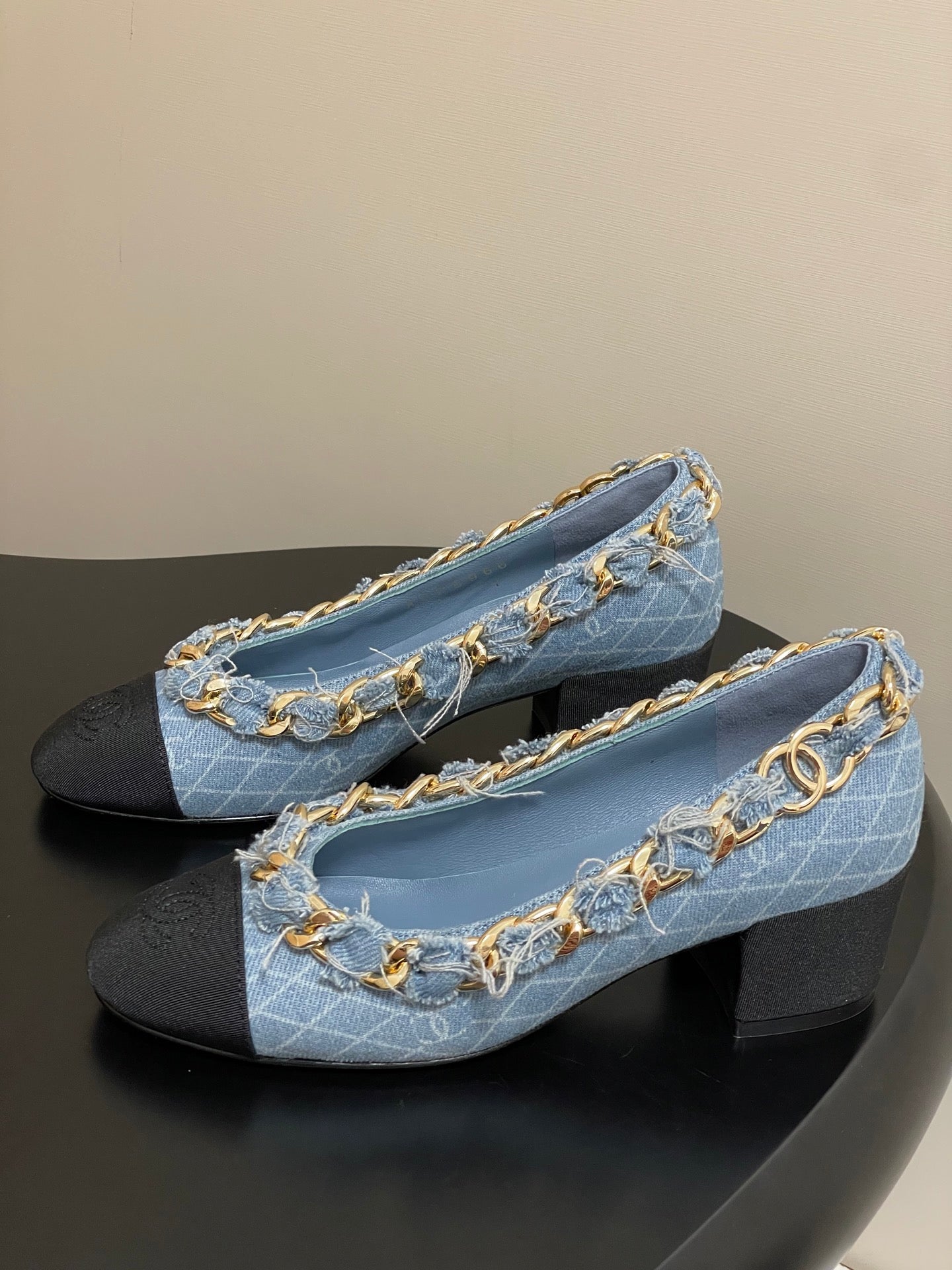 Chanel 25A 55mm Pump Big Chain Double C Blue Denim Sheepskin 393812