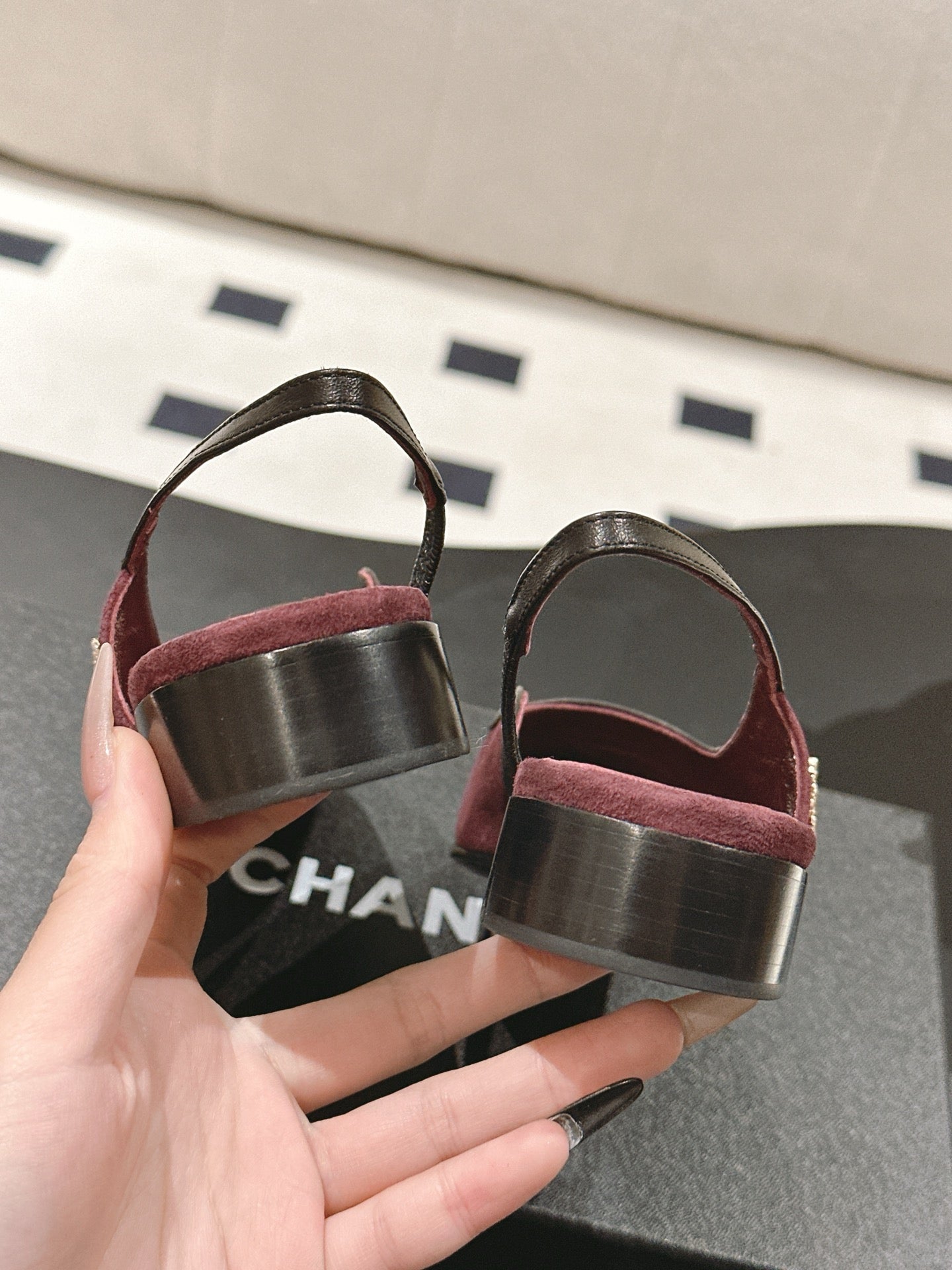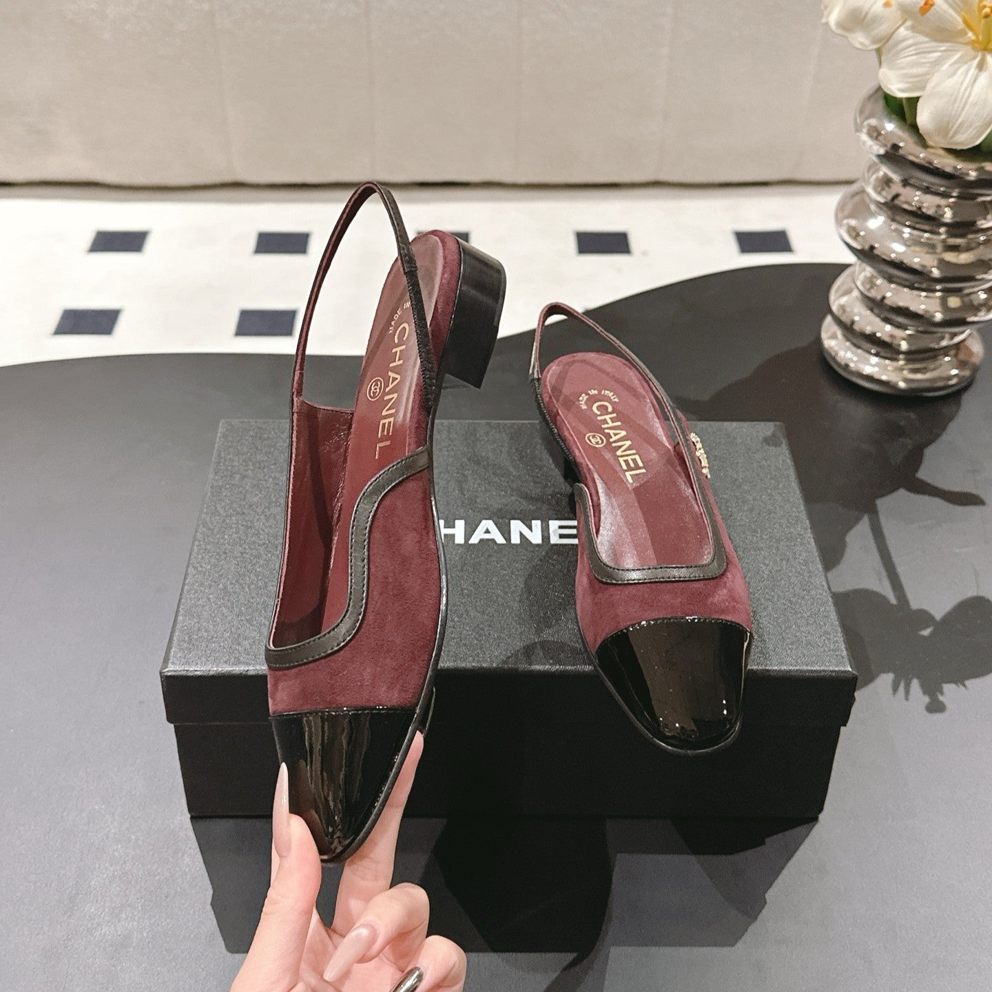 cc 2024k slingback 30mm burgundy suede black pattern calfskin 237502