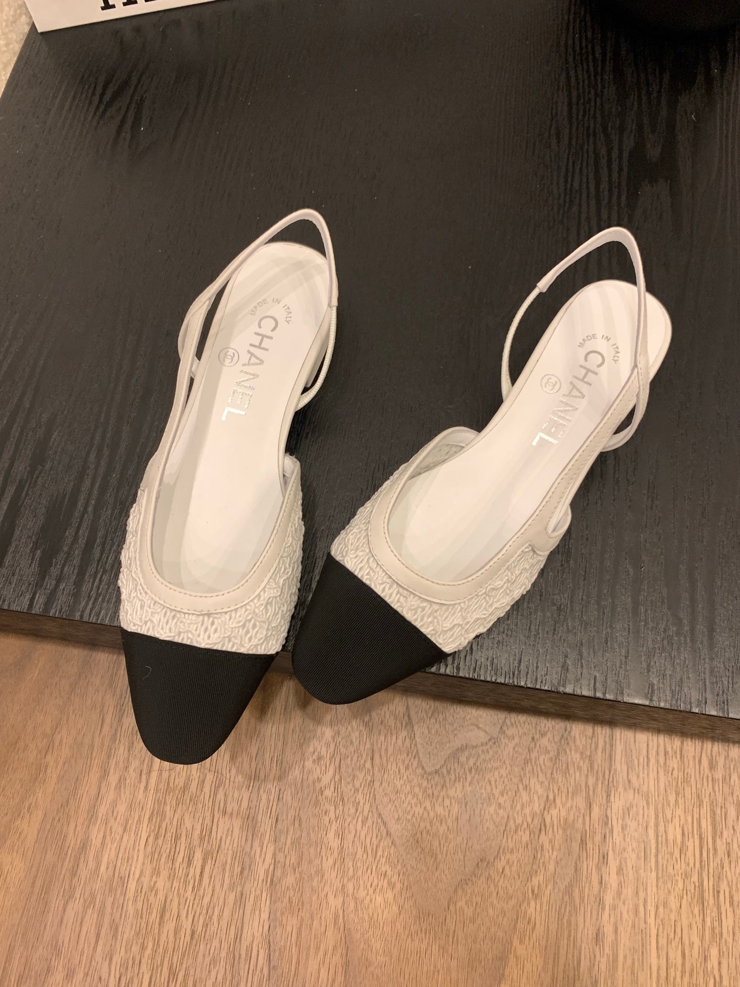 CC 25 Slingback Flat White Fabric Grosgrain