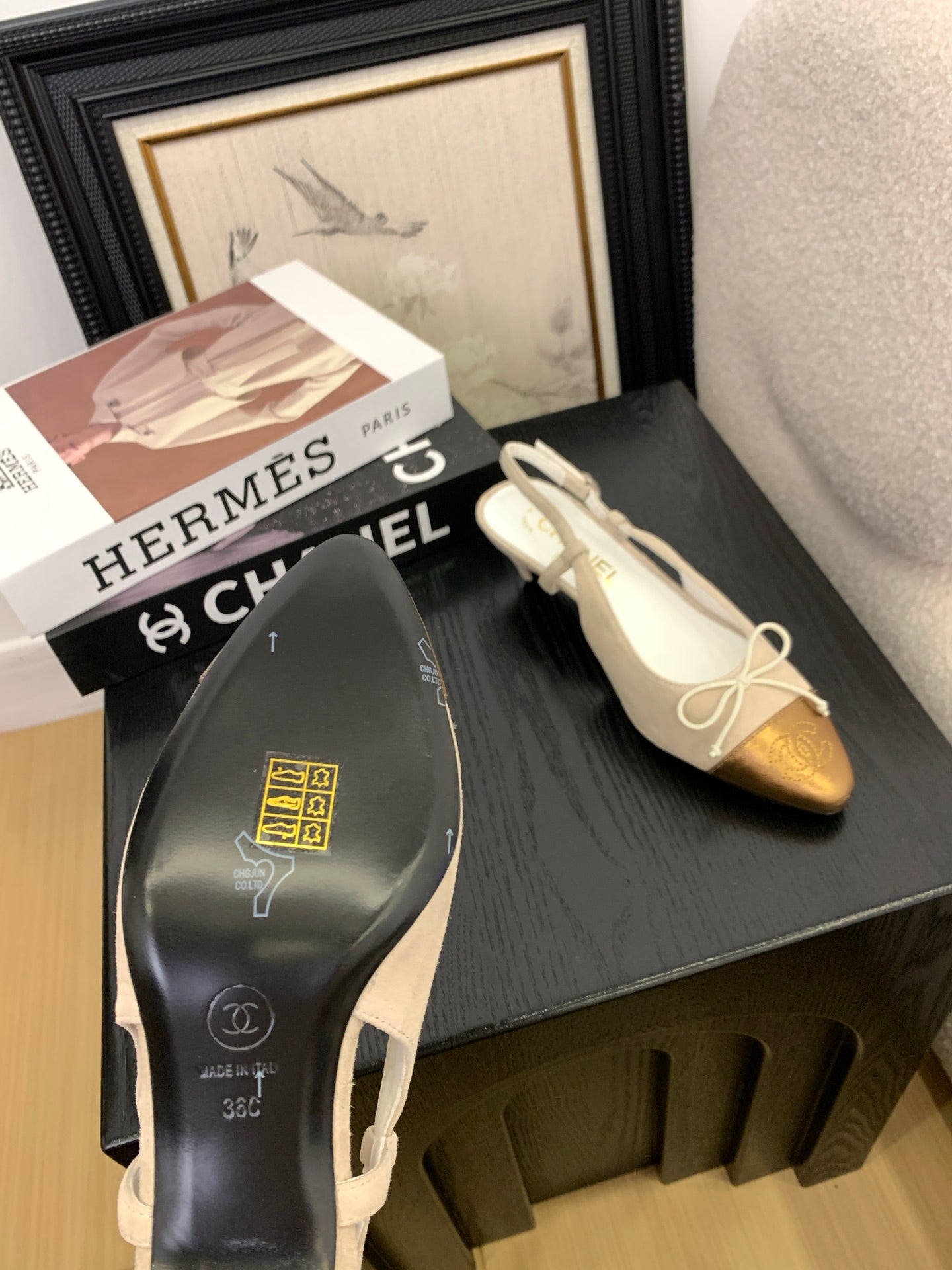 CC 25 Slingbacks 45 Bow With Beige Suede Mix Gold Sheepskin 277673