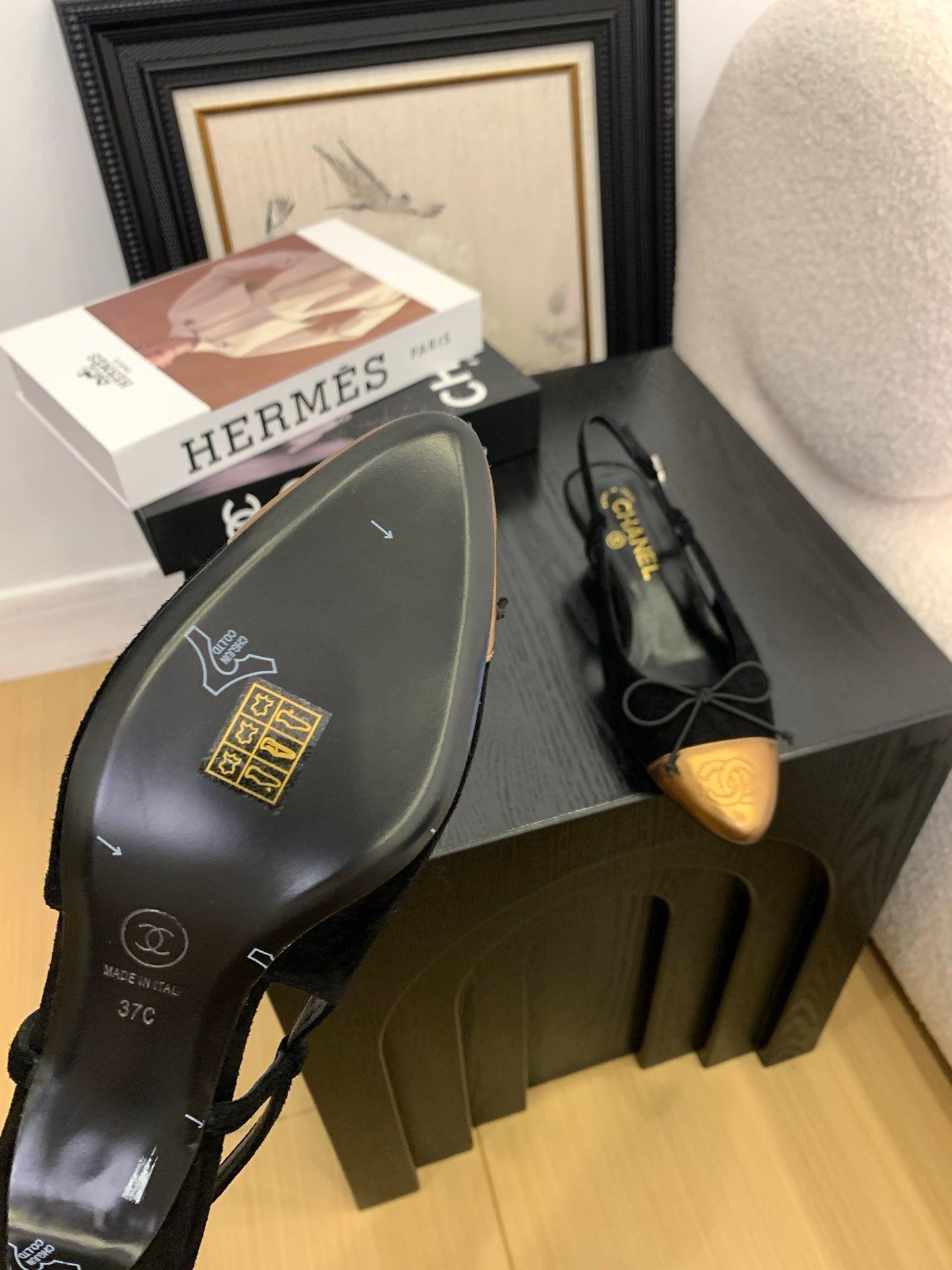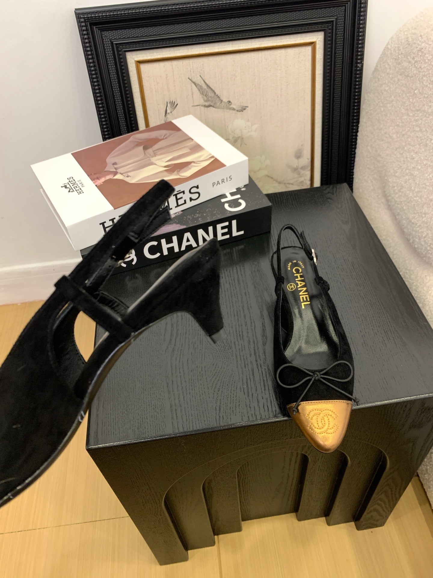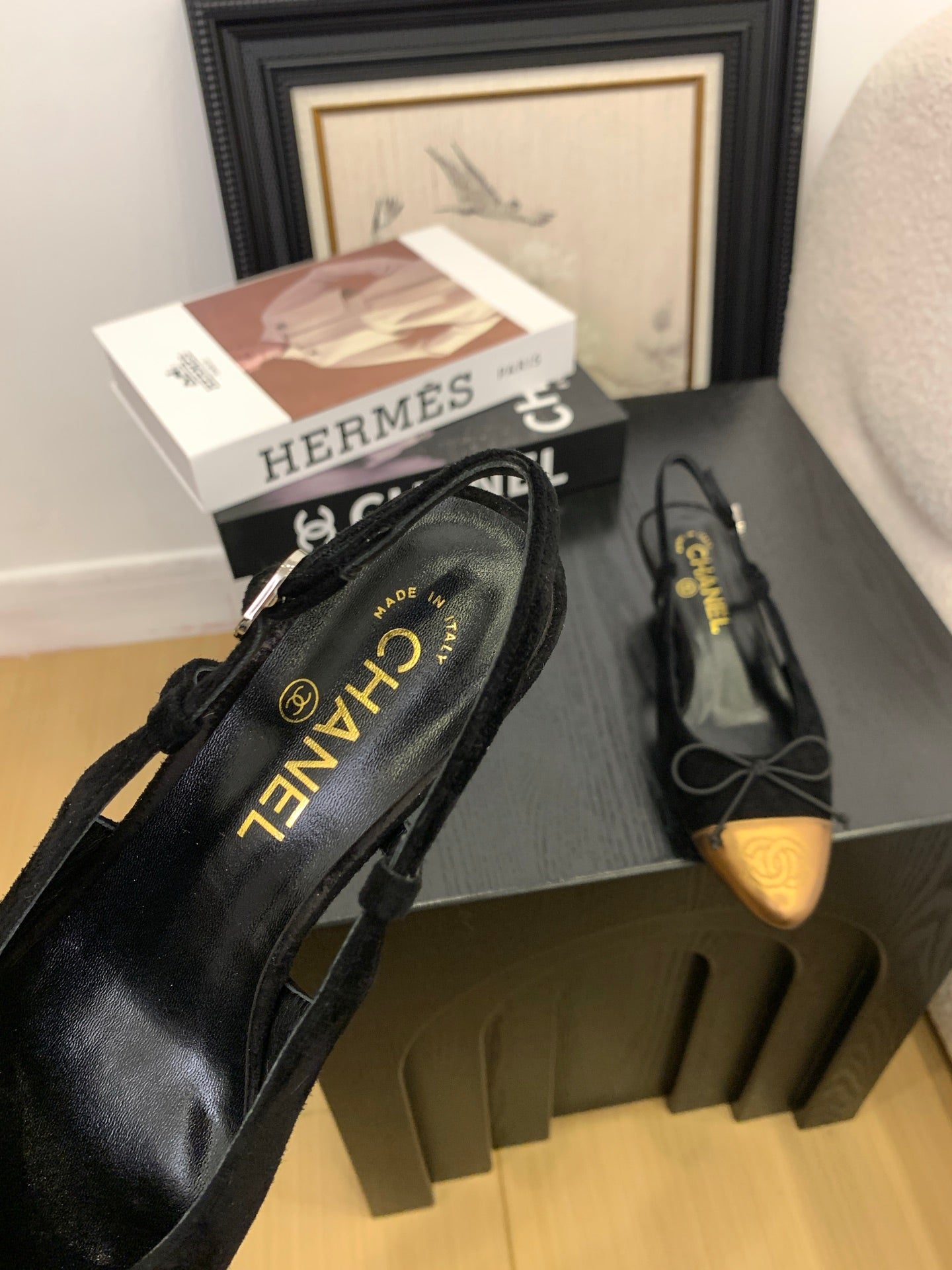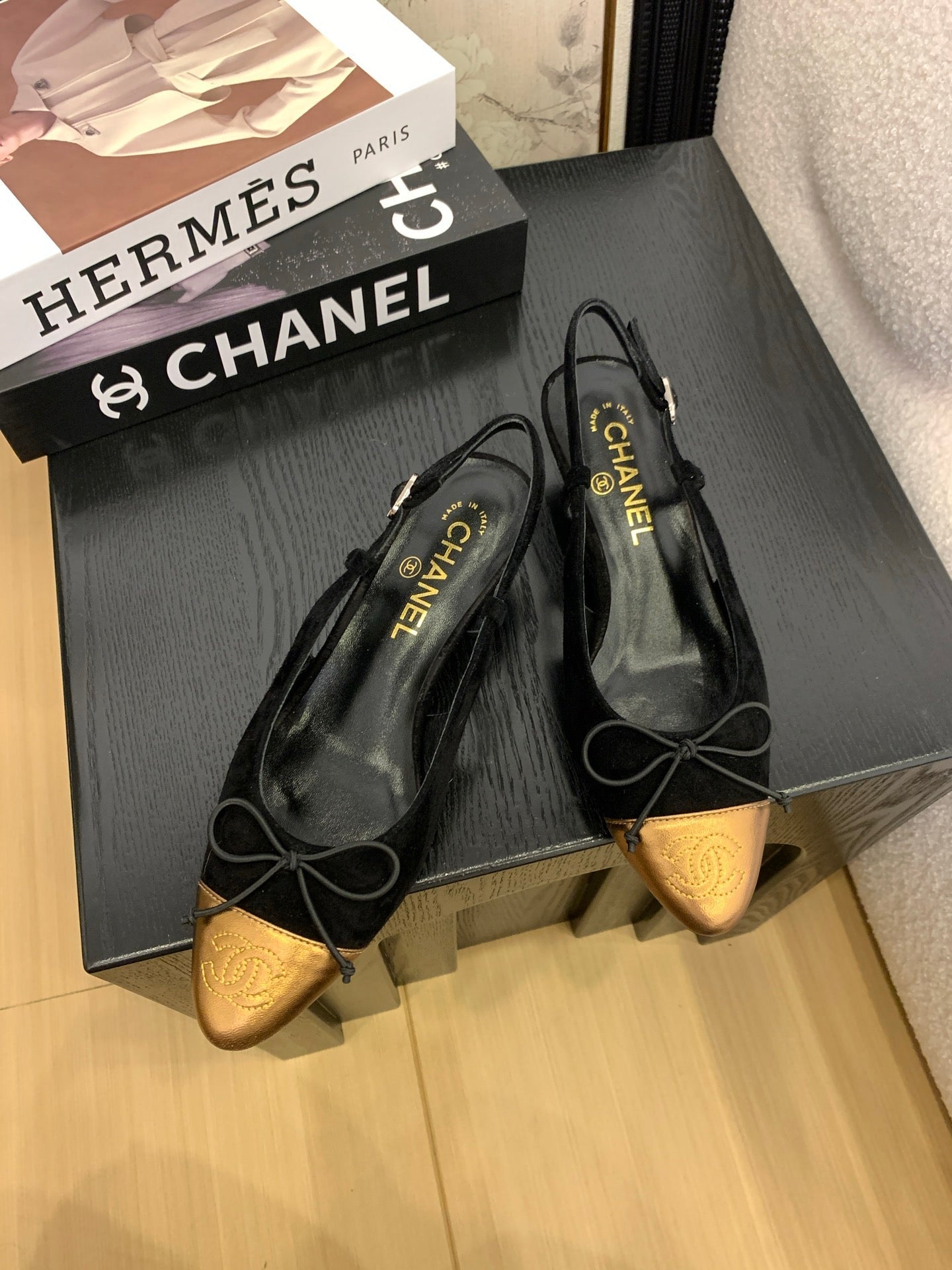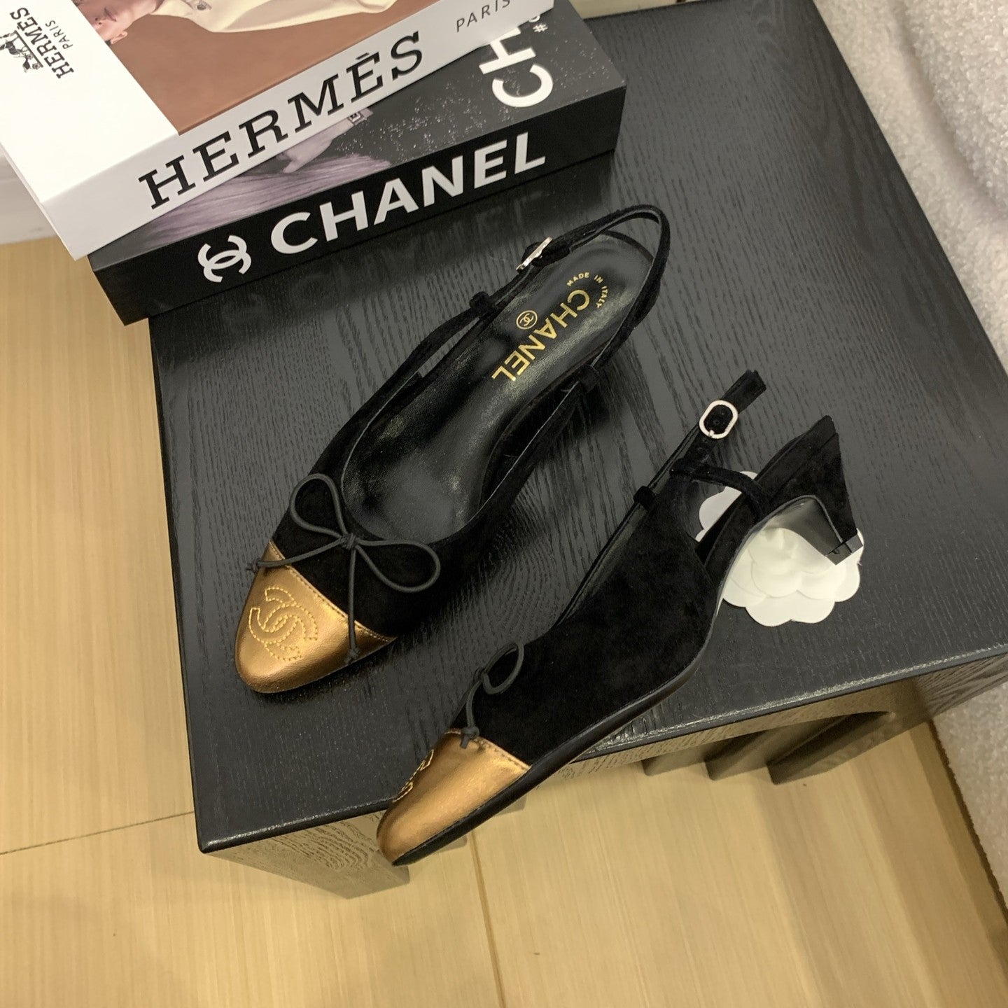 CC 25 Slingbacks 45 Bow With Black Suede Mix Gold Sheepskin 277676