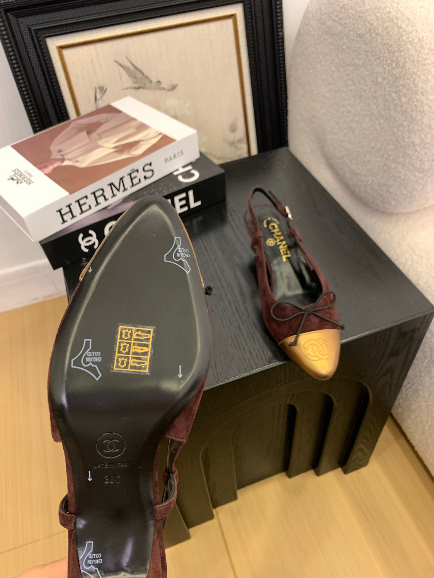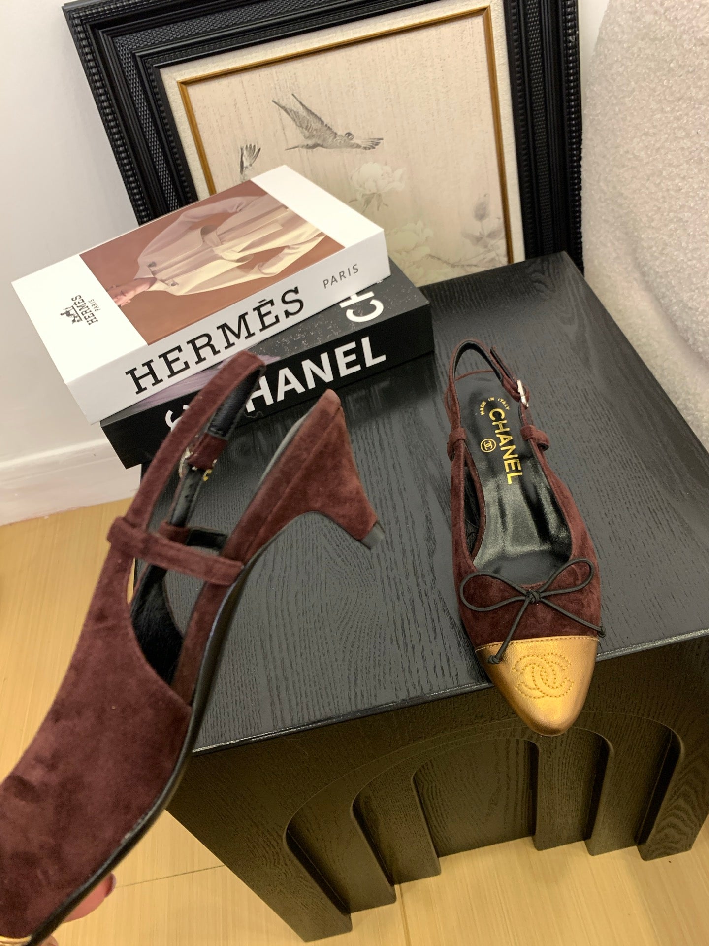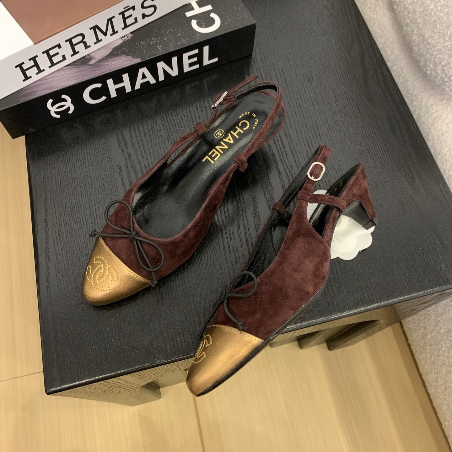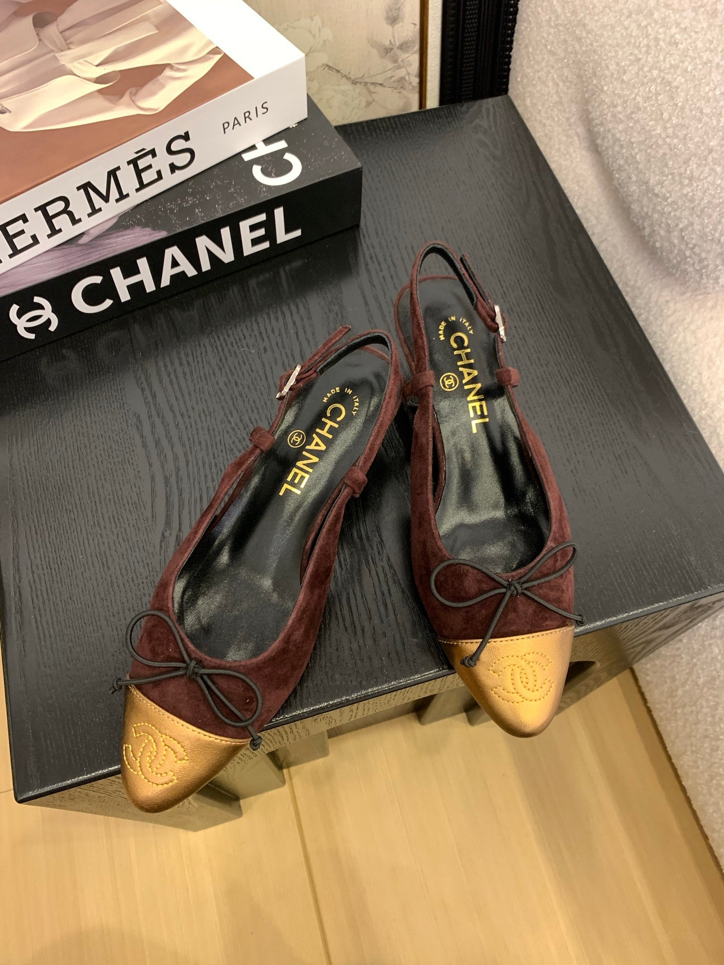 CC 25 Slingbacks 45 Bow With Burgundy Suede Mix Gold Sheepskin 277675