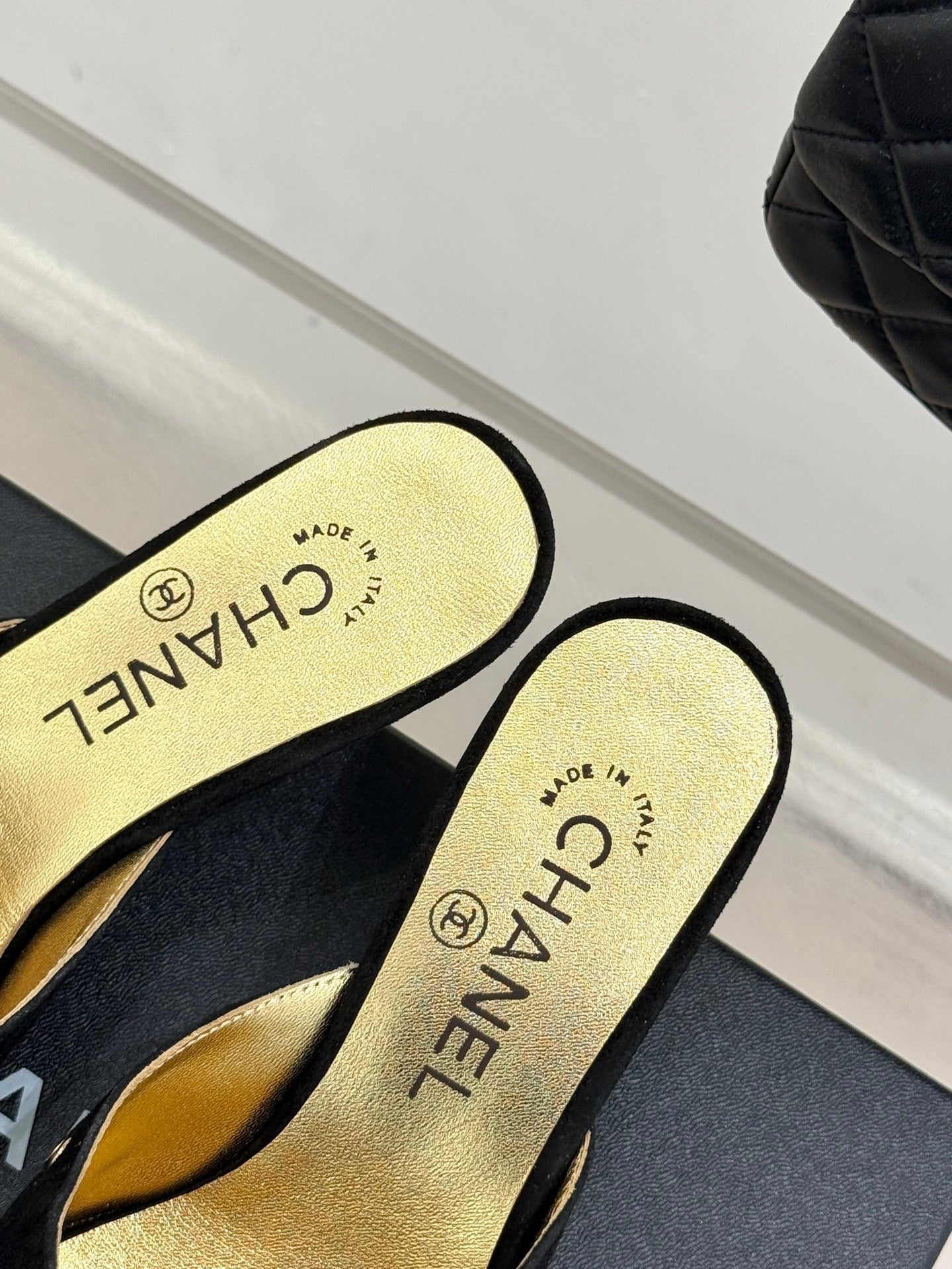 CC 25C Bowknot Pointed High Heel Half Slippers 60mm Black Suede 265657