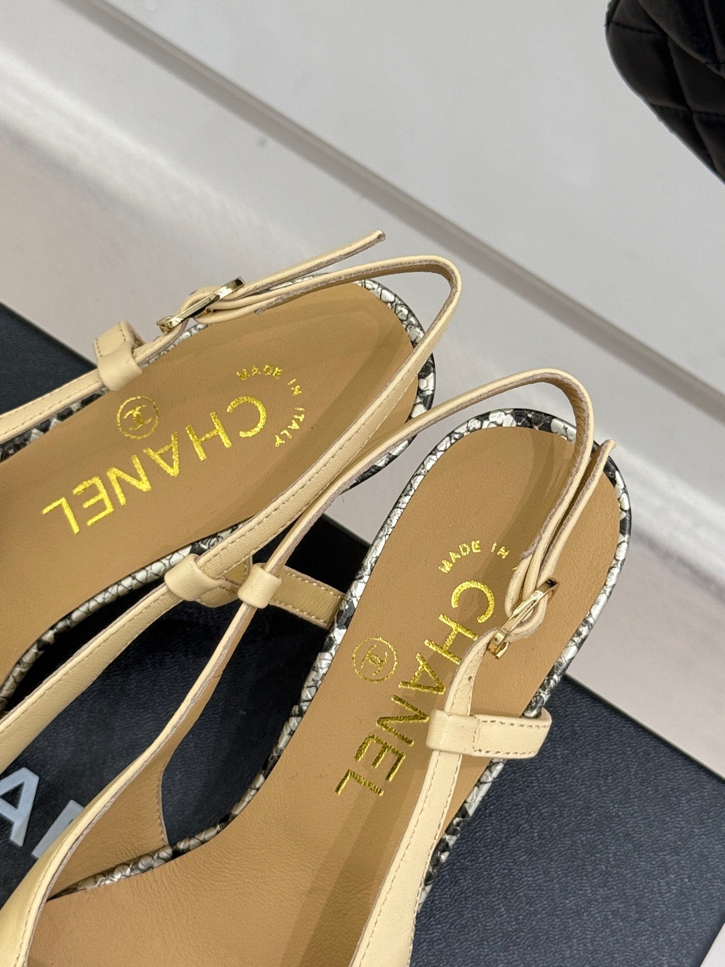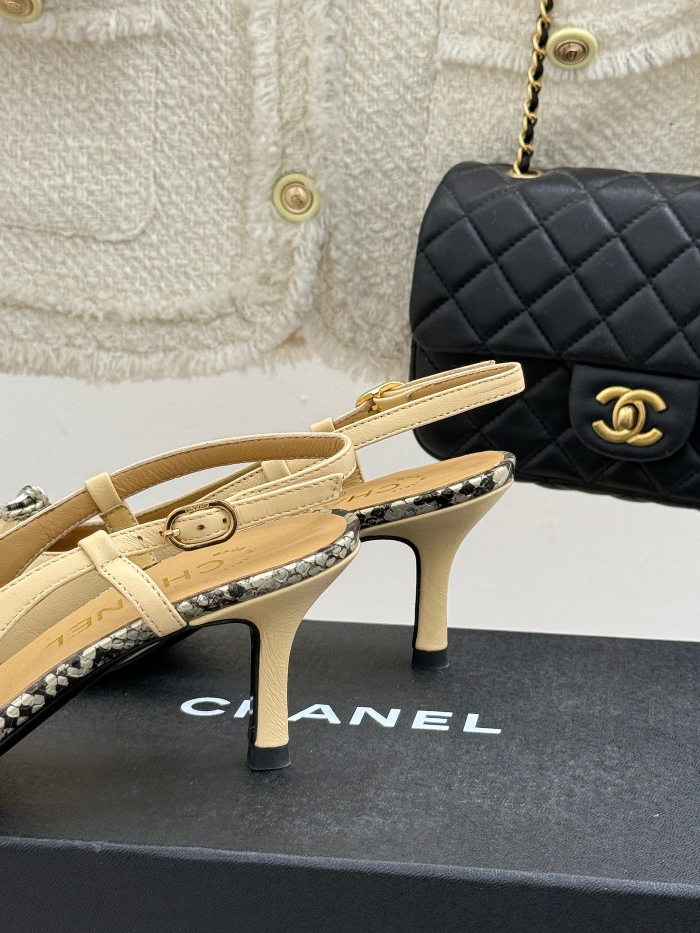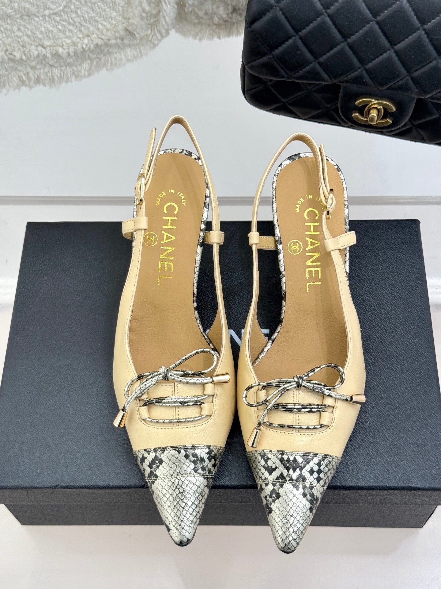 CC 25C Bowknot Slingback Sandal 60mm Beige Sheepskin Mix Python Pattern 265653
