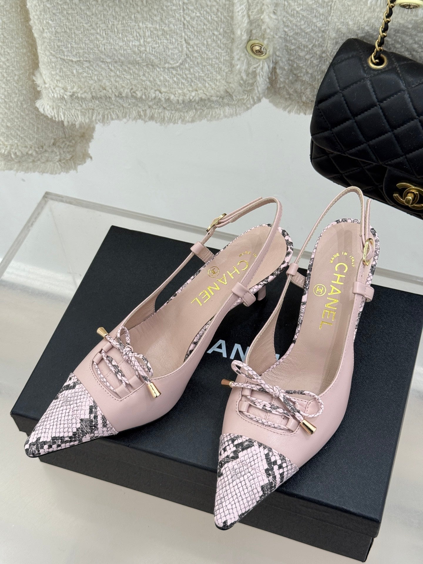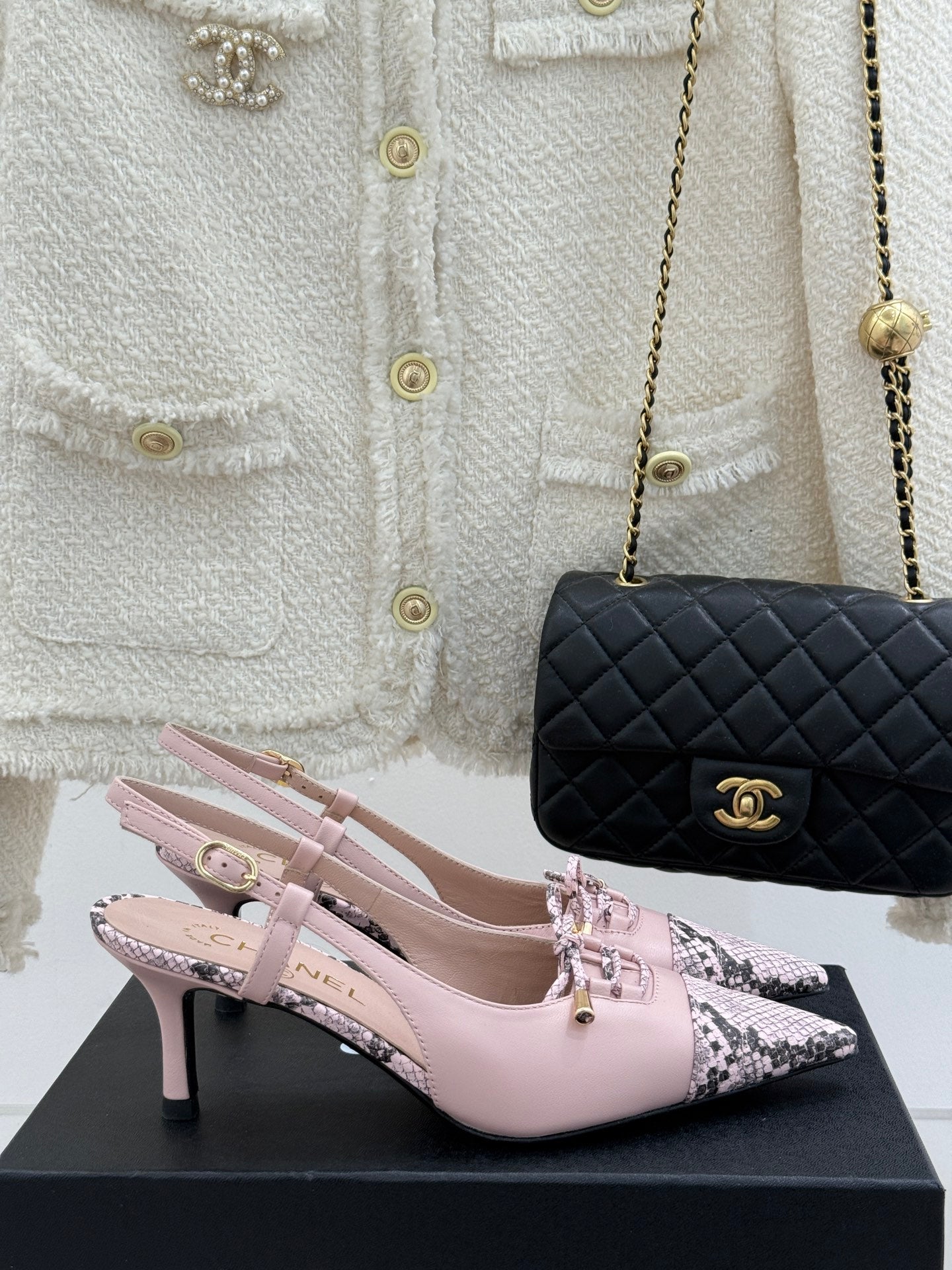 CC 25C Bowknot Slingback Sandal 60mm Light Pink Sheepskin Mix Python Pattern 265654