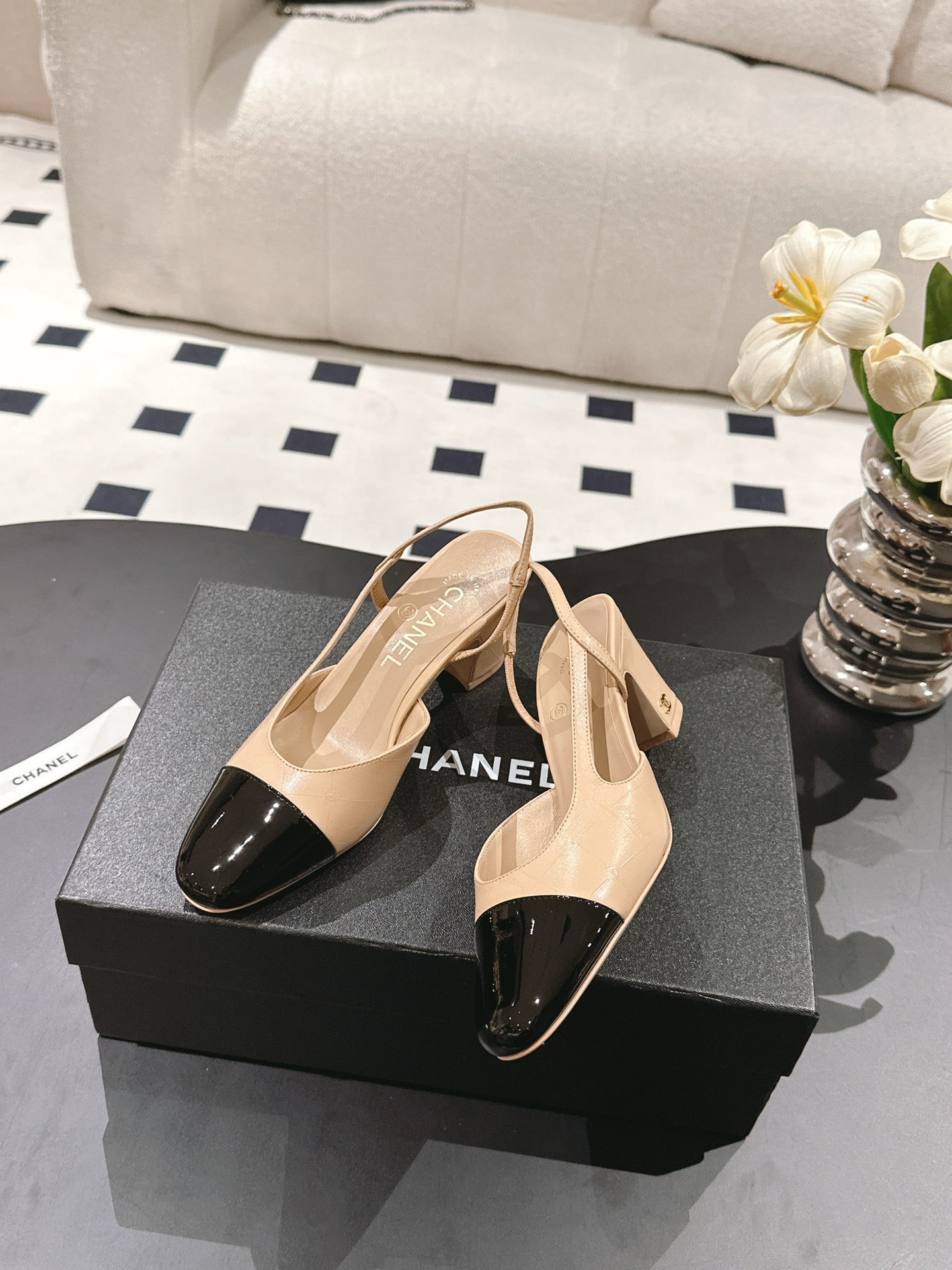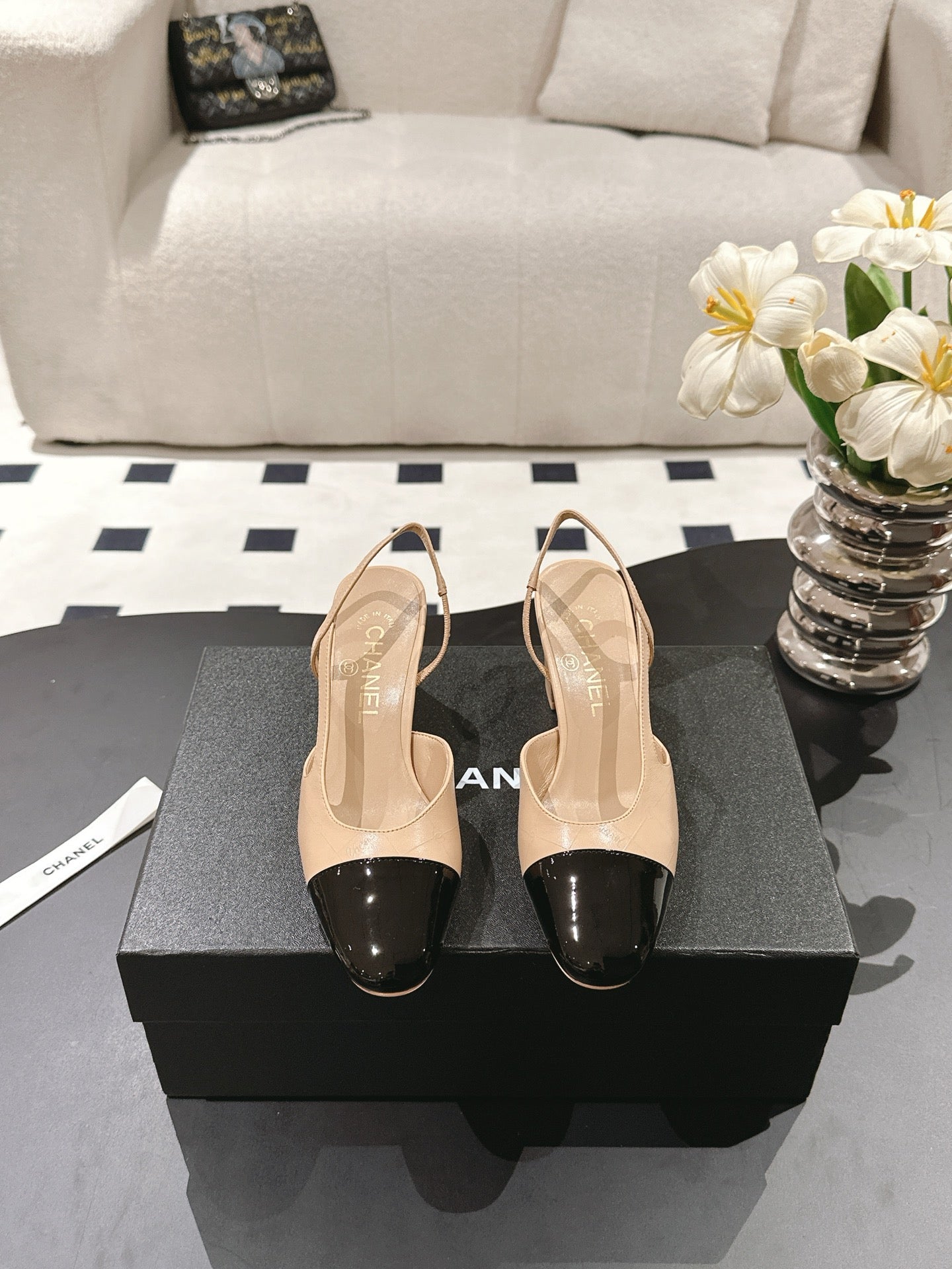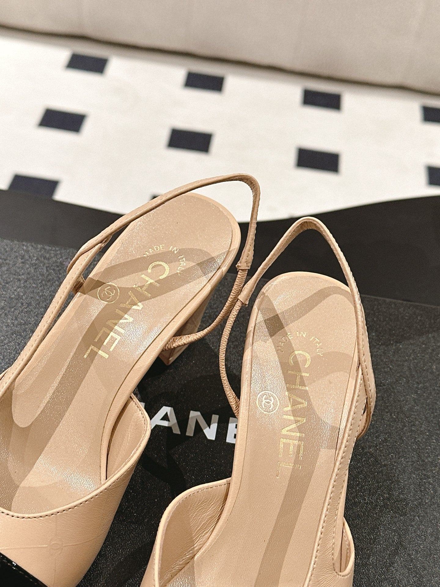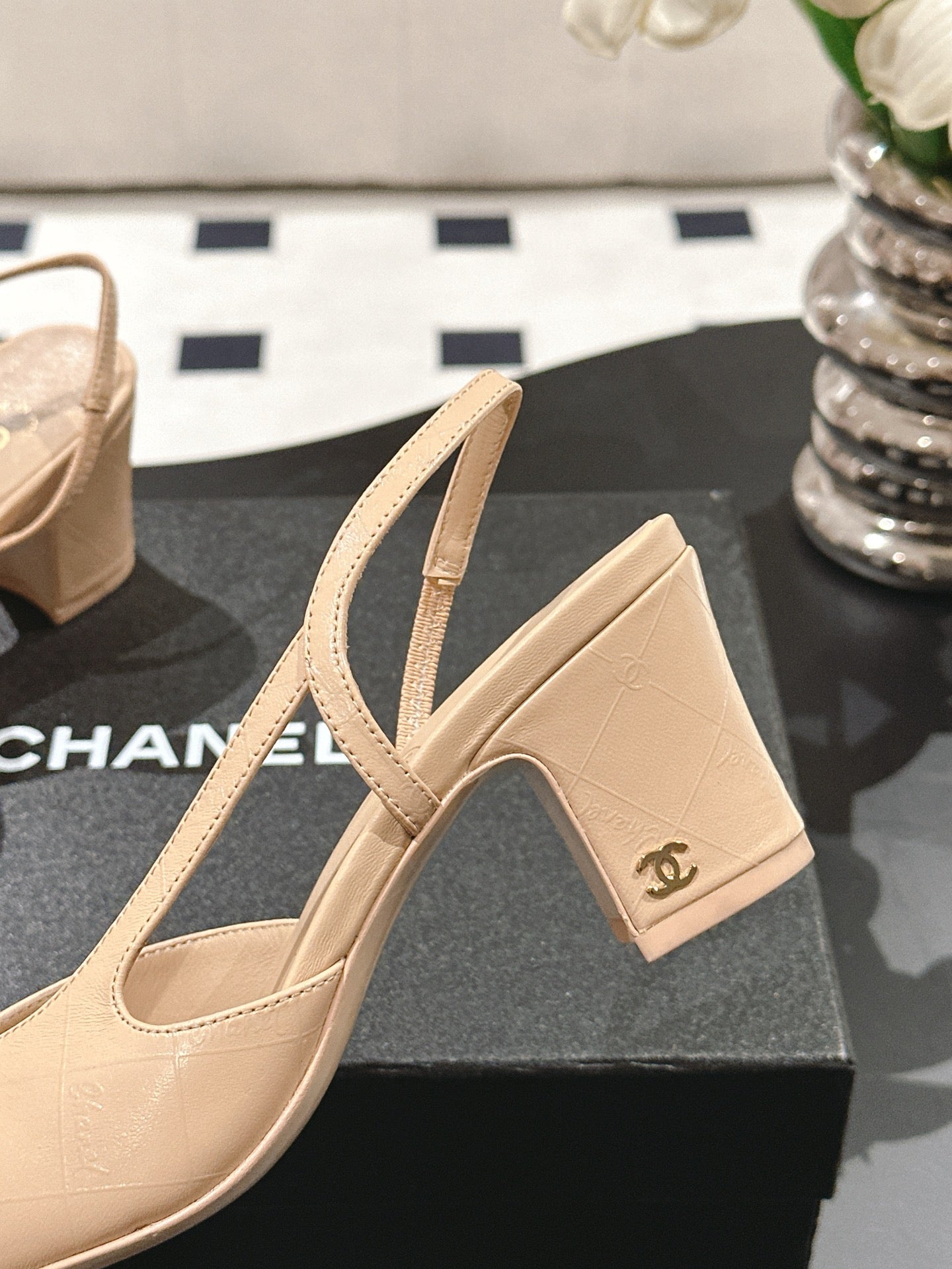 cc 25c slingback 55mm cross line pattern beige lambskin 237495