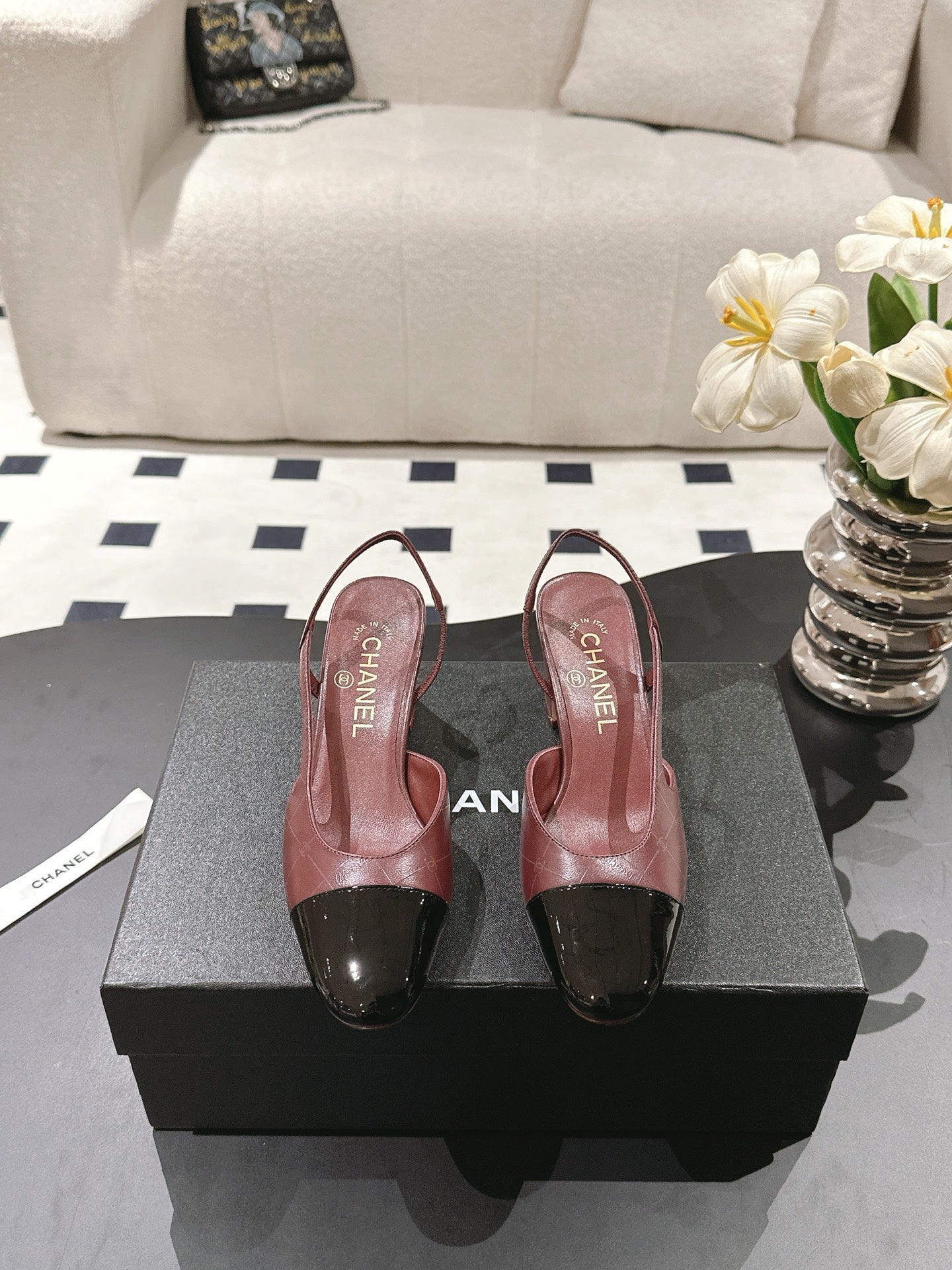 cc 25c slingback 55mm cross line pattern burgundy lambskin 237488