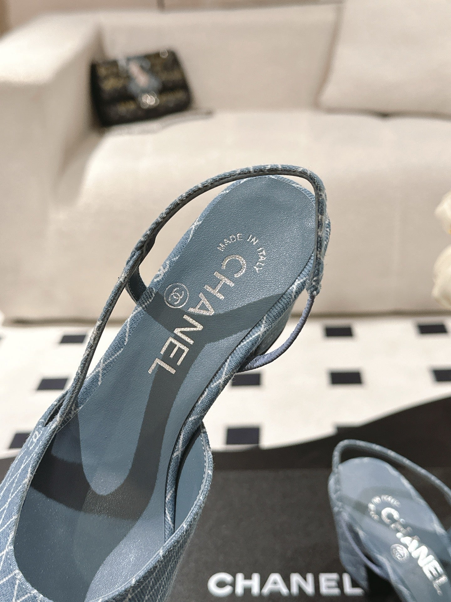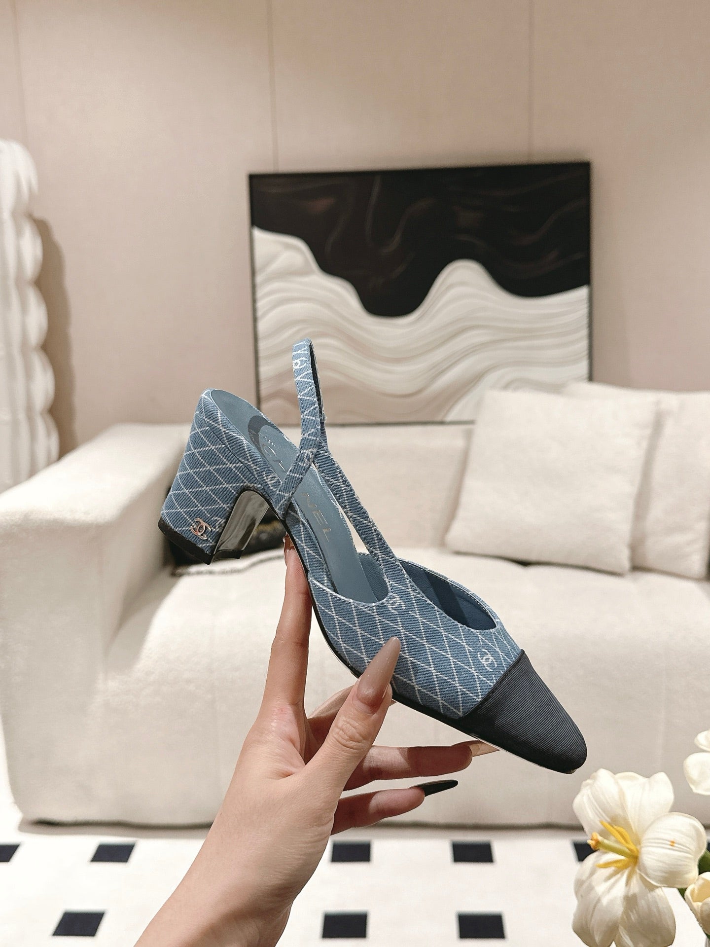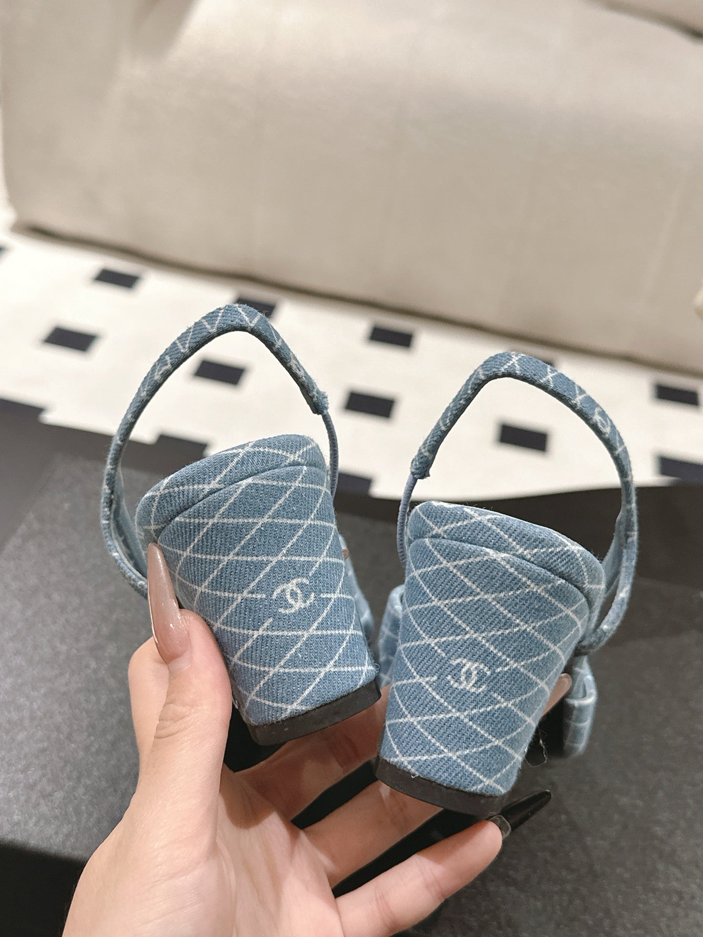 cc 25c slingback 55mm cross line pattern light blue denim 237487