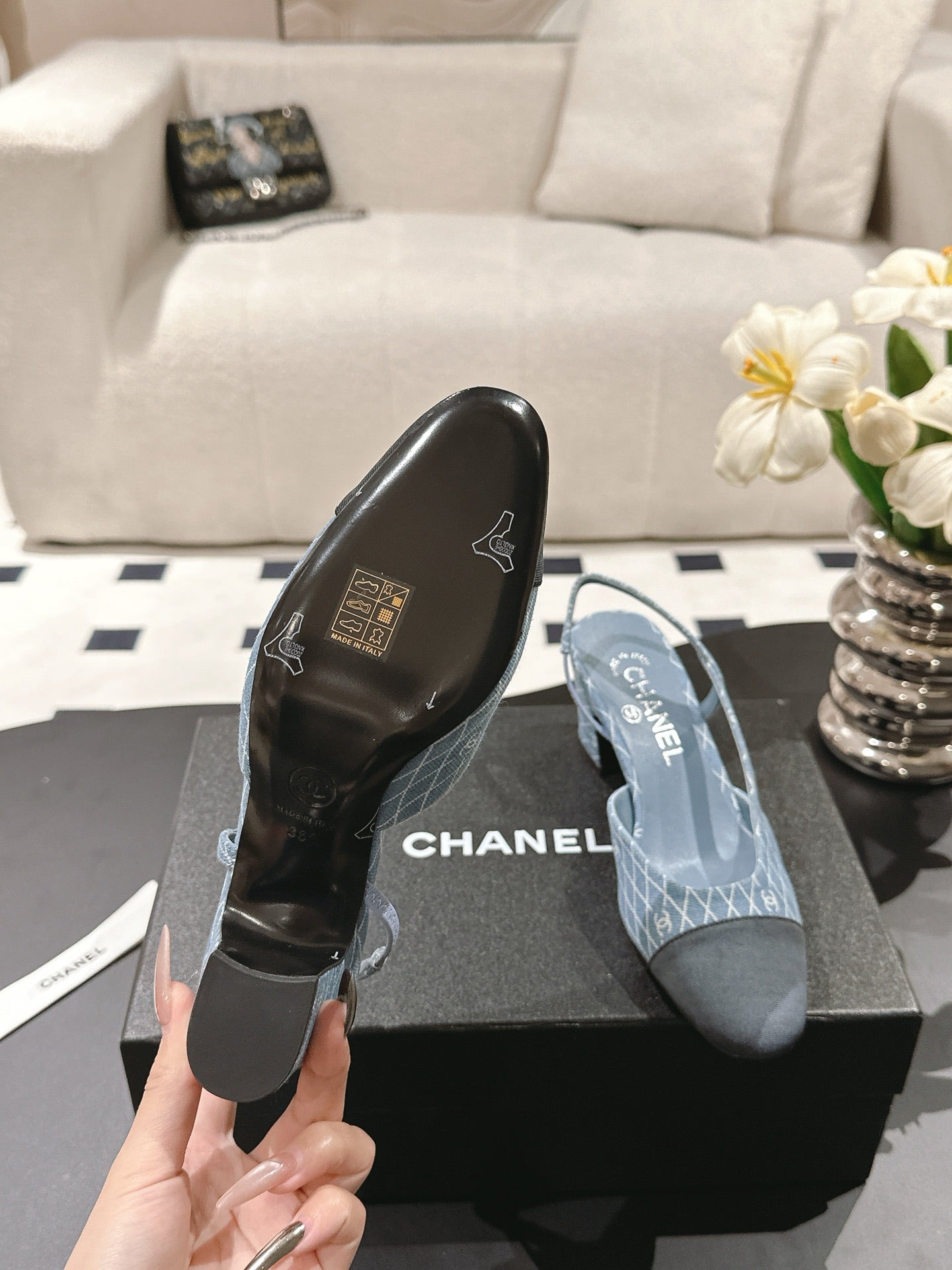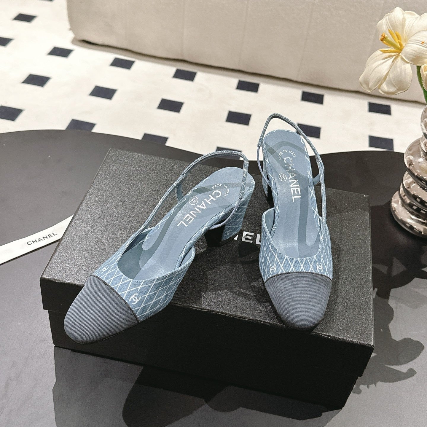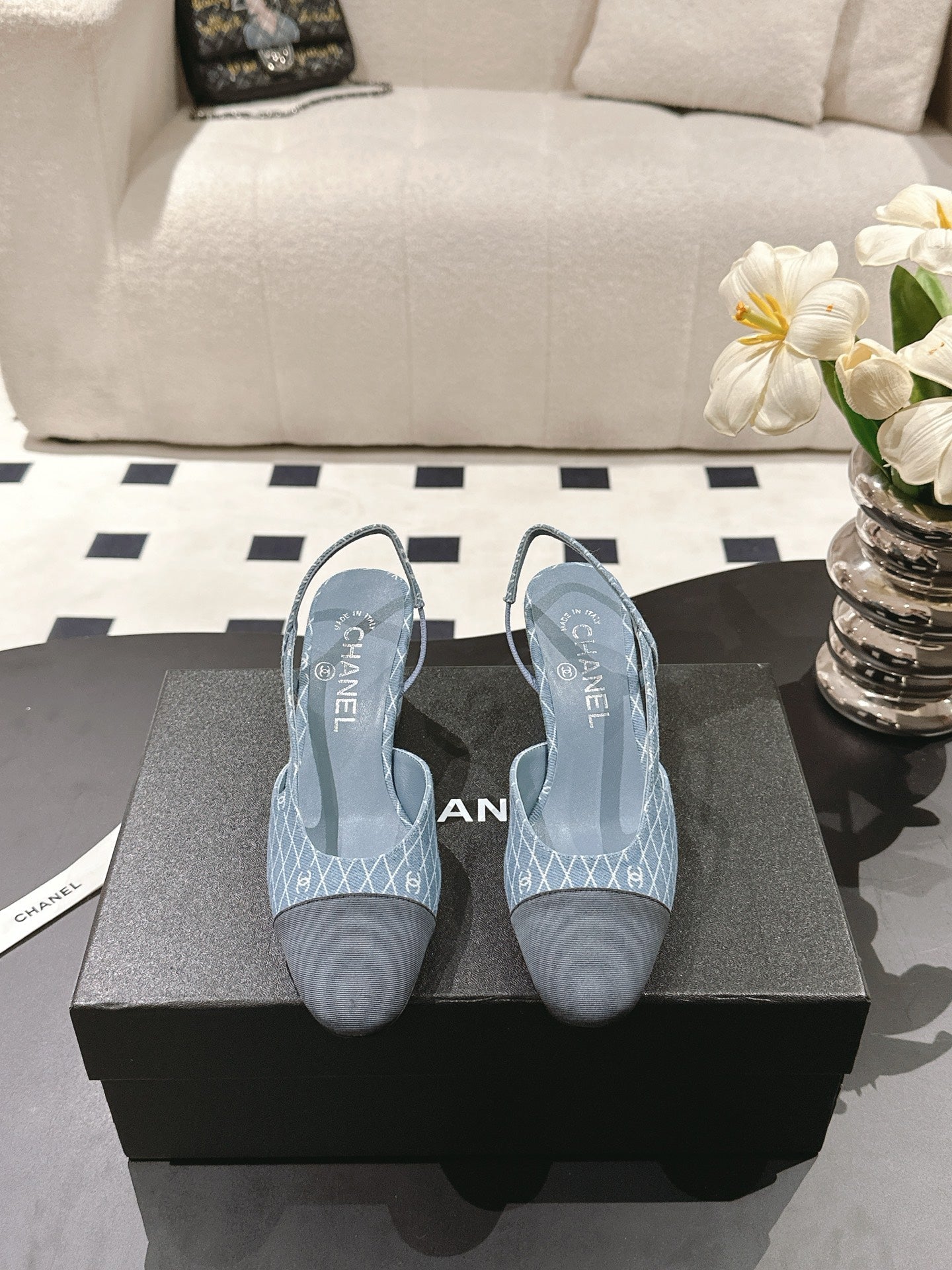 cc 25c slingback 55mm cross line pattern light blue denim 237487