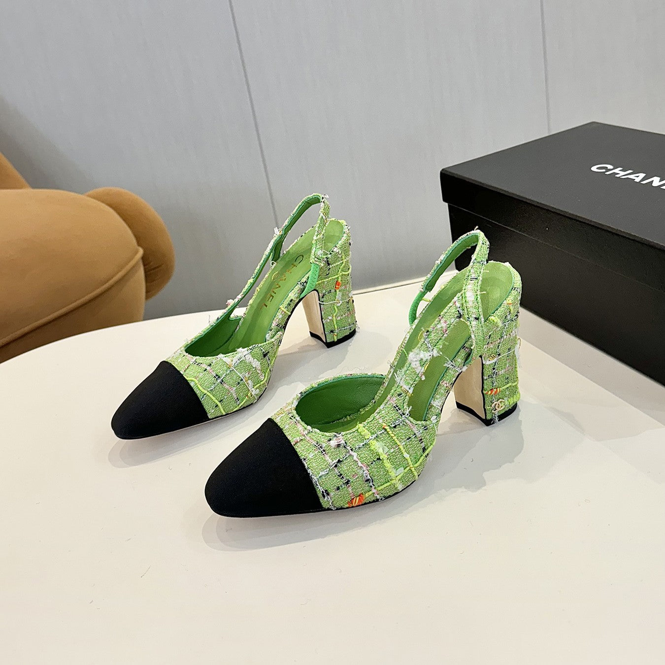 cc 25c slingback 90 green tweed black grosgrain 233620