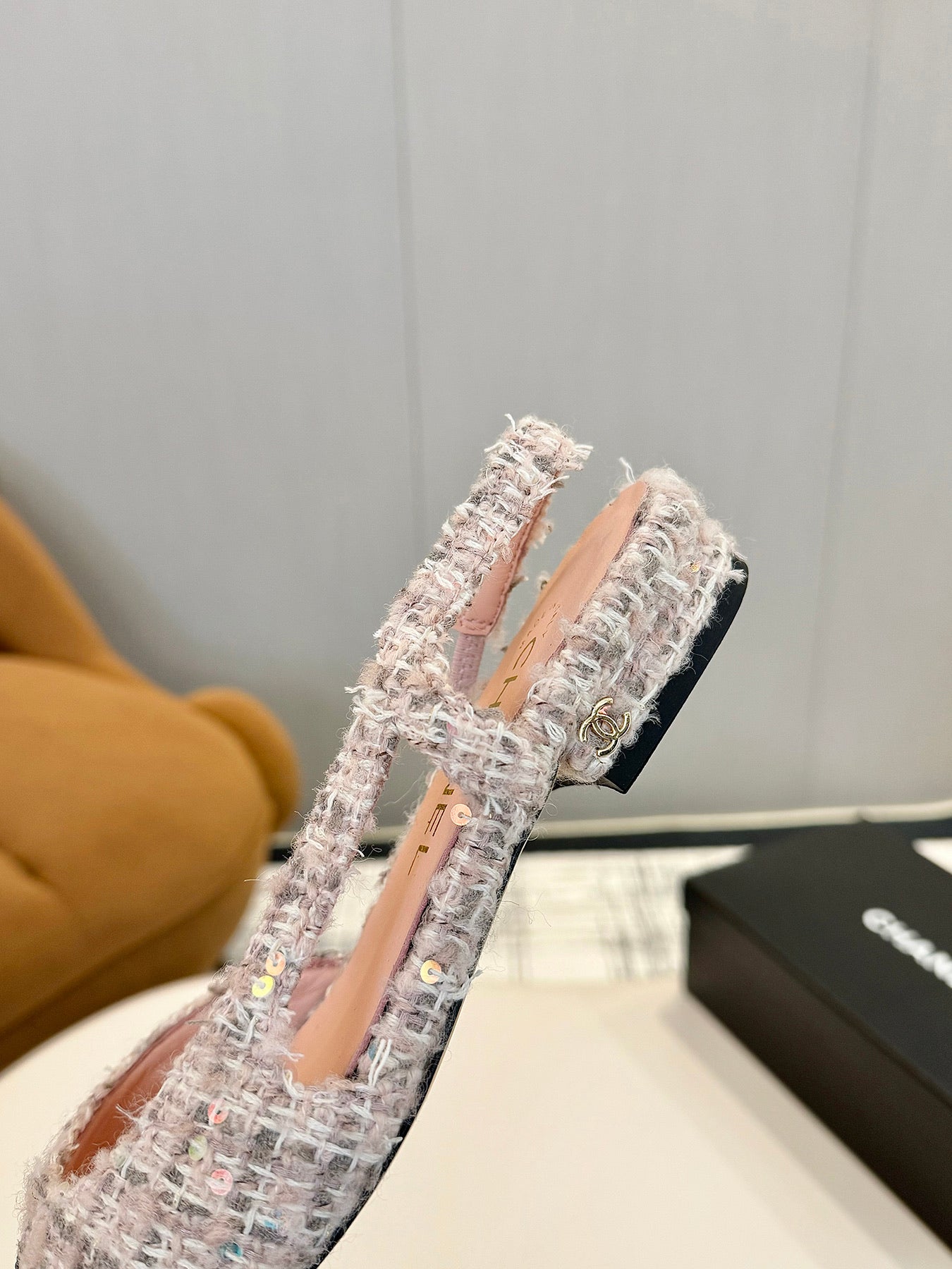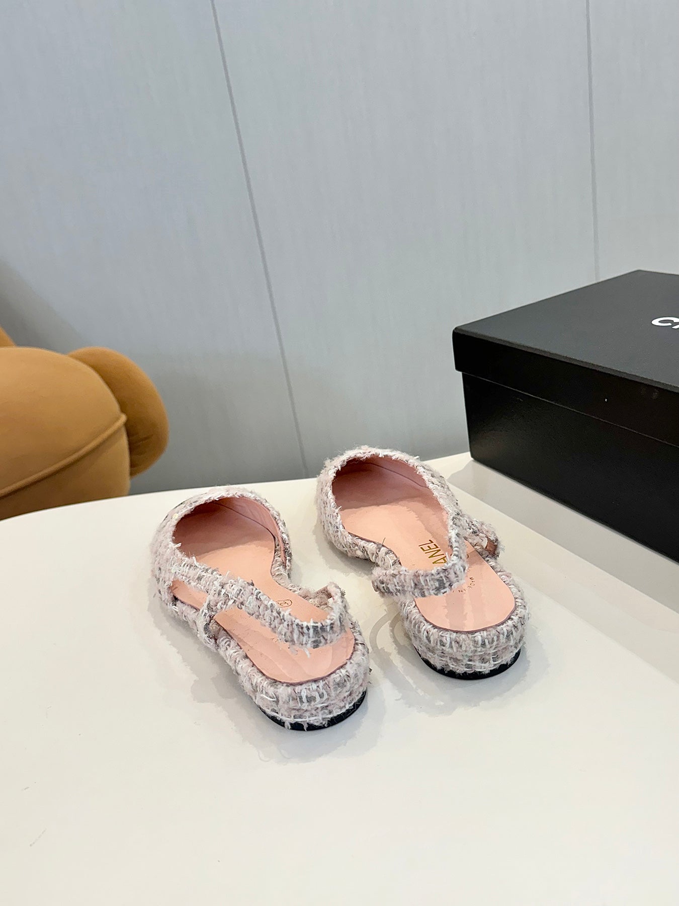 cc 25c slingback flat pink white tweed black grosgrain 233607