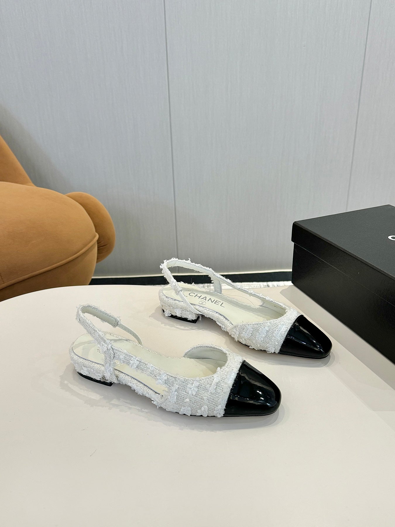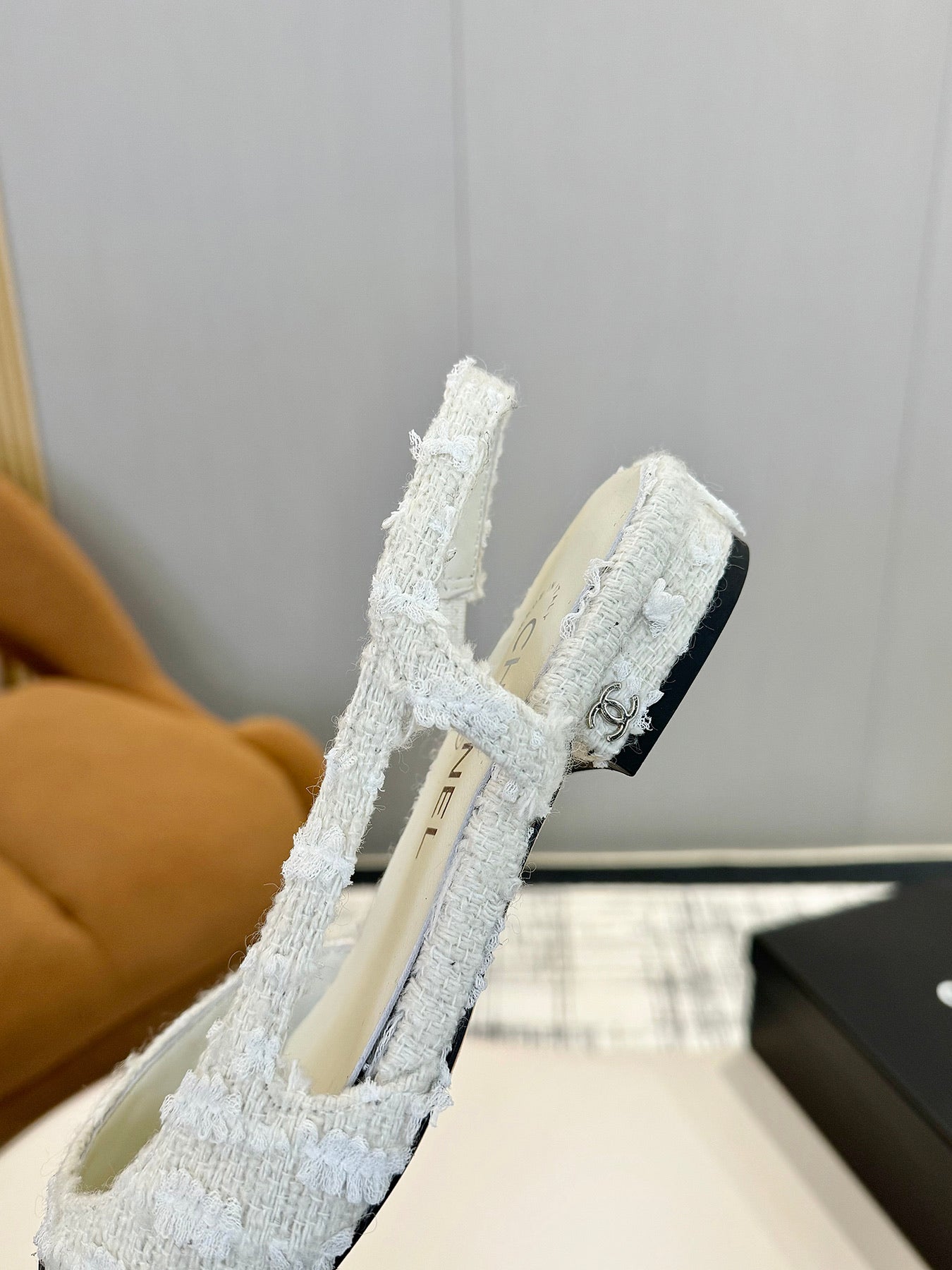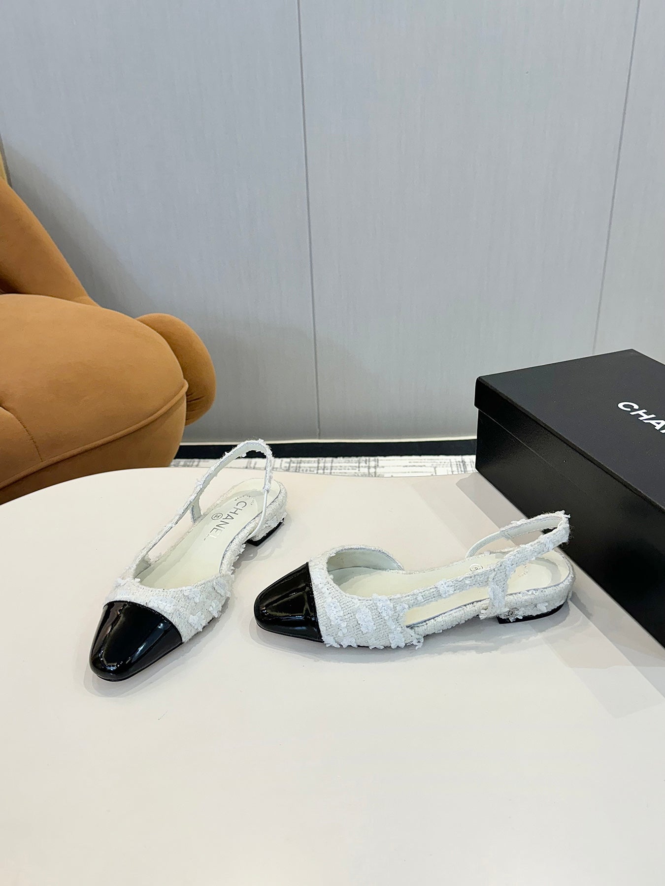 cc 25c slingback flat white tweed black grosgrain 233609