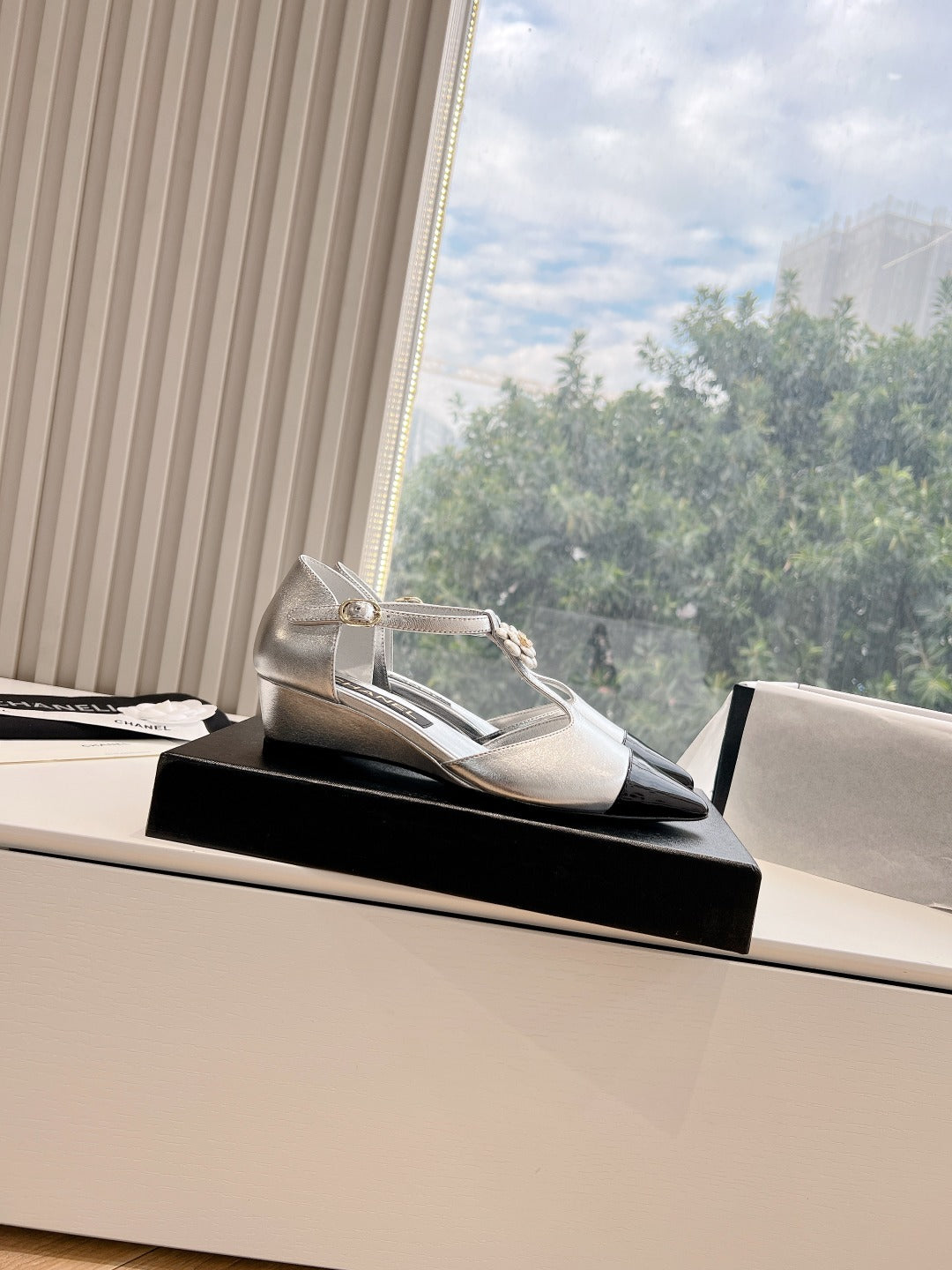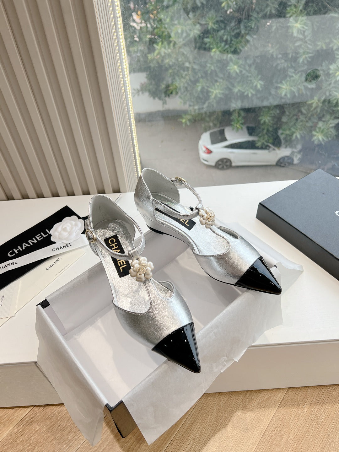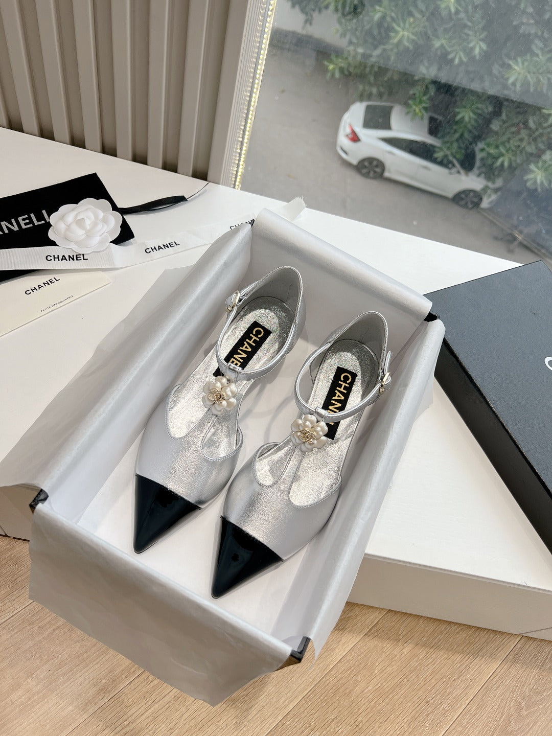 CC 25s Camellia T Strap Slingback 50mm Black Sliver Calfskin&Sheepskin 413324