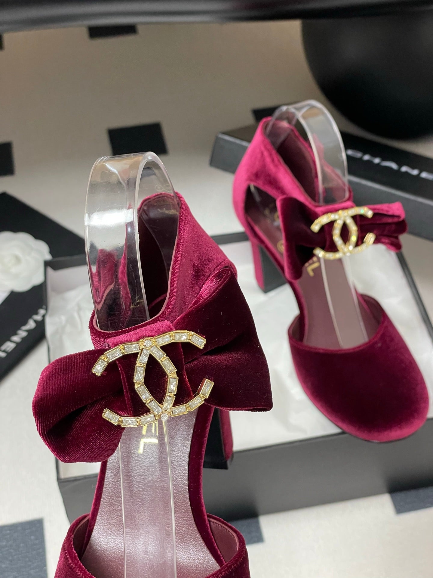 CC 25S Double C Rhinestone Buckle Bow High Heel Pump 85 Wine Velvet 247569