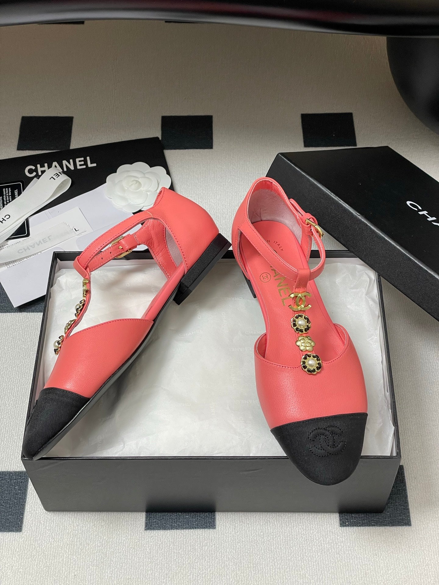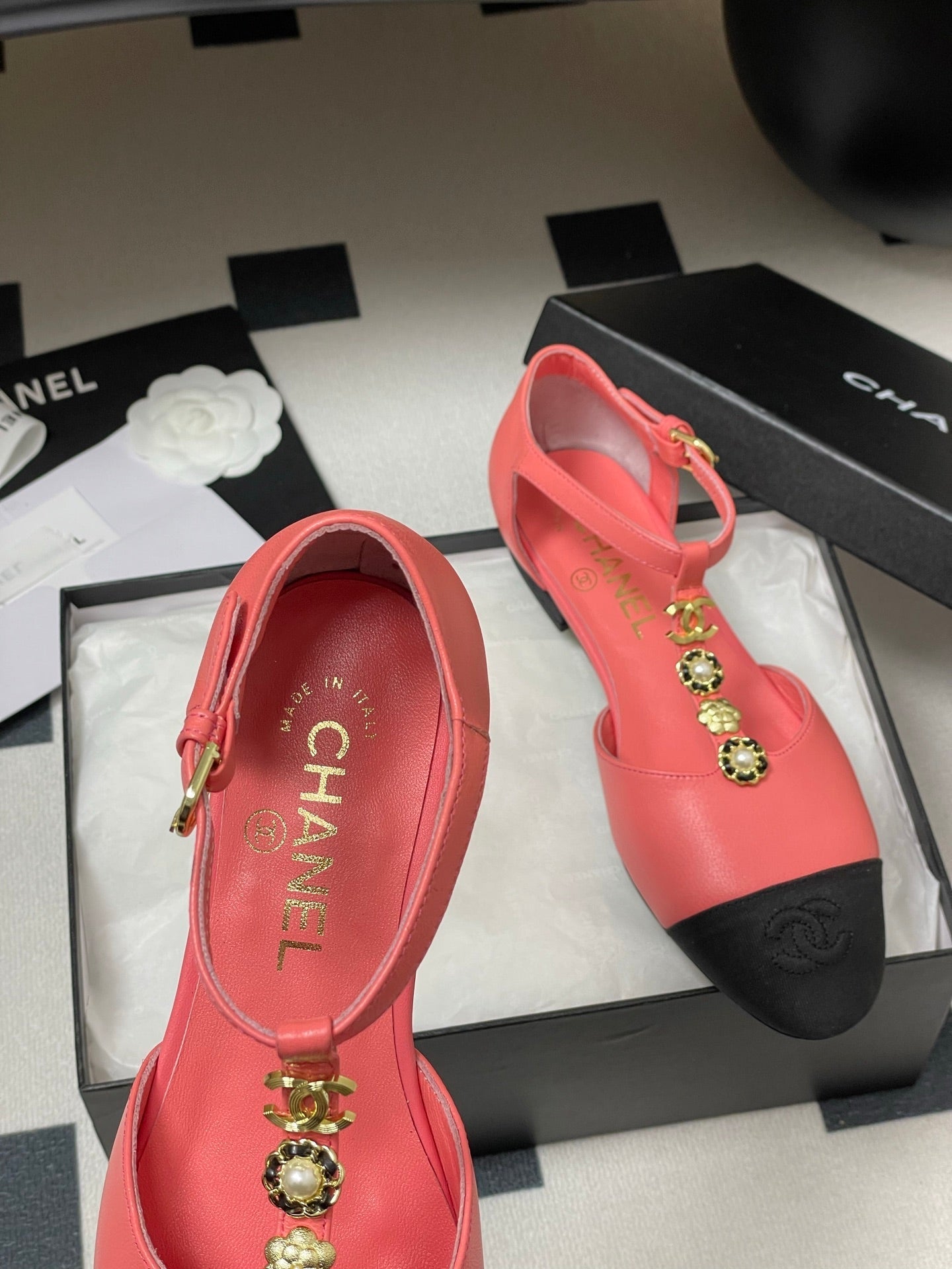 CC 25S Jewelry Double C Buckle T-Strap Mary Jane Hot Pink Lambskin Black Grosgrain 247711