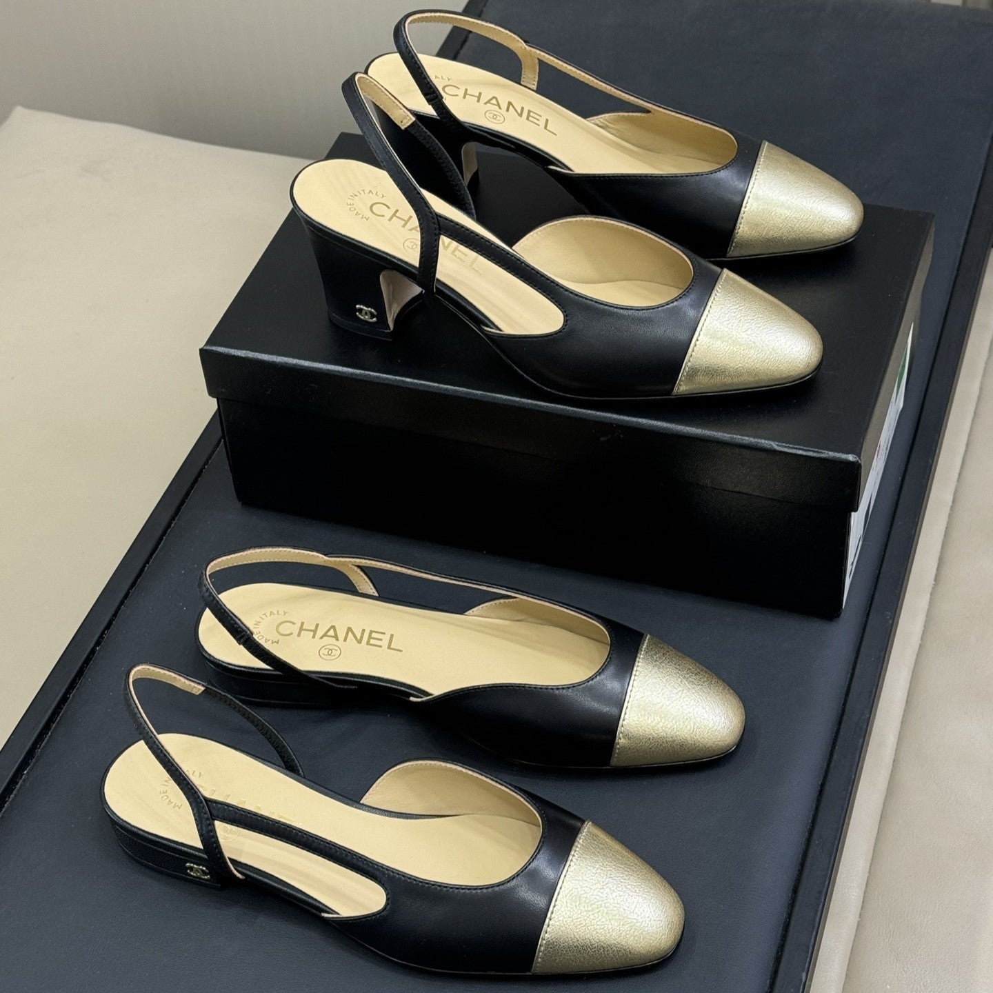 CC Classic Slingback Black Mix Gold Metallic Goatskin 282283