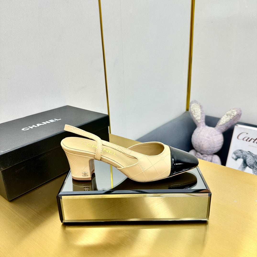 cc slingback pumps 65 in beige lambskin and black patent calfskin