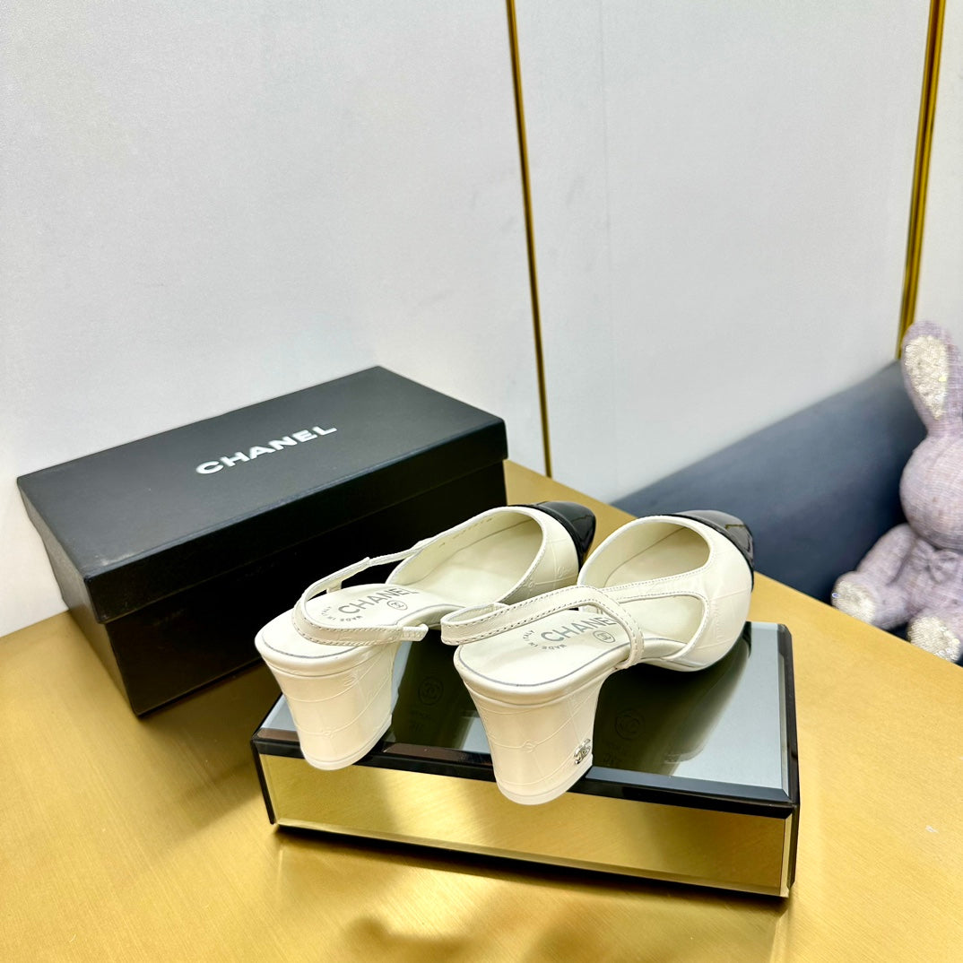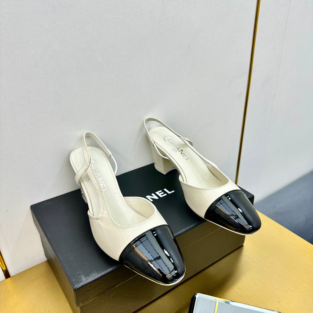cc slingback pumps 65 in cream lambskin and black patent calfskin 137437