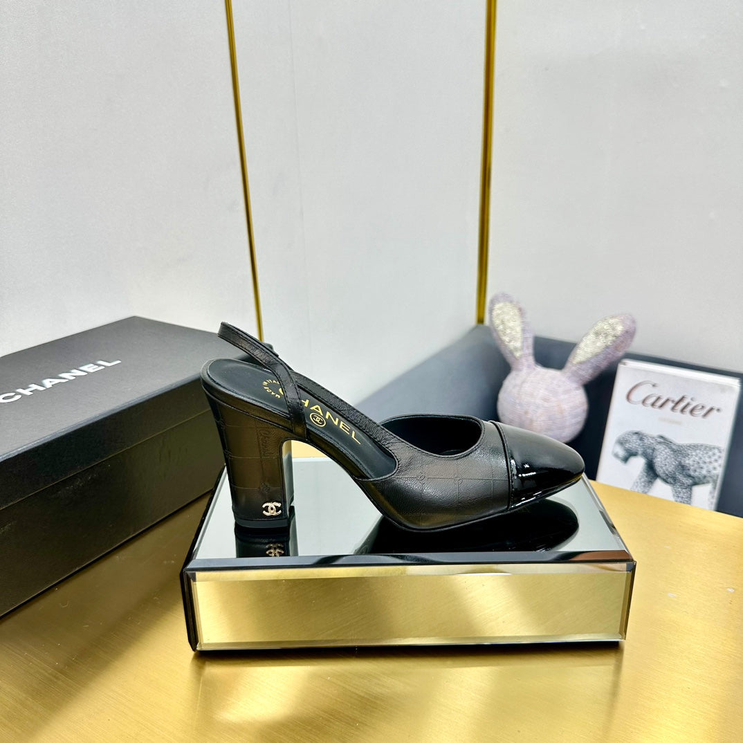 cc slingback pumps 90 in black lambskin and black patent calfskin 137448