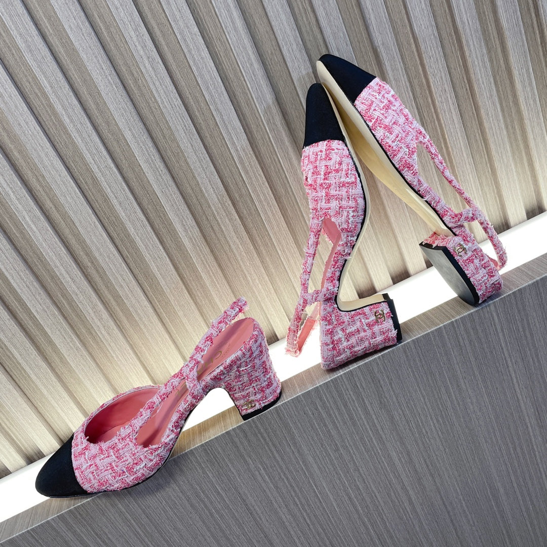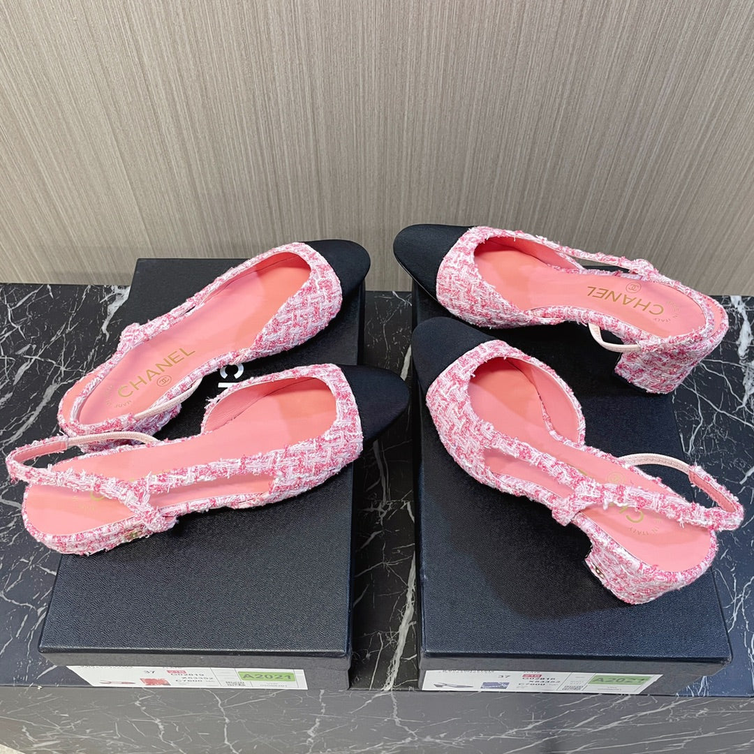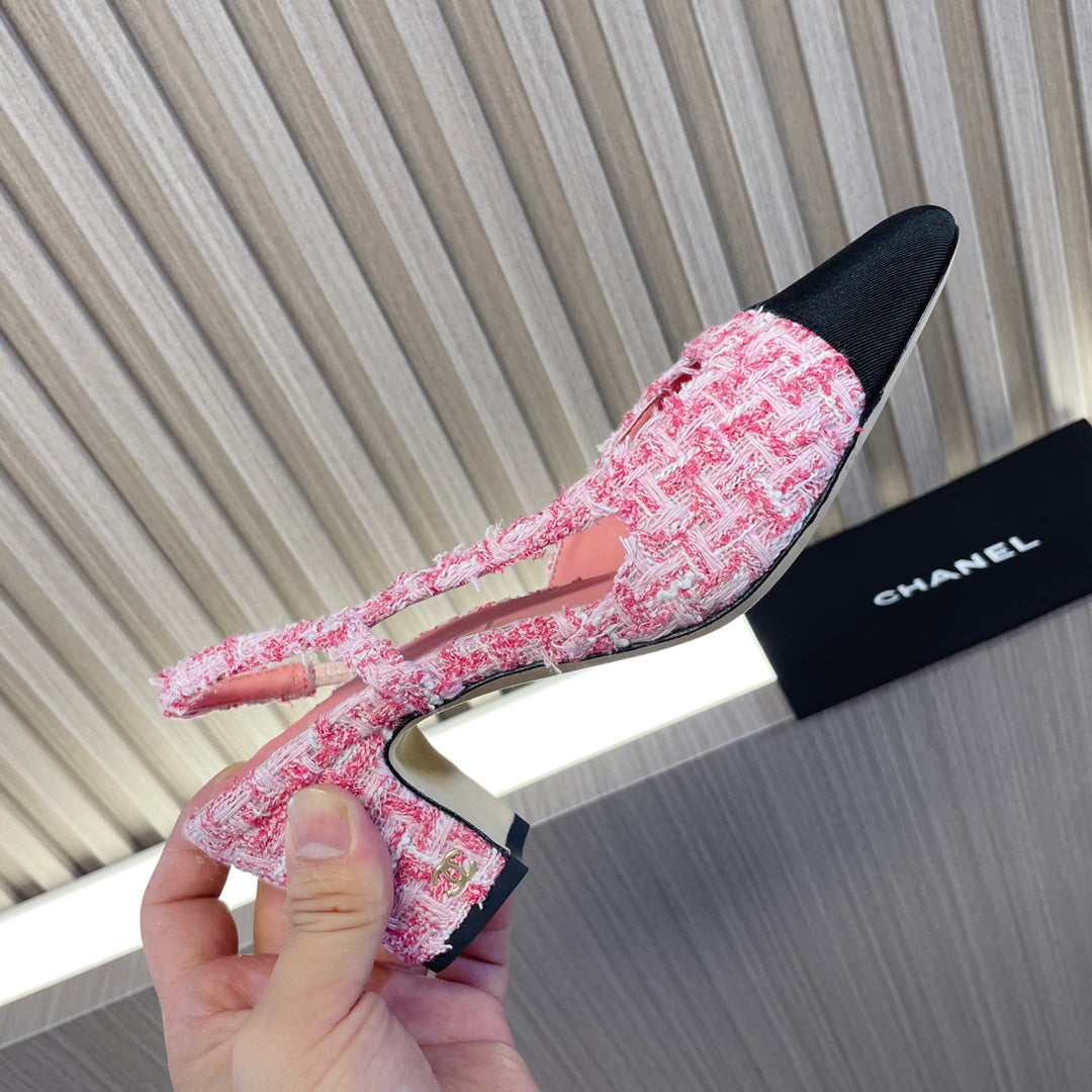 CC Slingbacks Light Pink Mix White Tweed Black Grosgrain 399331