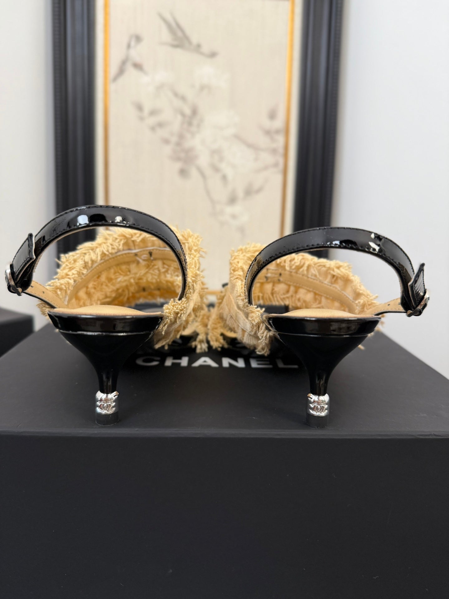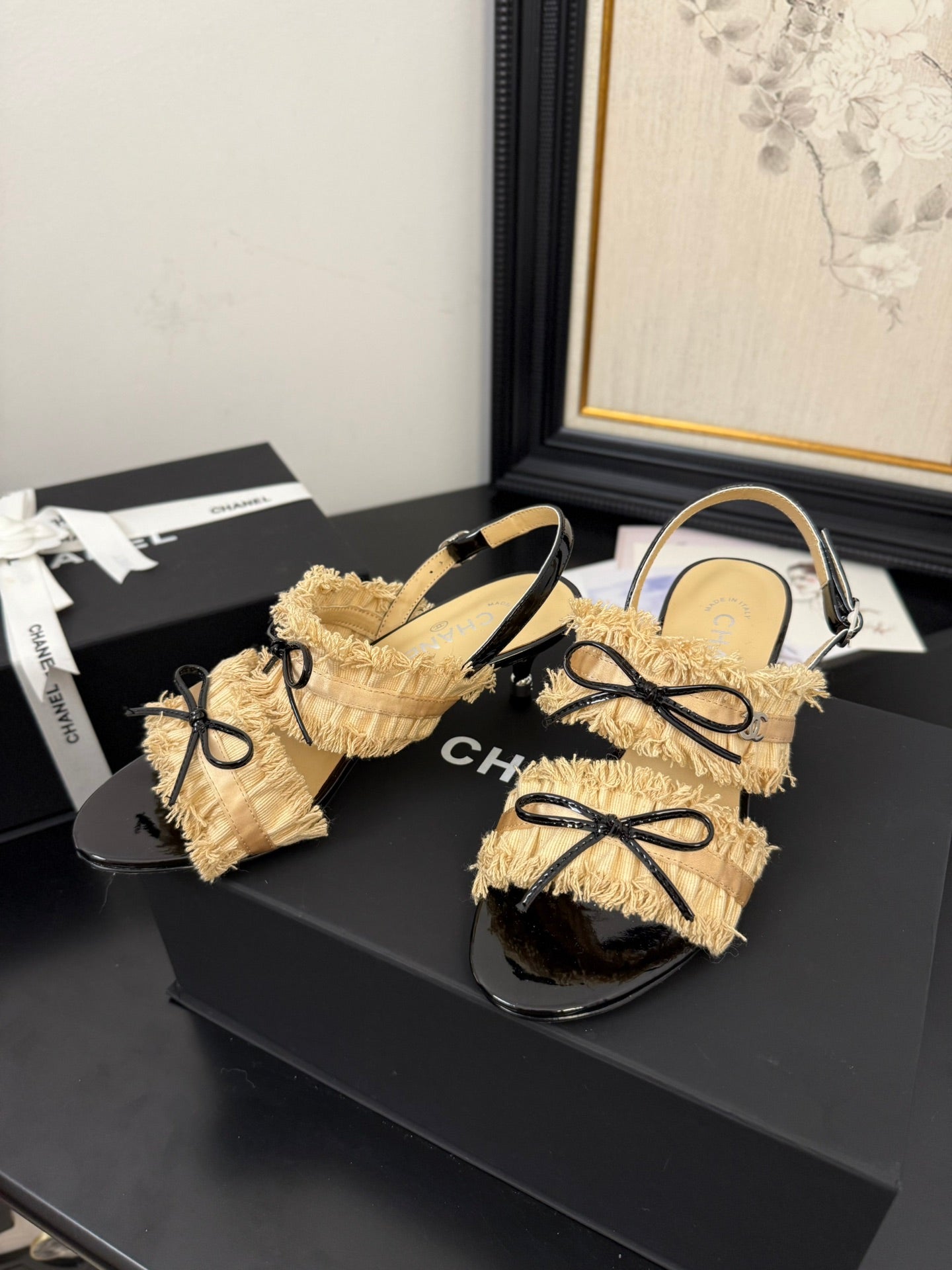cc25 slingback sandal ̣65mm bow black grosgrain gold canvas 233590