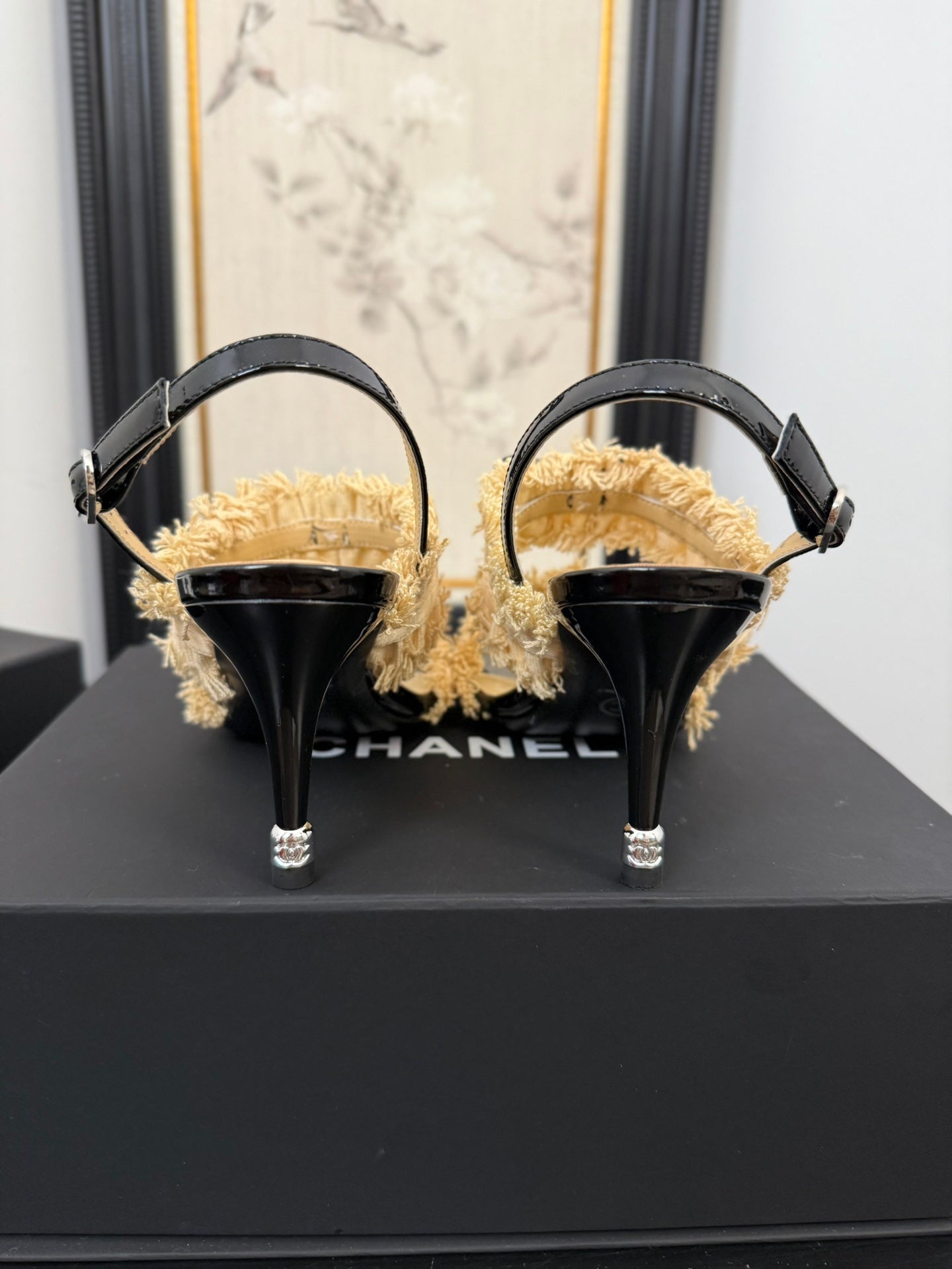 cc25 slingback sandal ̣90mm bow black grosgrain gold canvas 233594