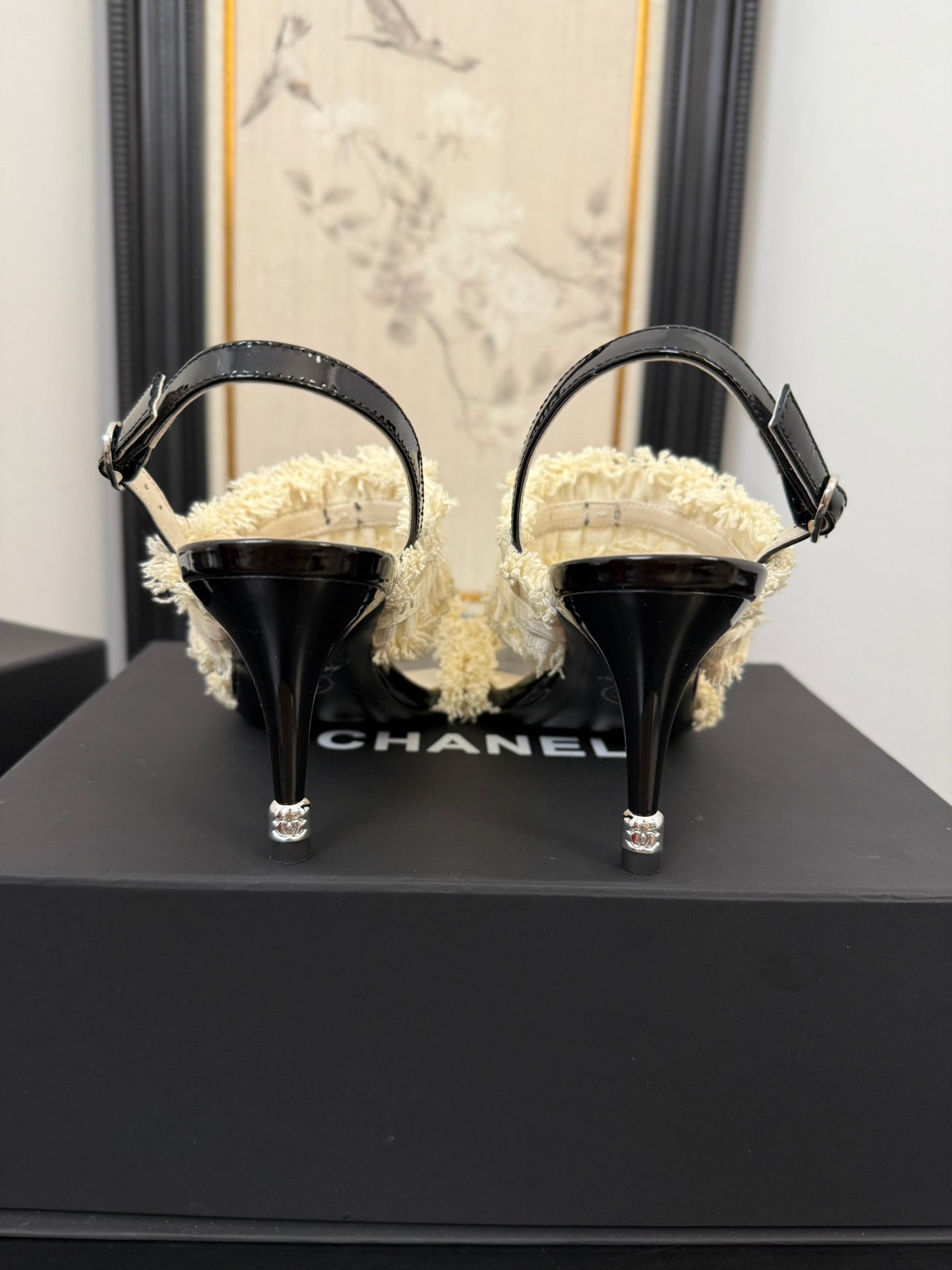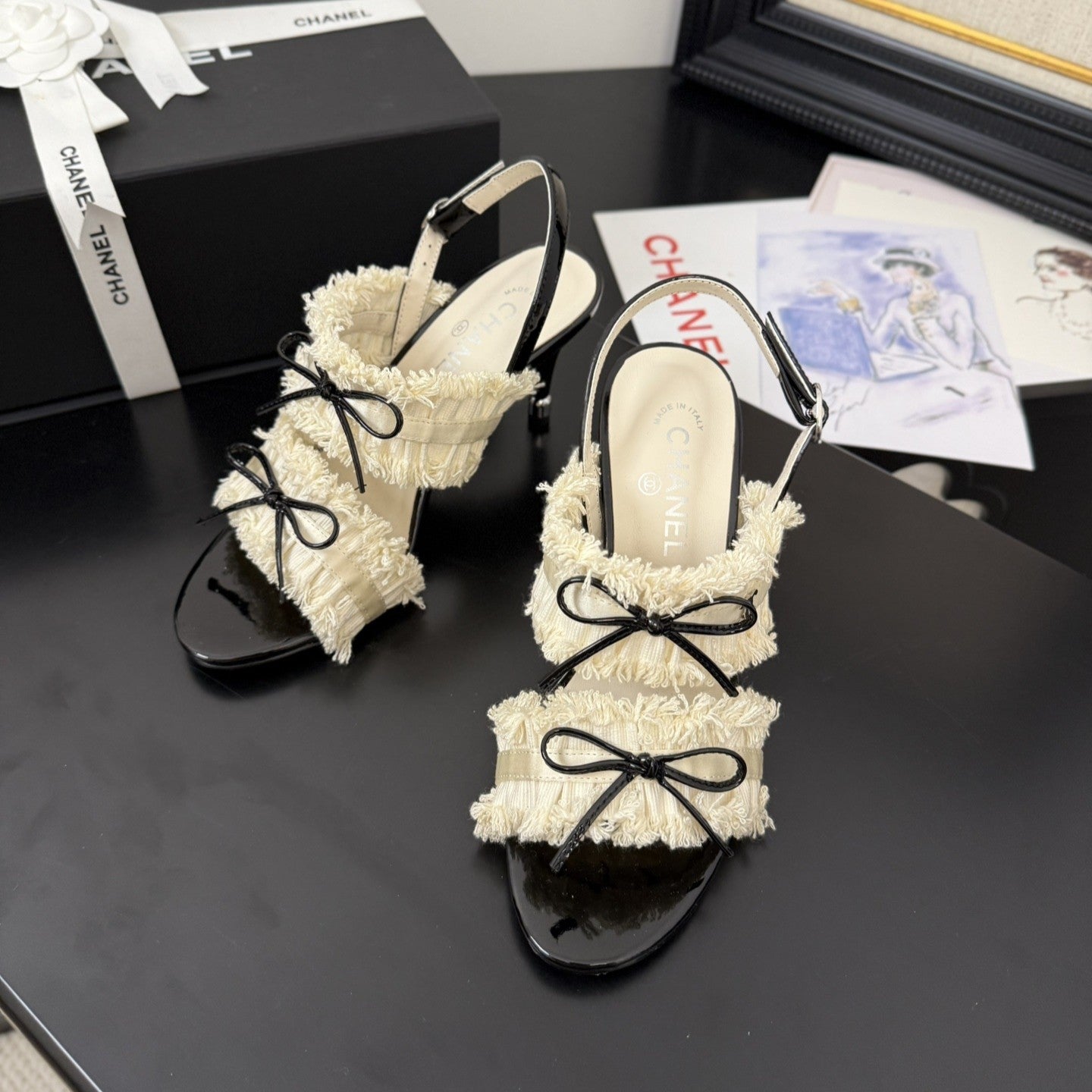 cc25 slingback sandal ̣90mm bow black grosgrain white canvas 233593