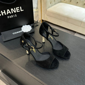 CC 25S Sandal Heel 50mm Black Suede Kidskin Pearl Logo
