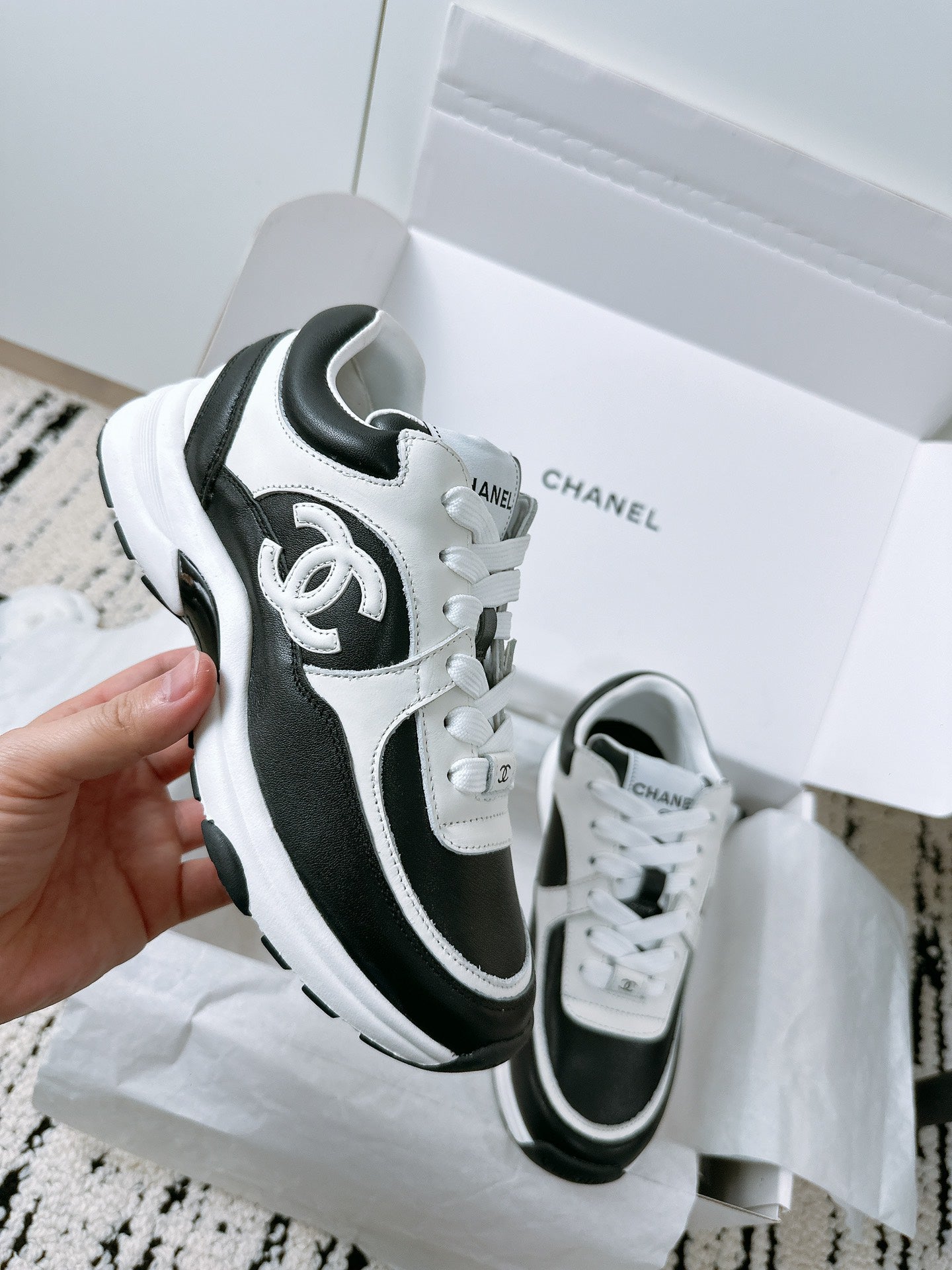 CC Sneaker 35mm In Black Mix White Soft Cowhide 144704