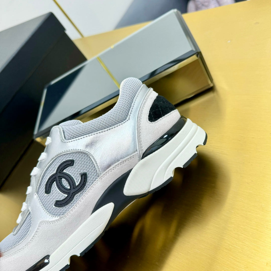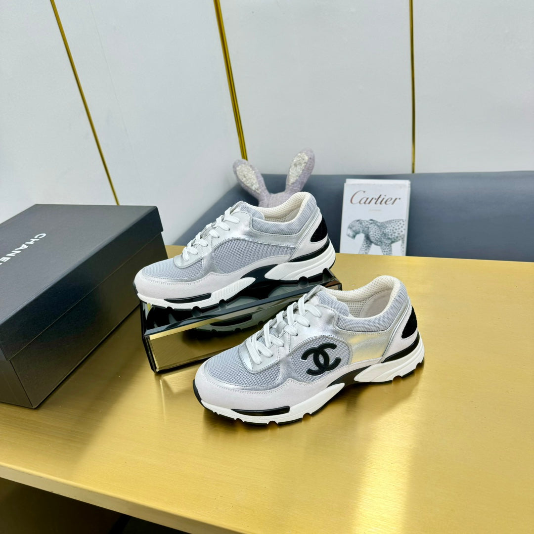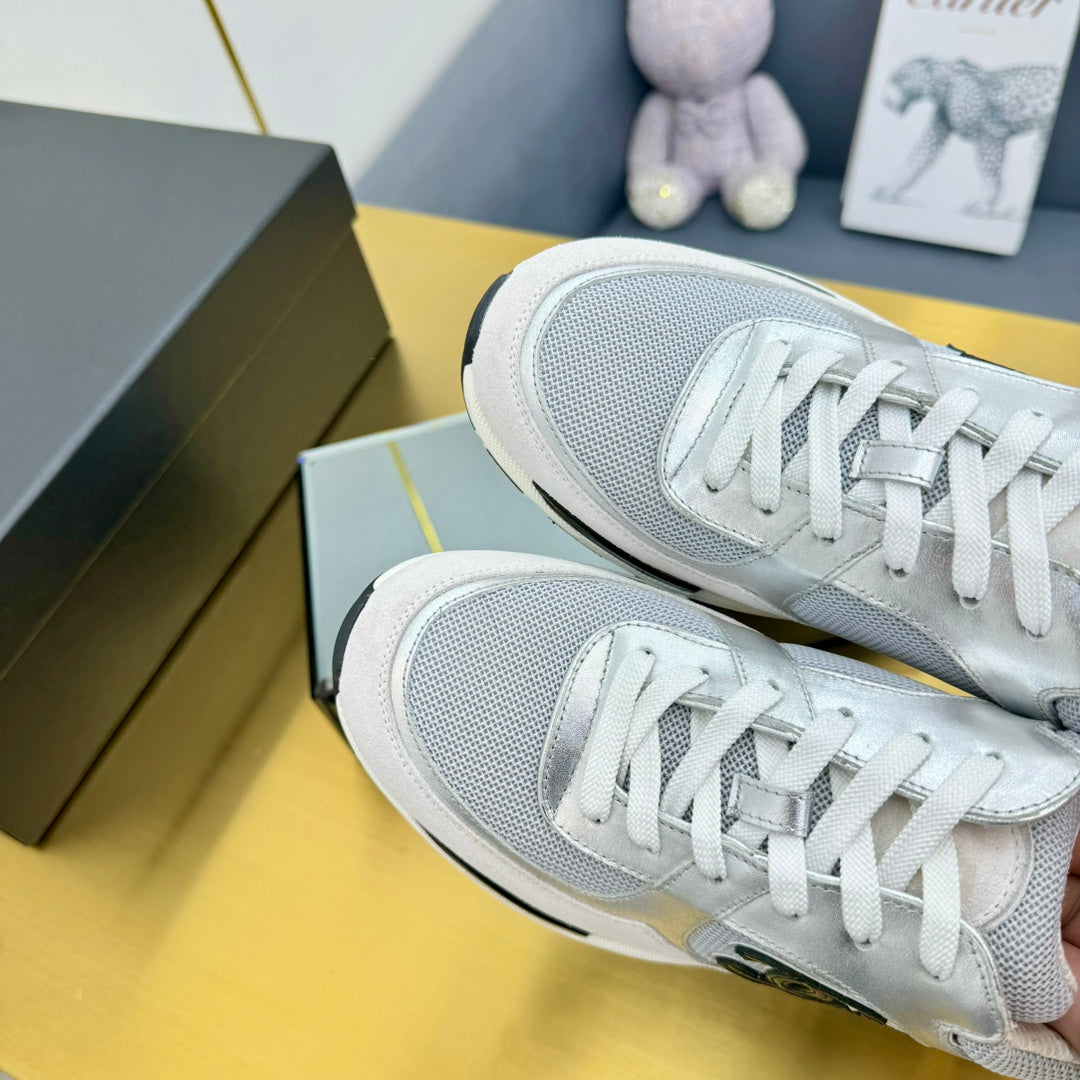 cc womens sneaker in grey wool tweed silver calfskin and beige suede calfskin 137575