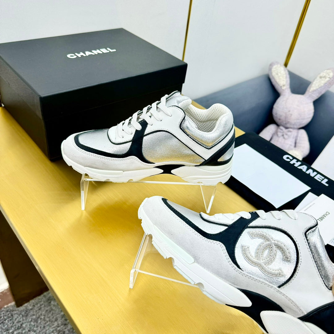 cc womens sneaker in silver wool tweed and white black suede calfskin 137610