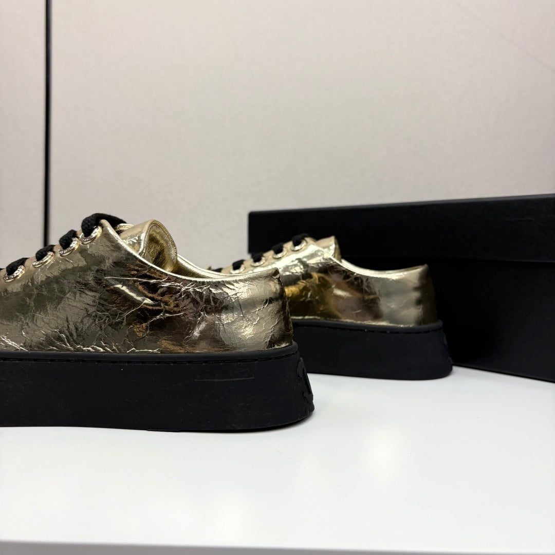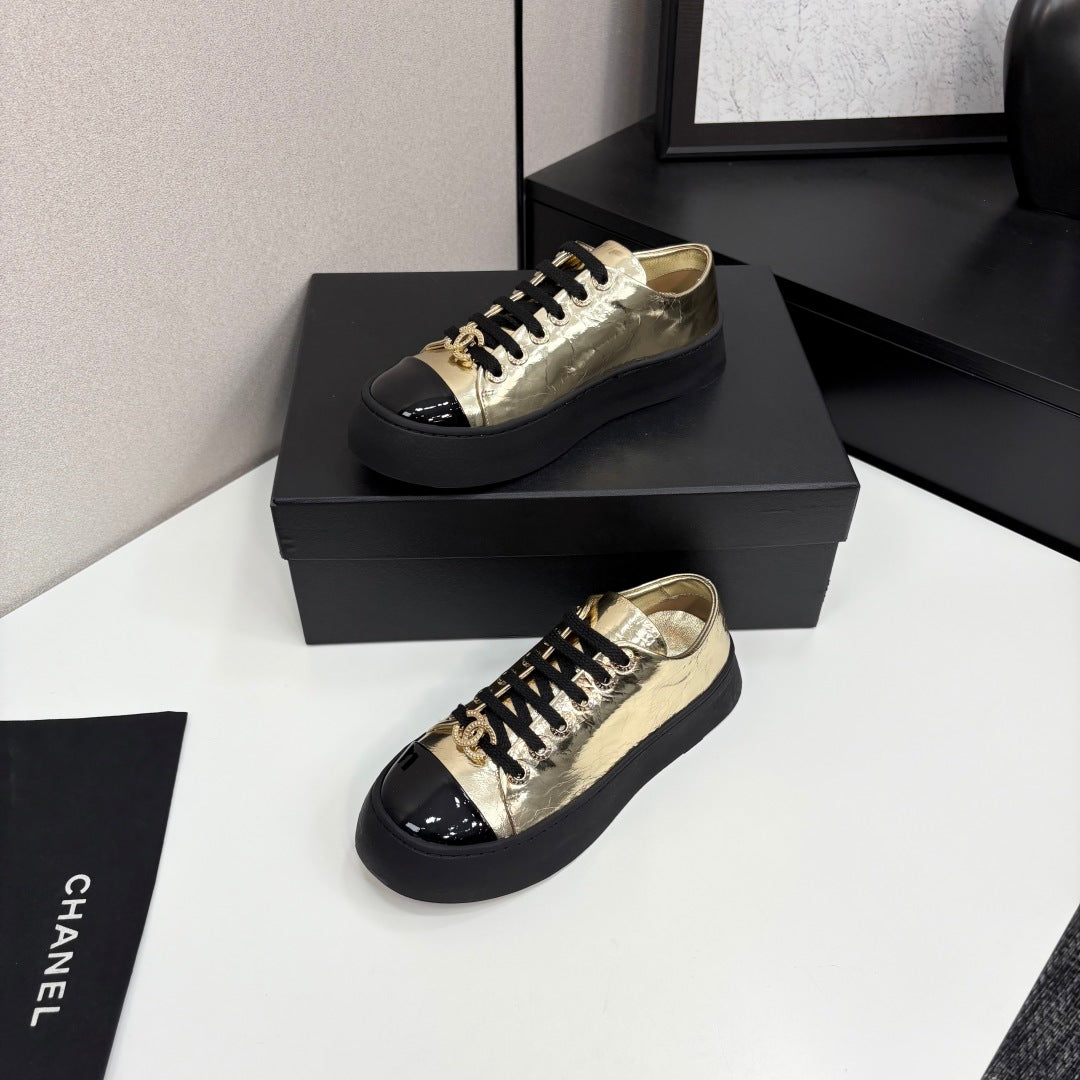 CC25 Lace-up Sneakers Gold Metallic Cowhide And Black Patent Leather 352500