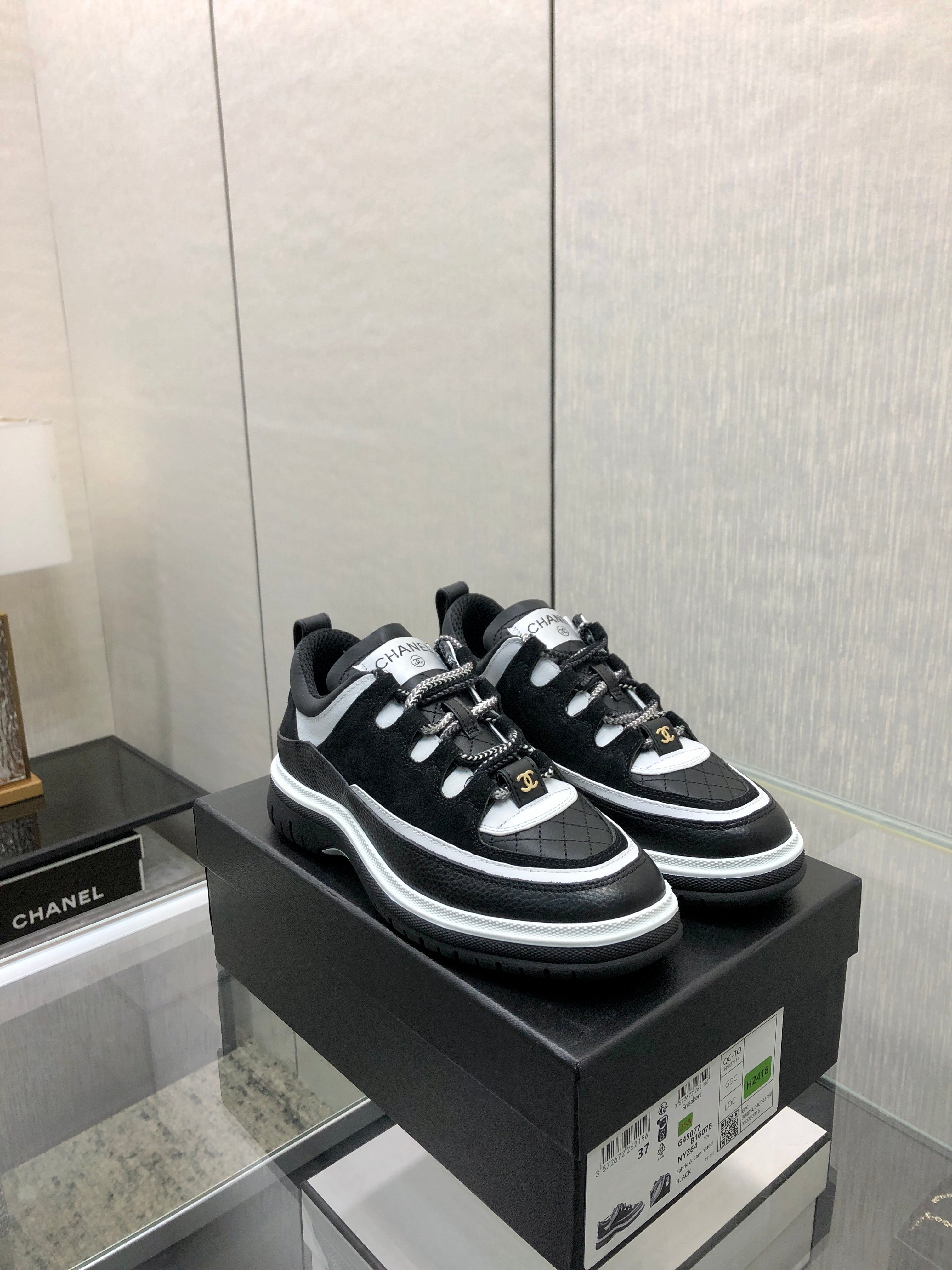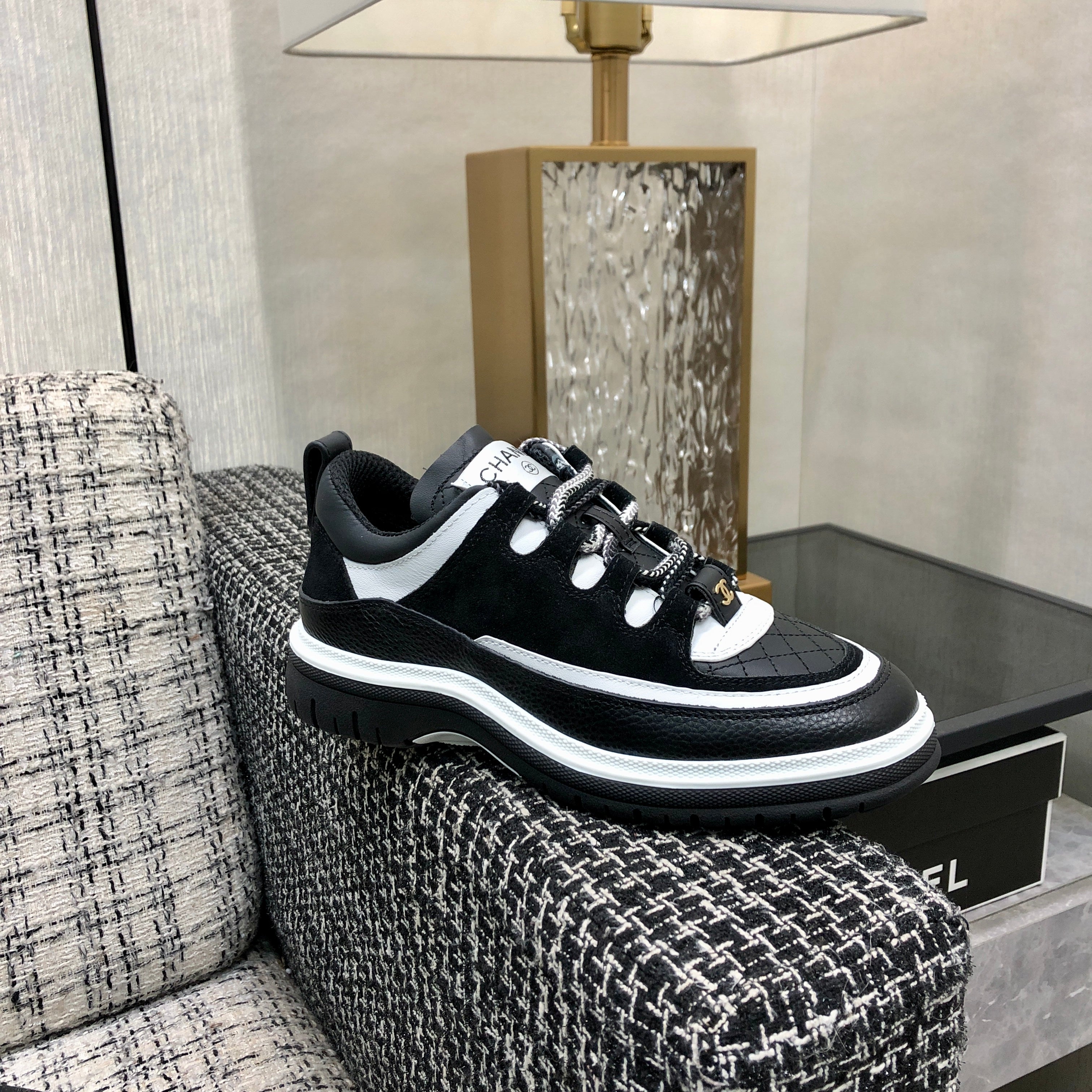 LOW TOP CASUAL SHOES IN BLACK MIX WHITE LAMBSKIN AND SUEDE