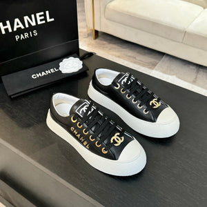 CC SNEAKER IN GOLD CALFSKIN AND SUEDE