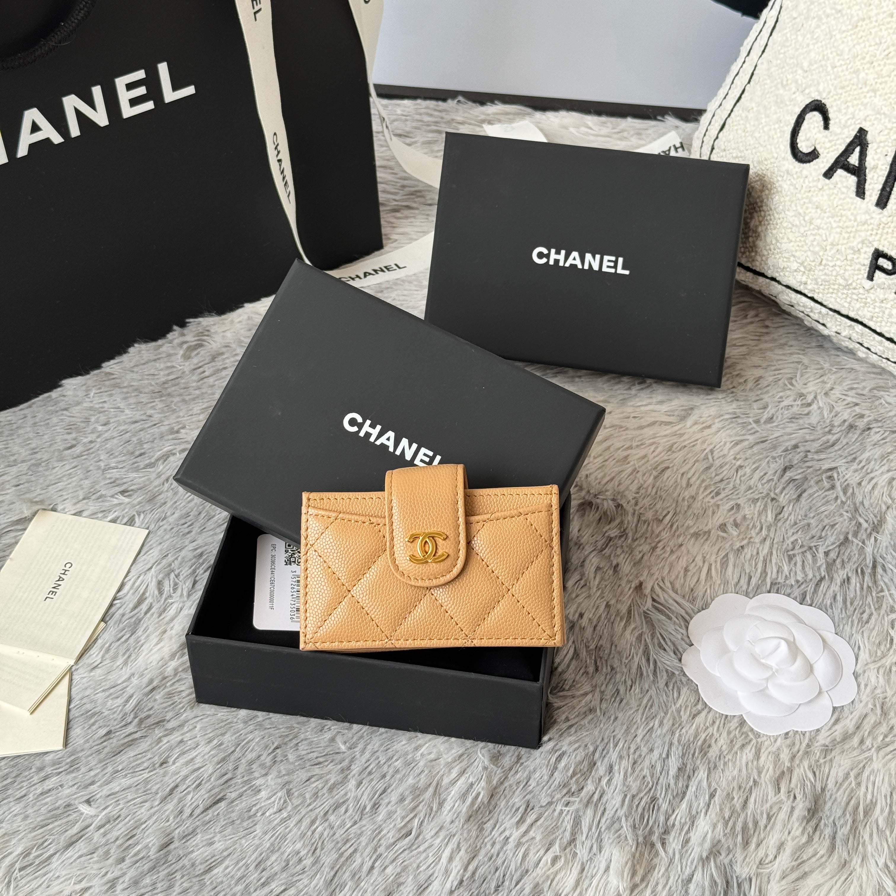 CC Accordion Card Holder Beige Gold-tone Metal Caviar 242661