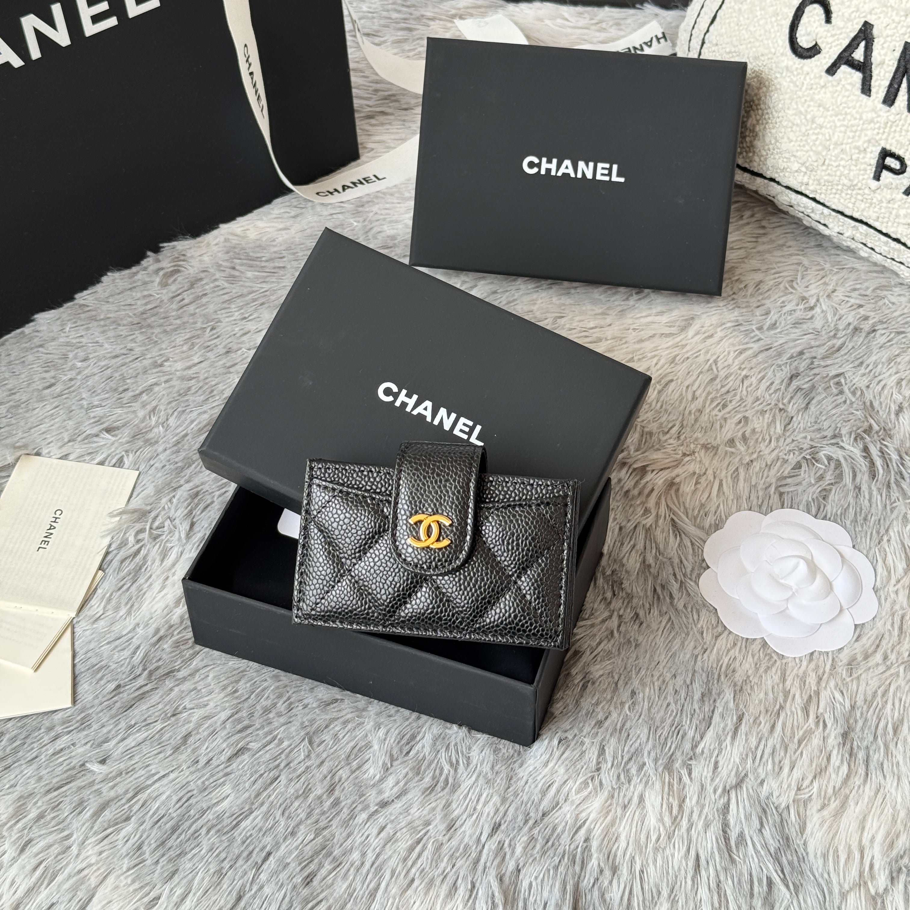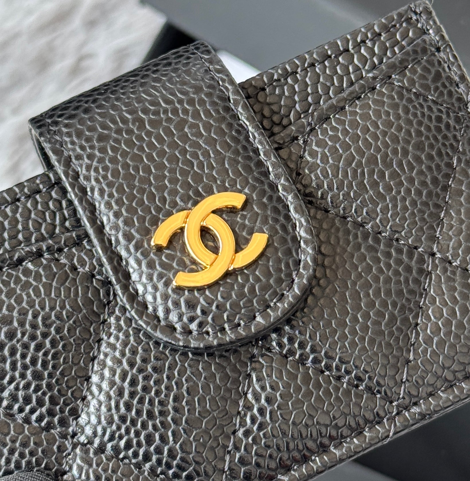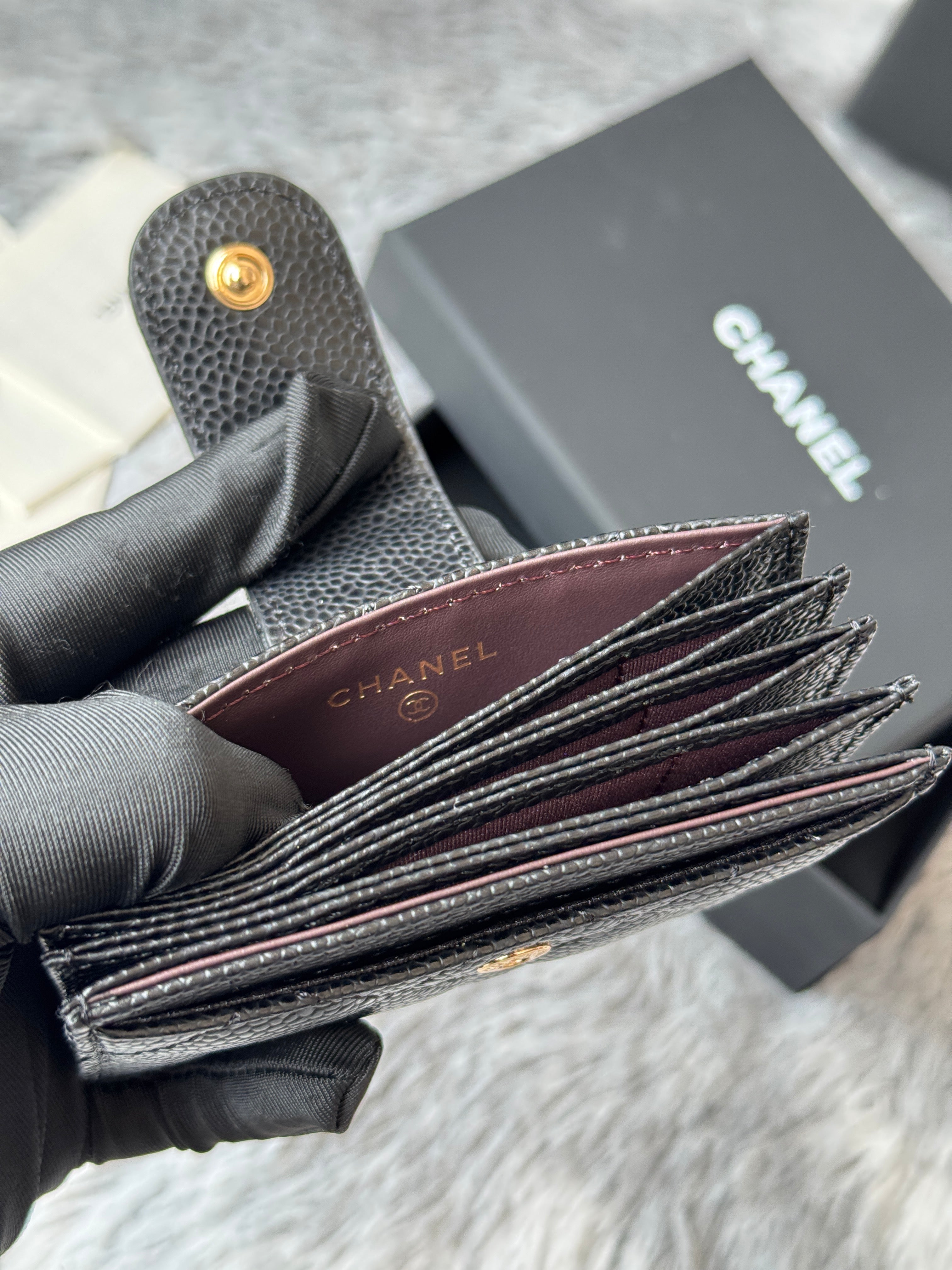CC Accordion Card Holder Black Gold-tone Metal Caviar 242648