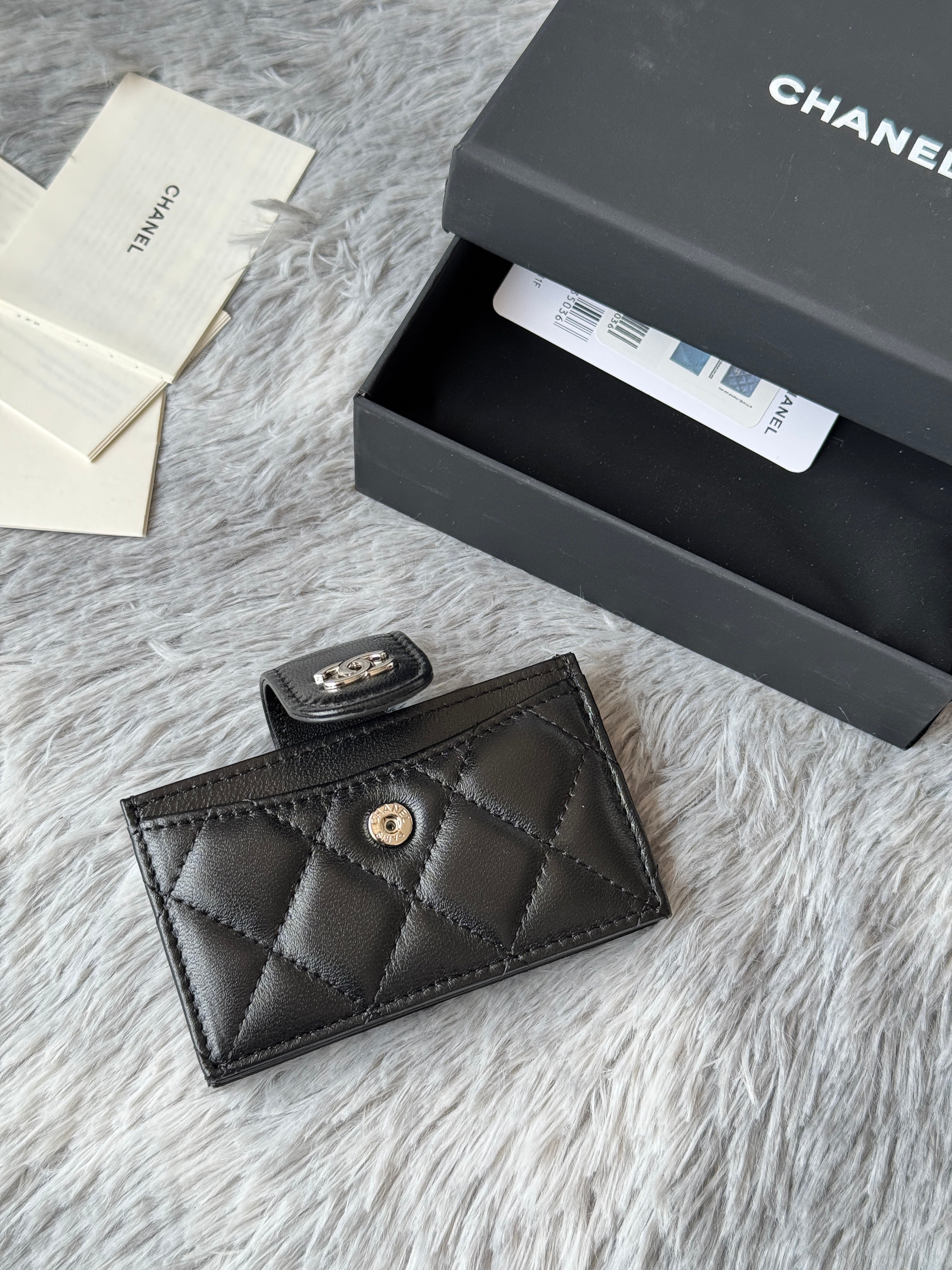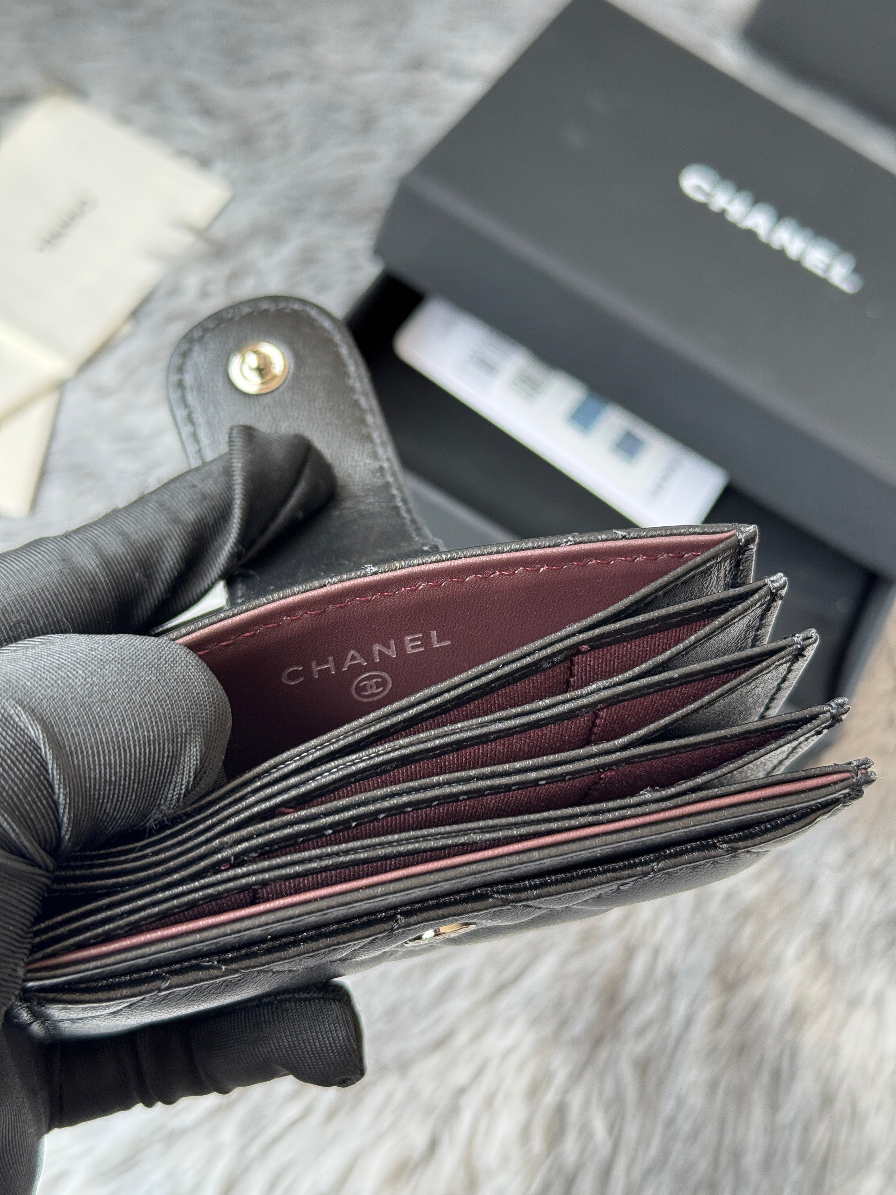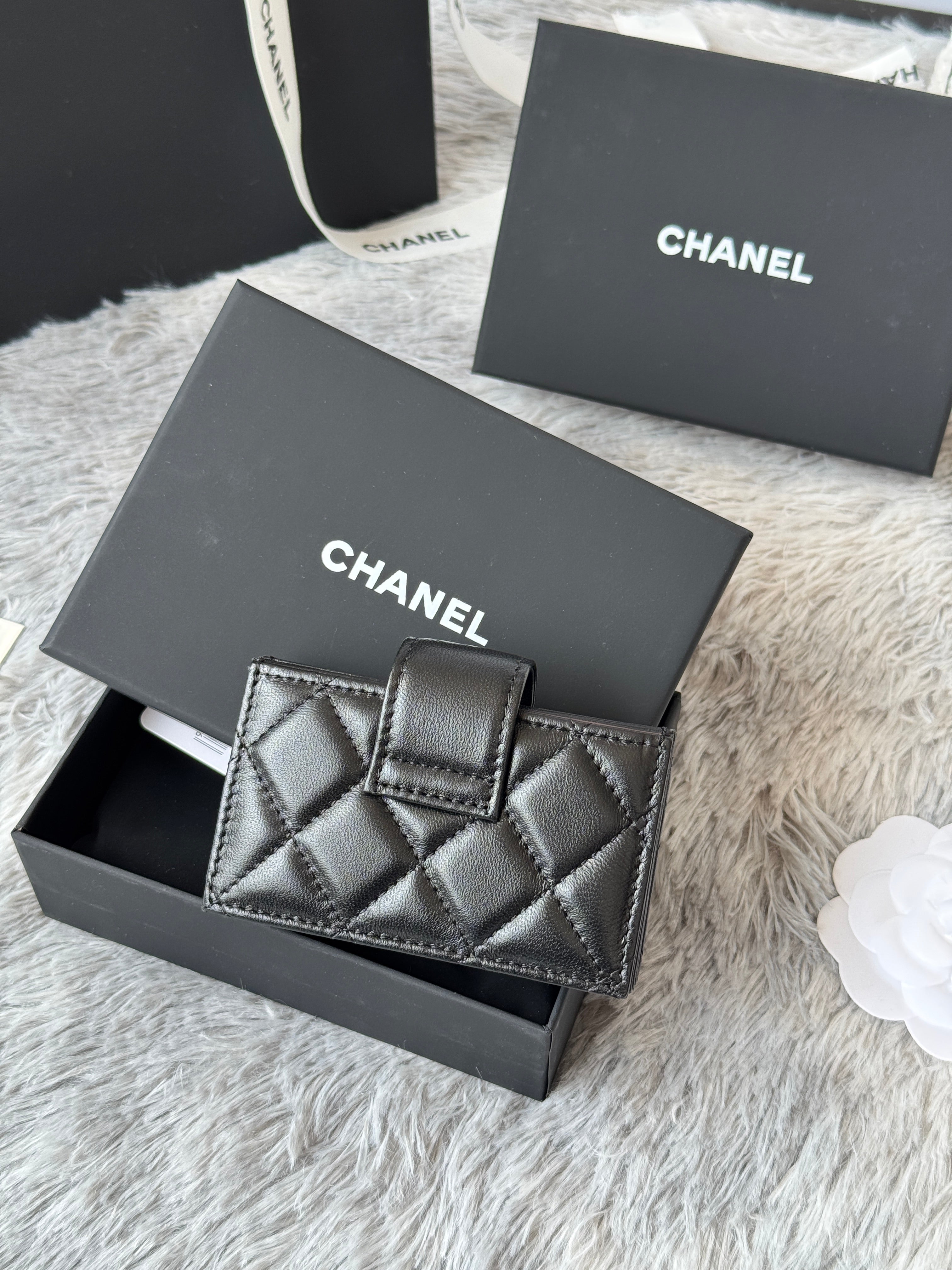 CC Accordion Card Holder Black Sliver-tone Metal Lamskin 242642
