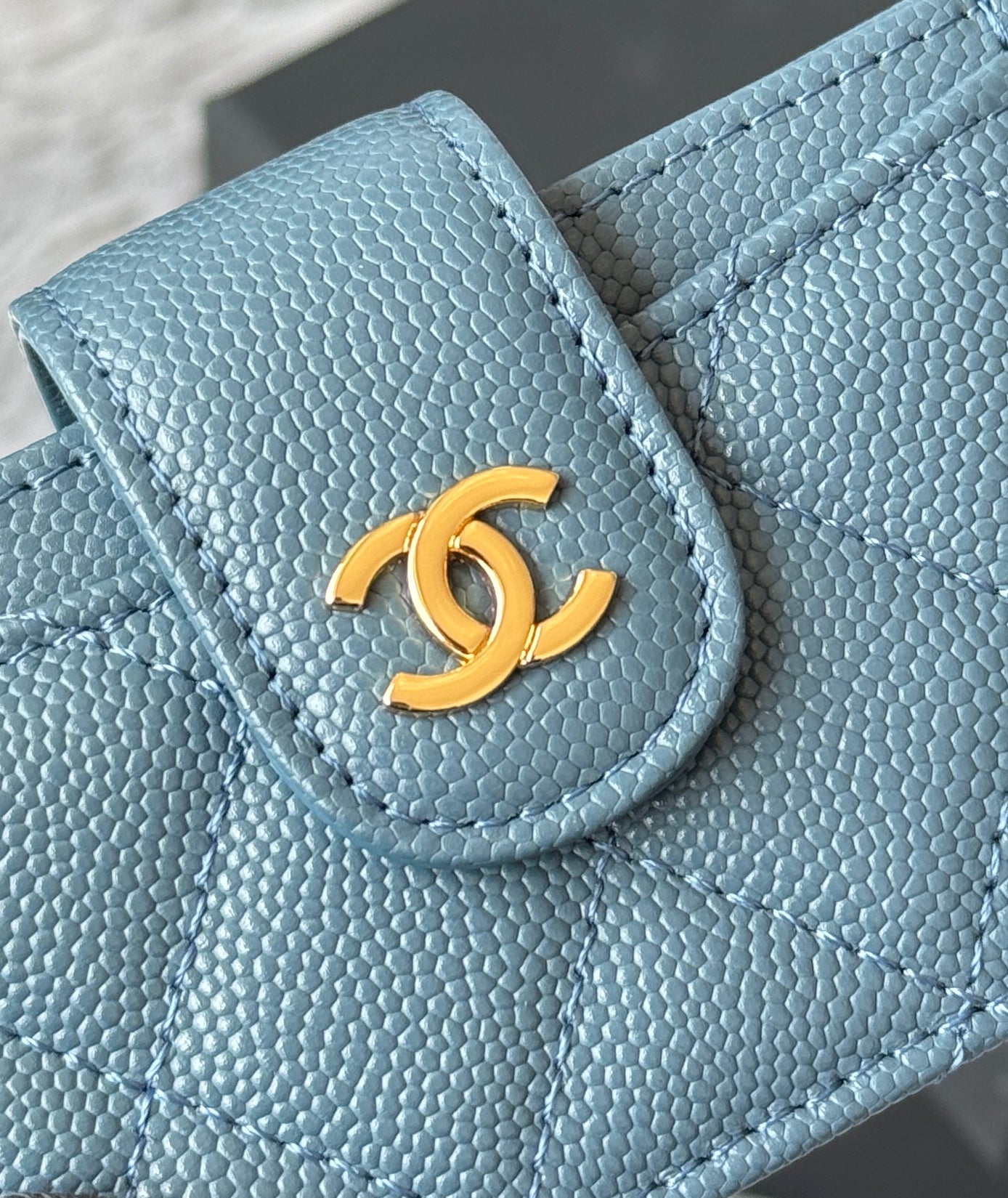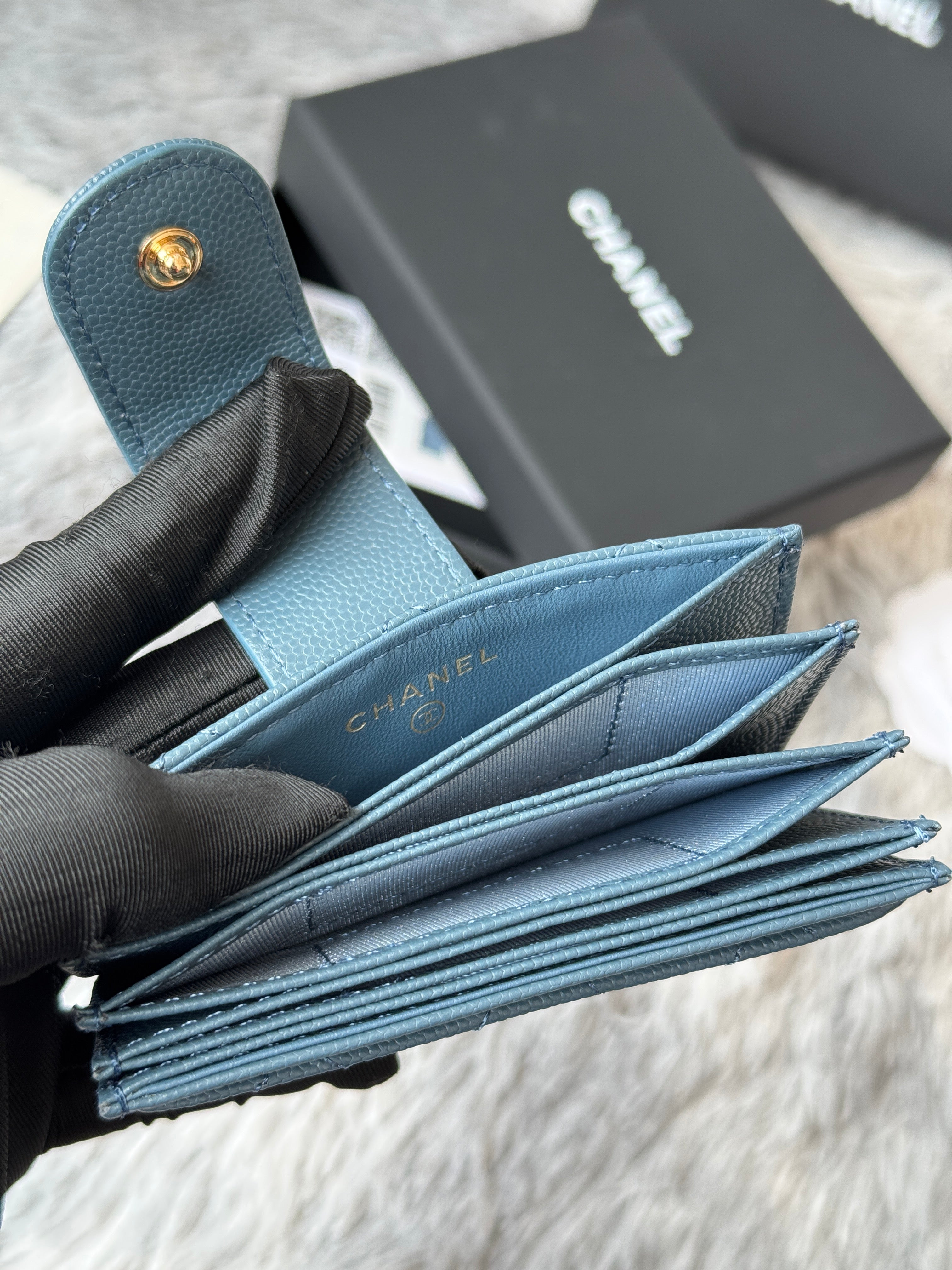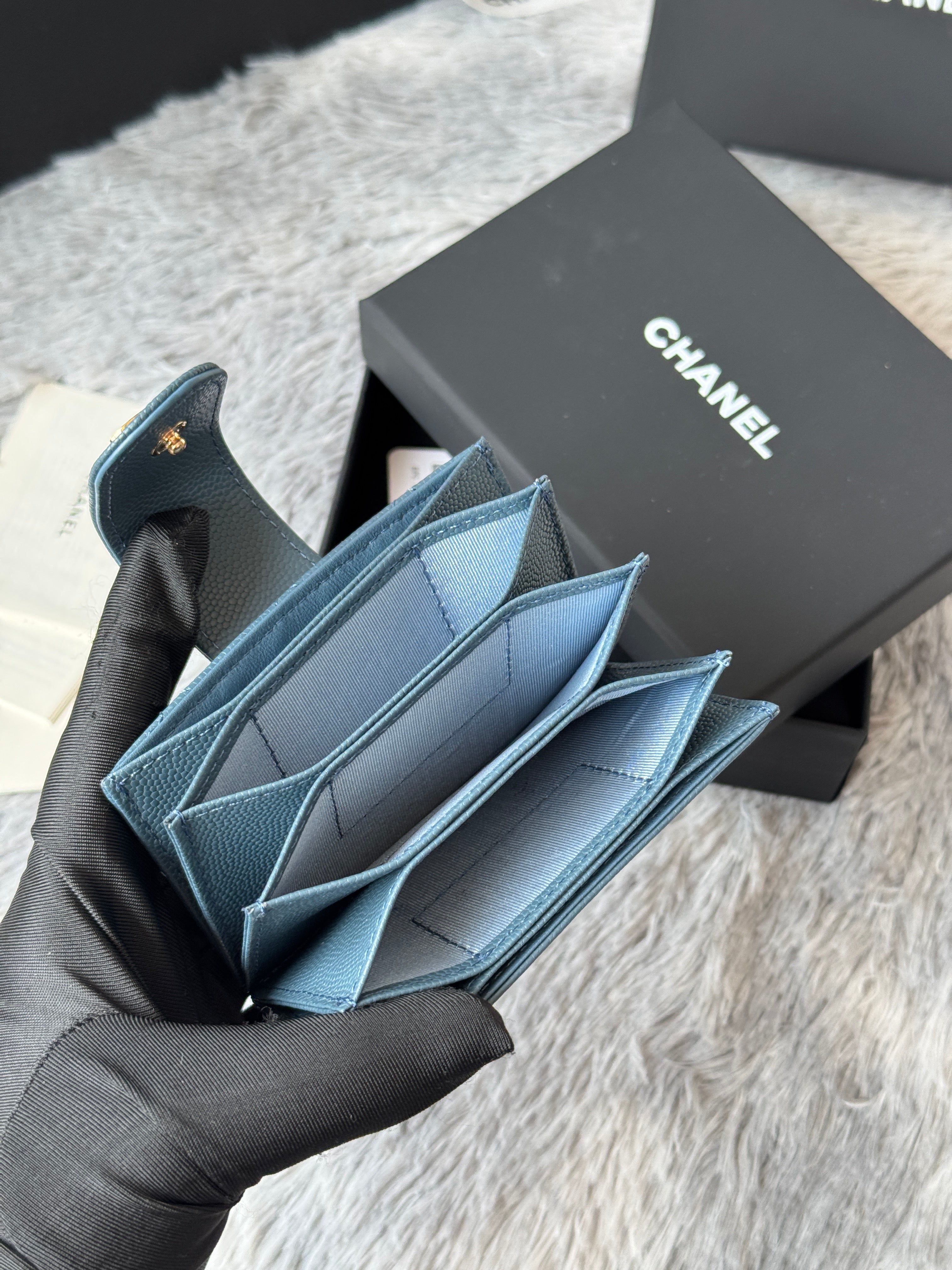 CC Accordion Card Holder Blue Gold-tone Metal Caviar 242659