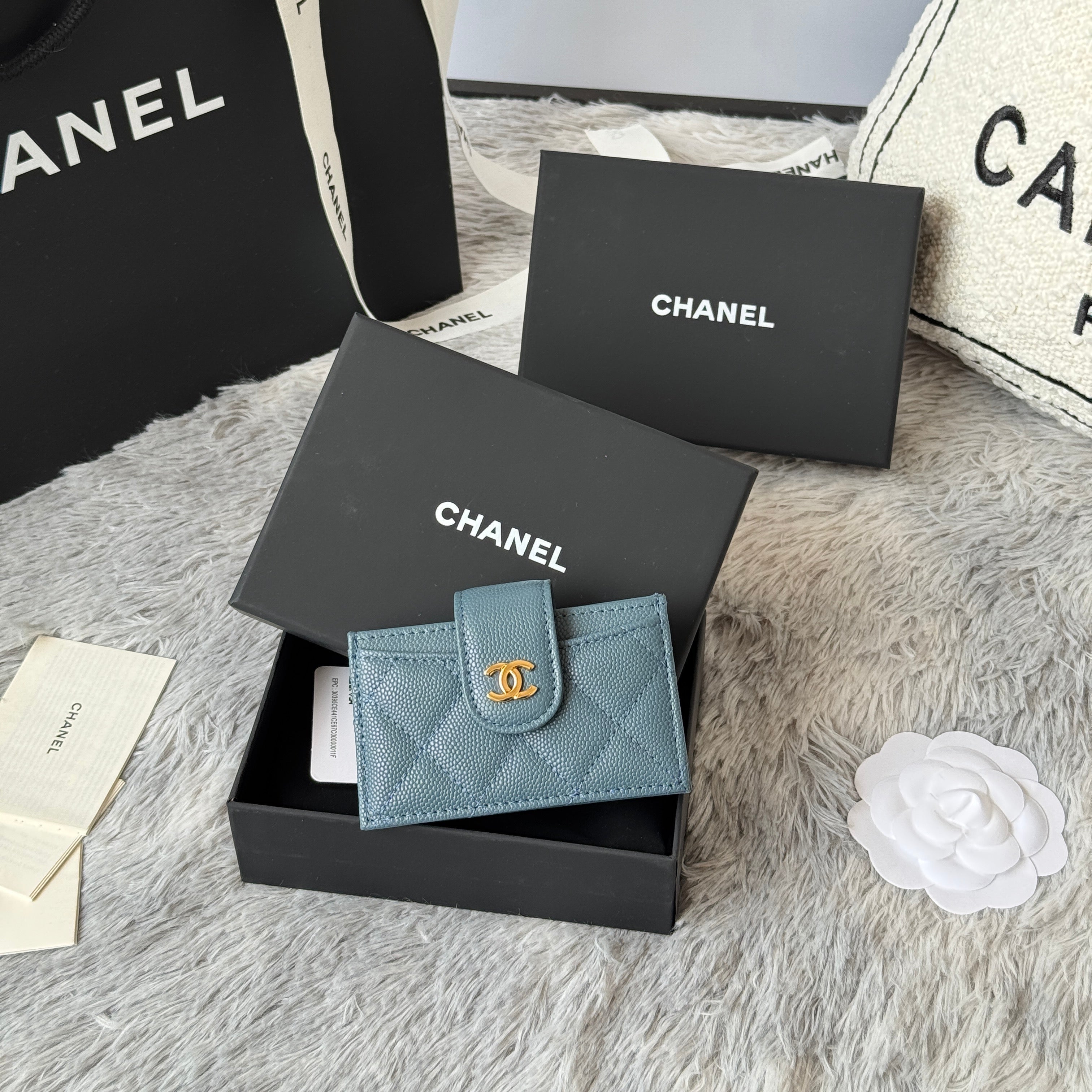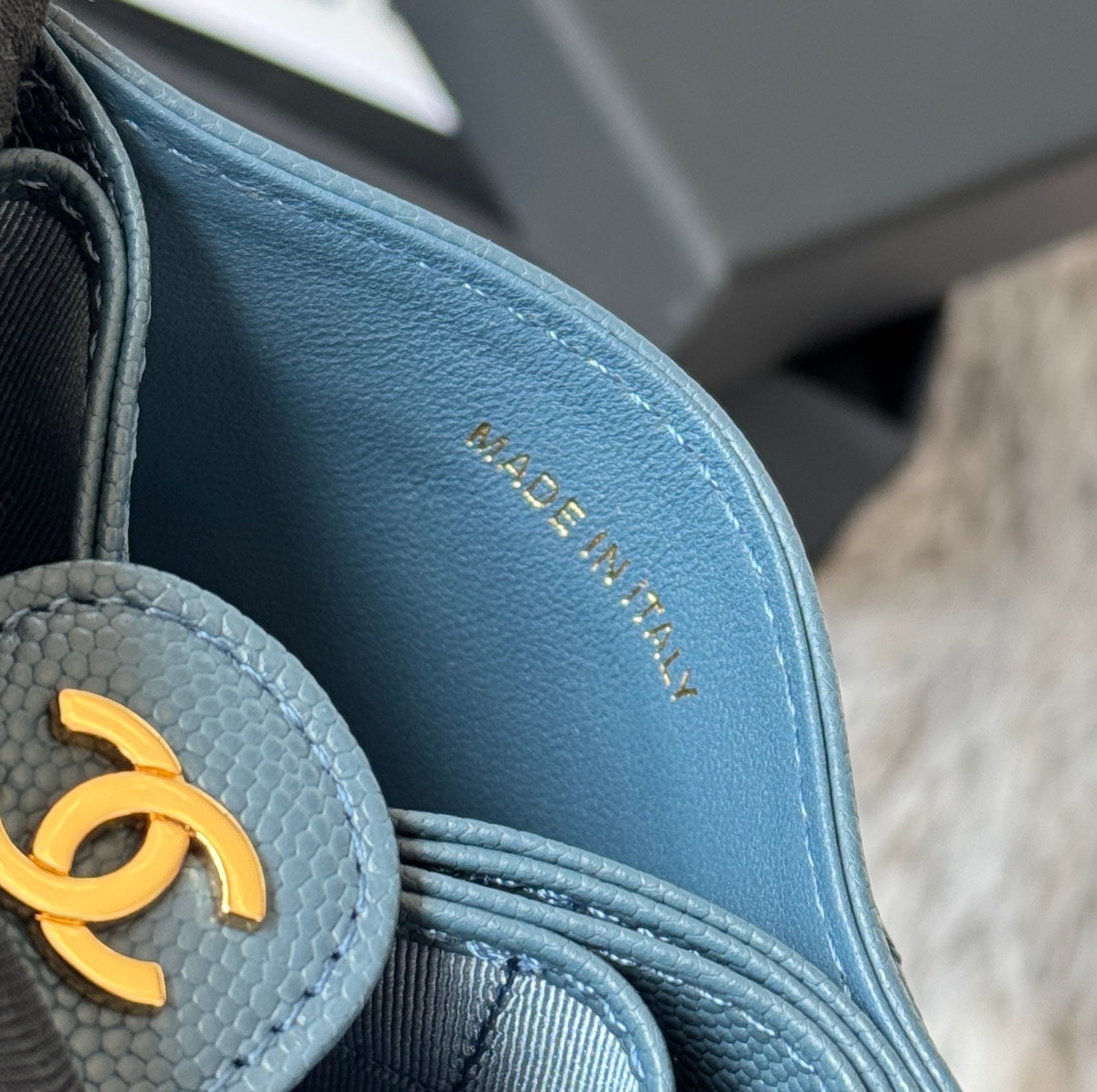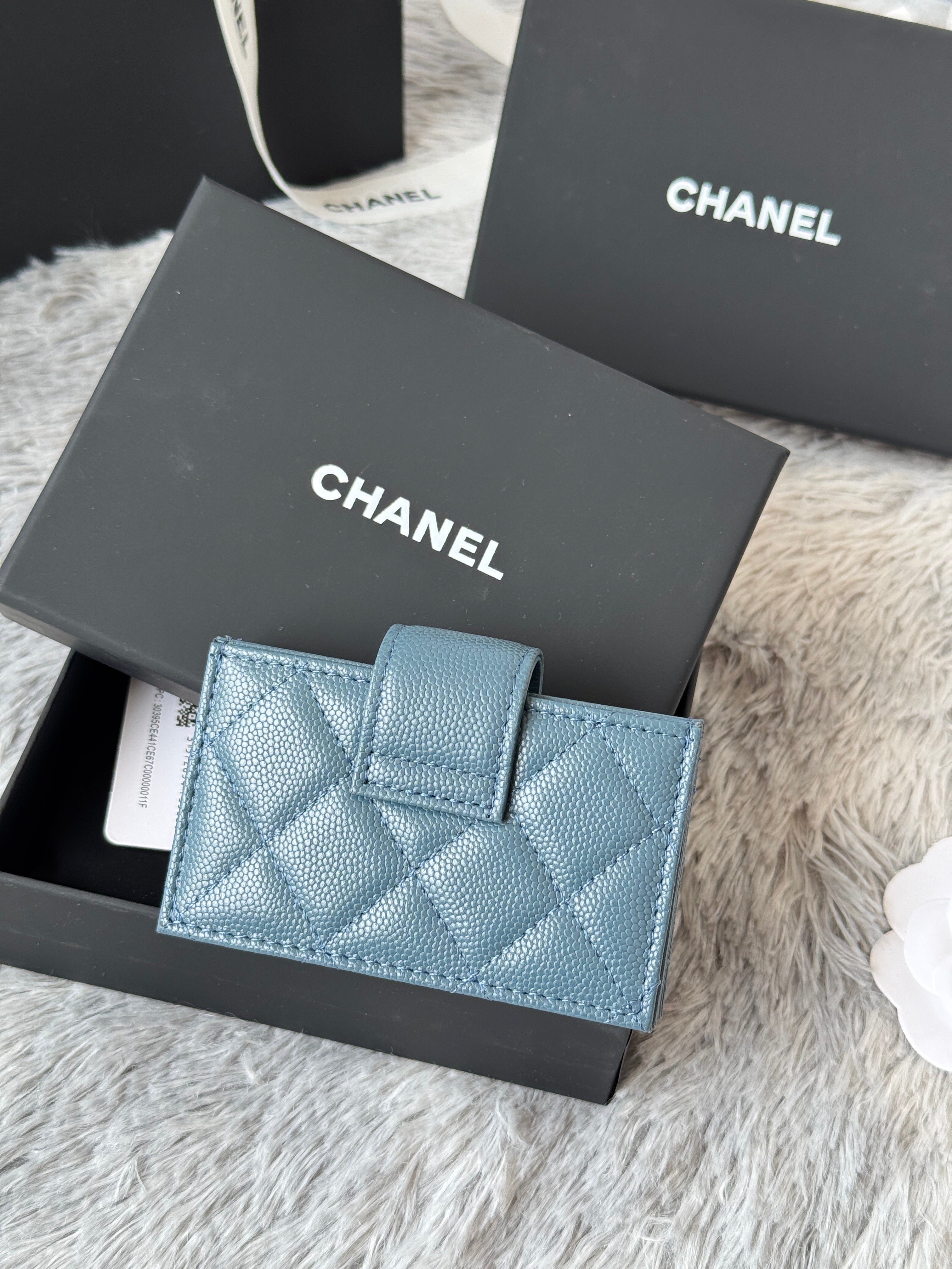 CC Accordion Card Holder Blue Gold-tone Metal Caviar 242659