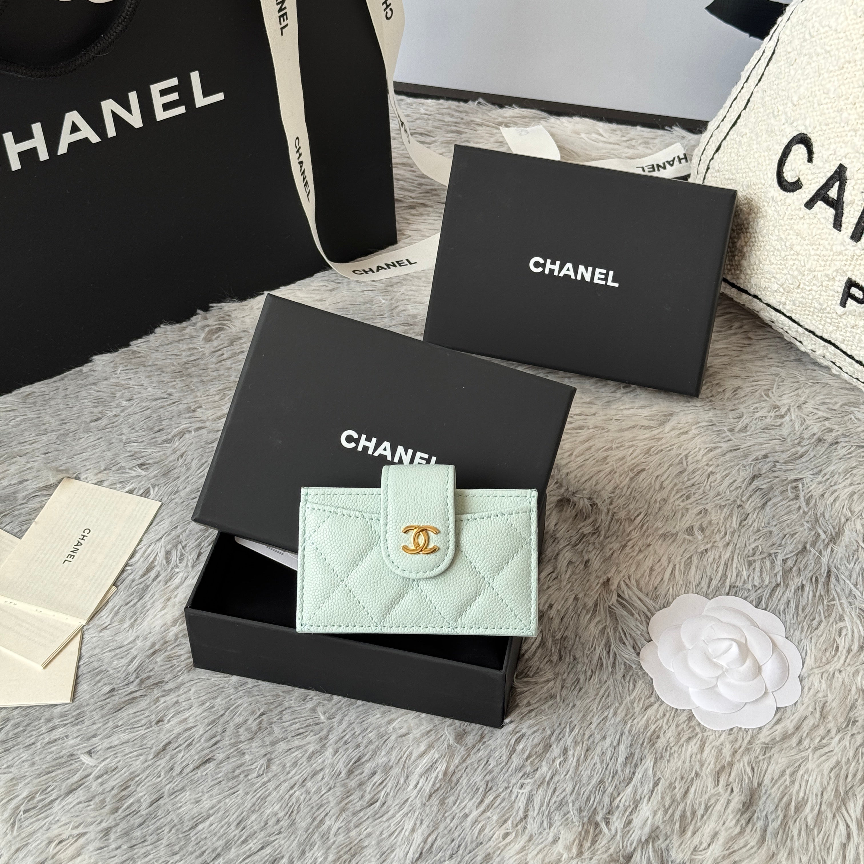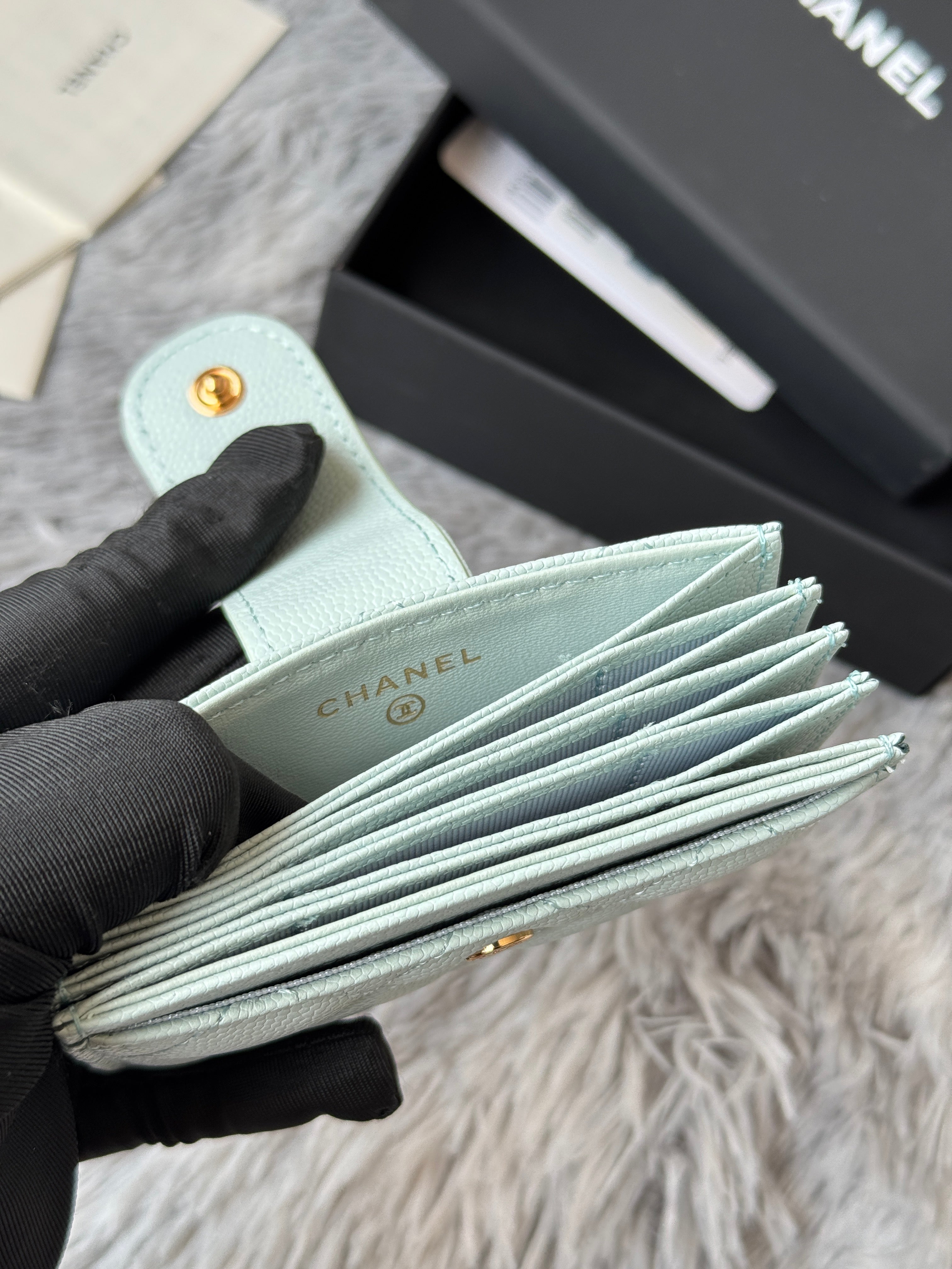 CC Accordion Card Holder Light Blue Gold-tone Metal Caviar 242663