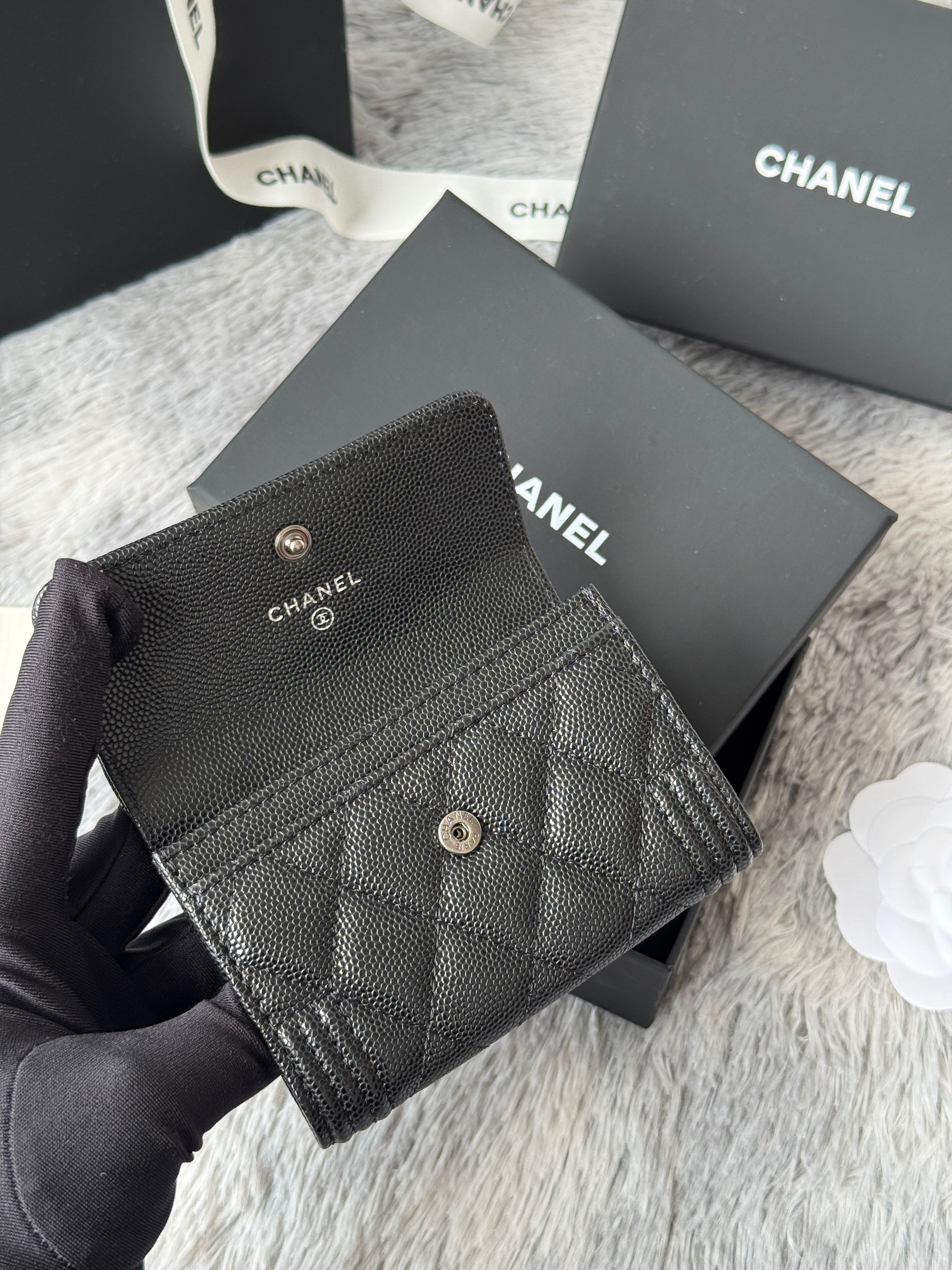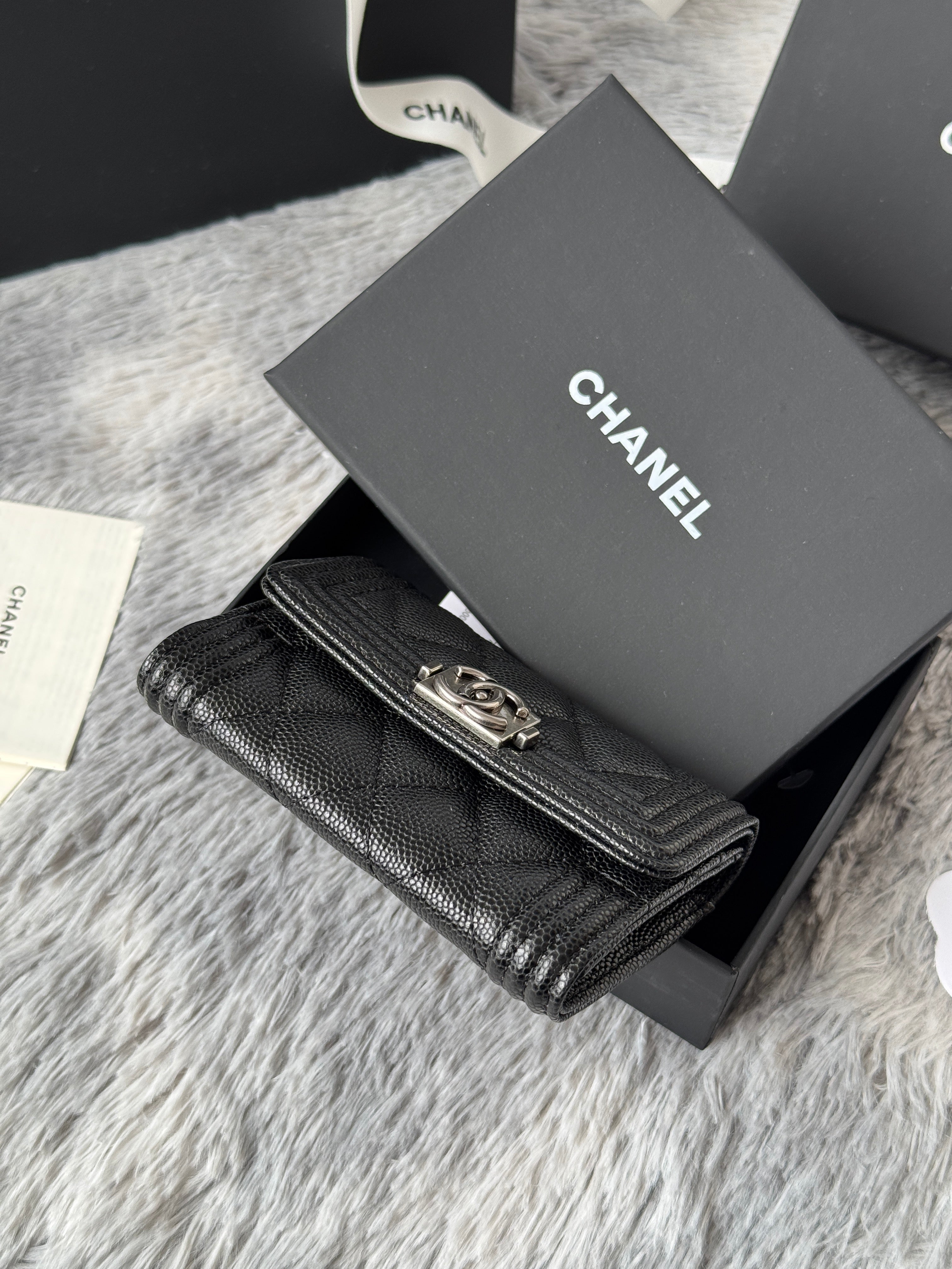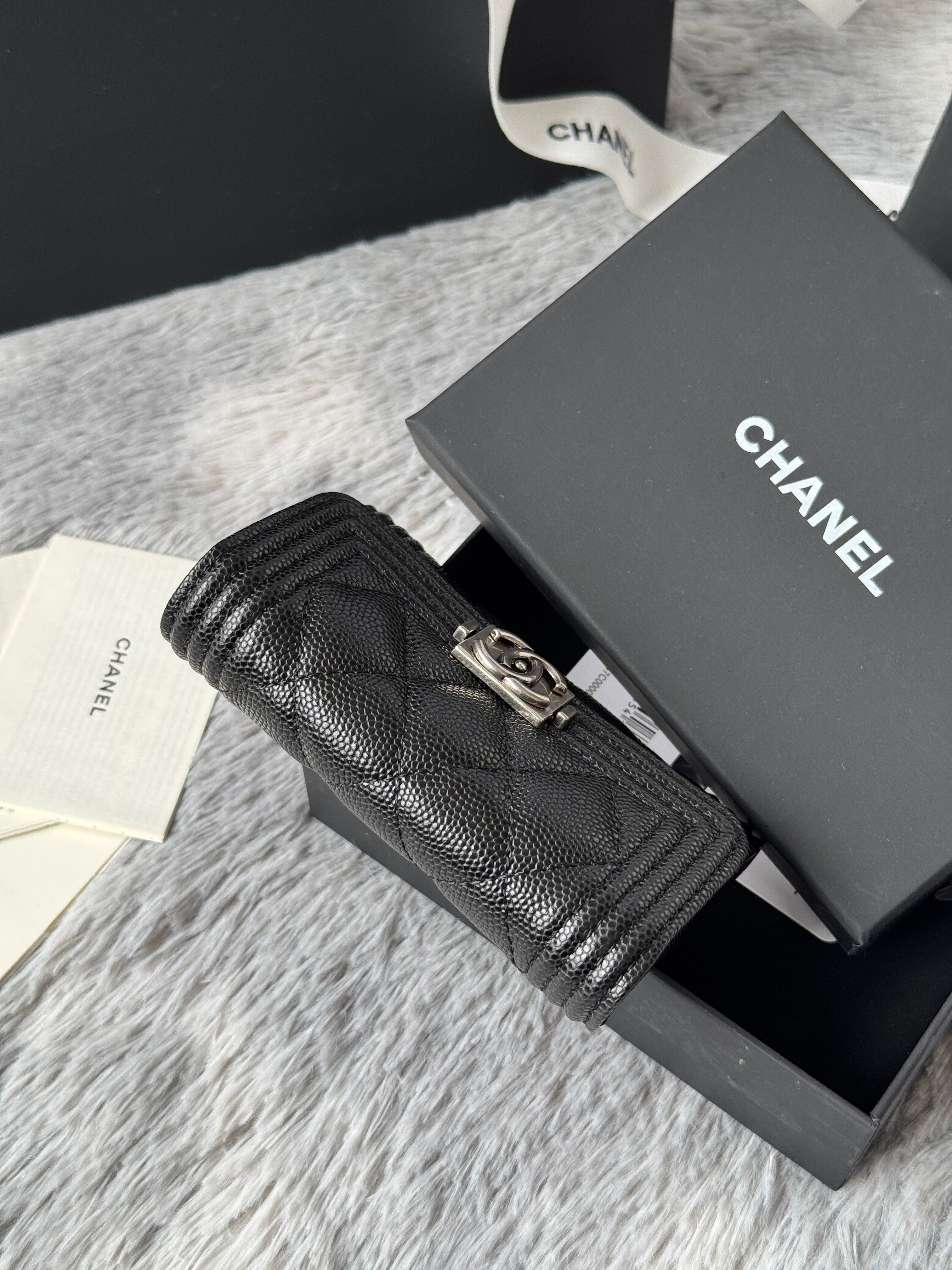 CC Boy Flap Card Holder Black Sliver-tone Grained Calfskin 242888