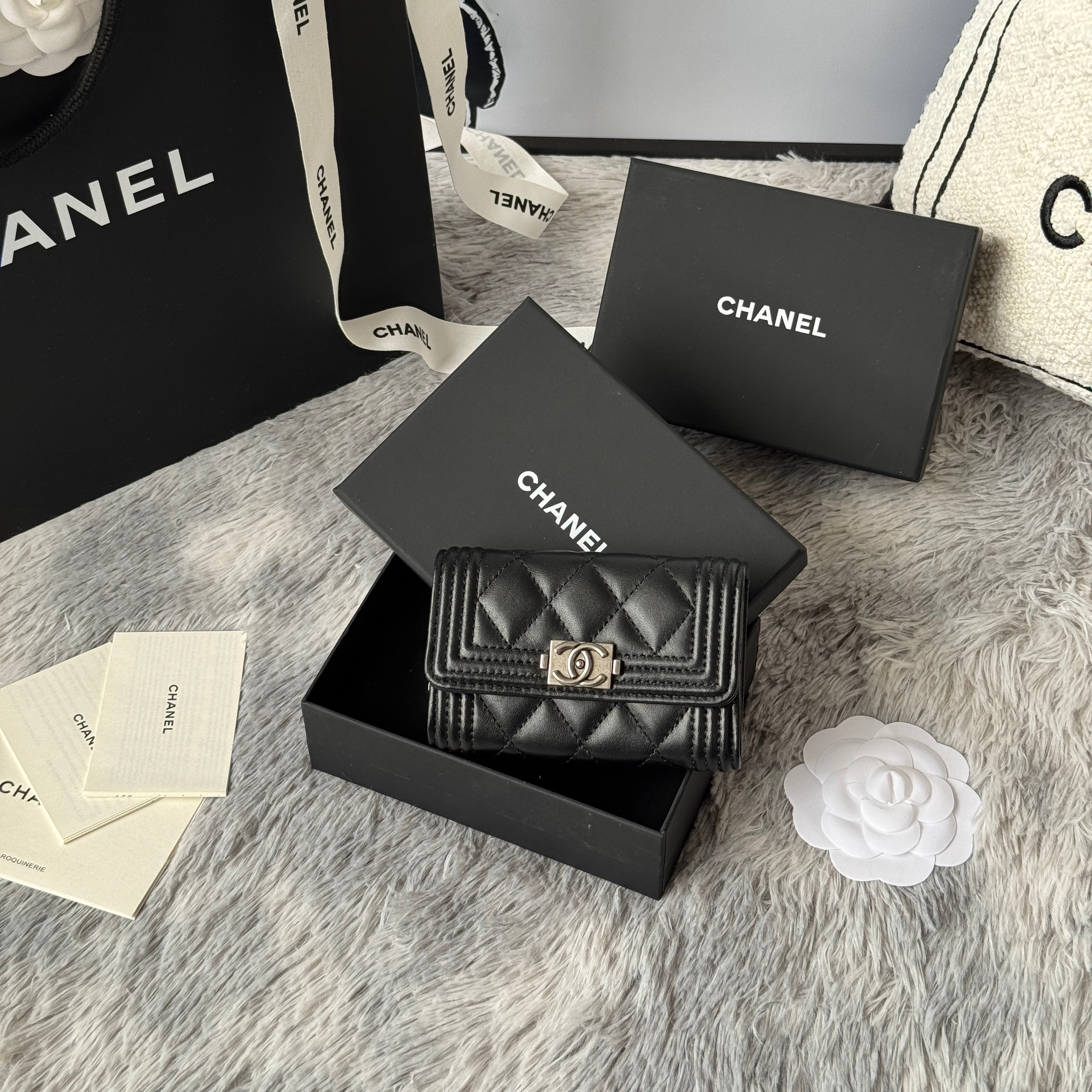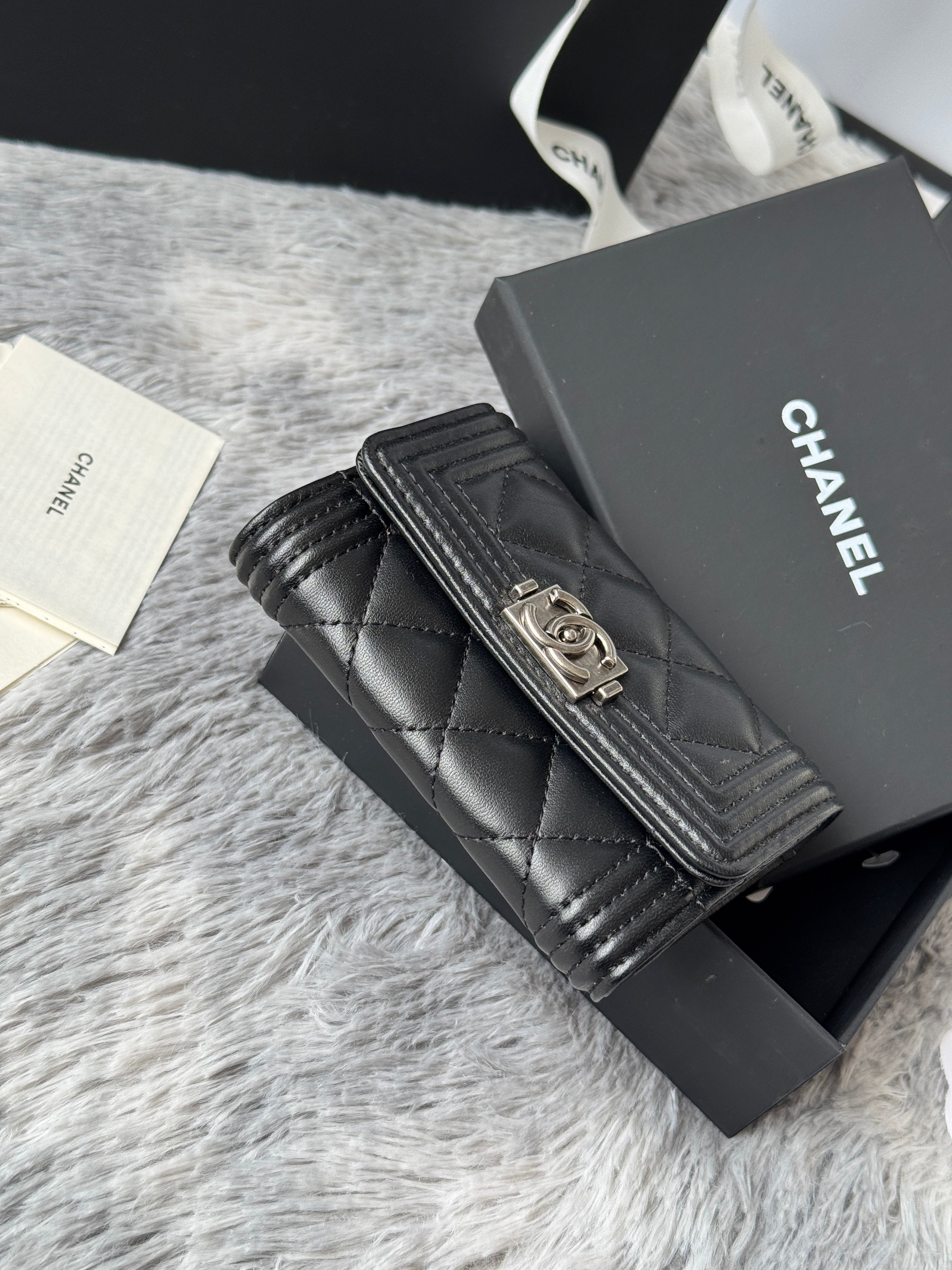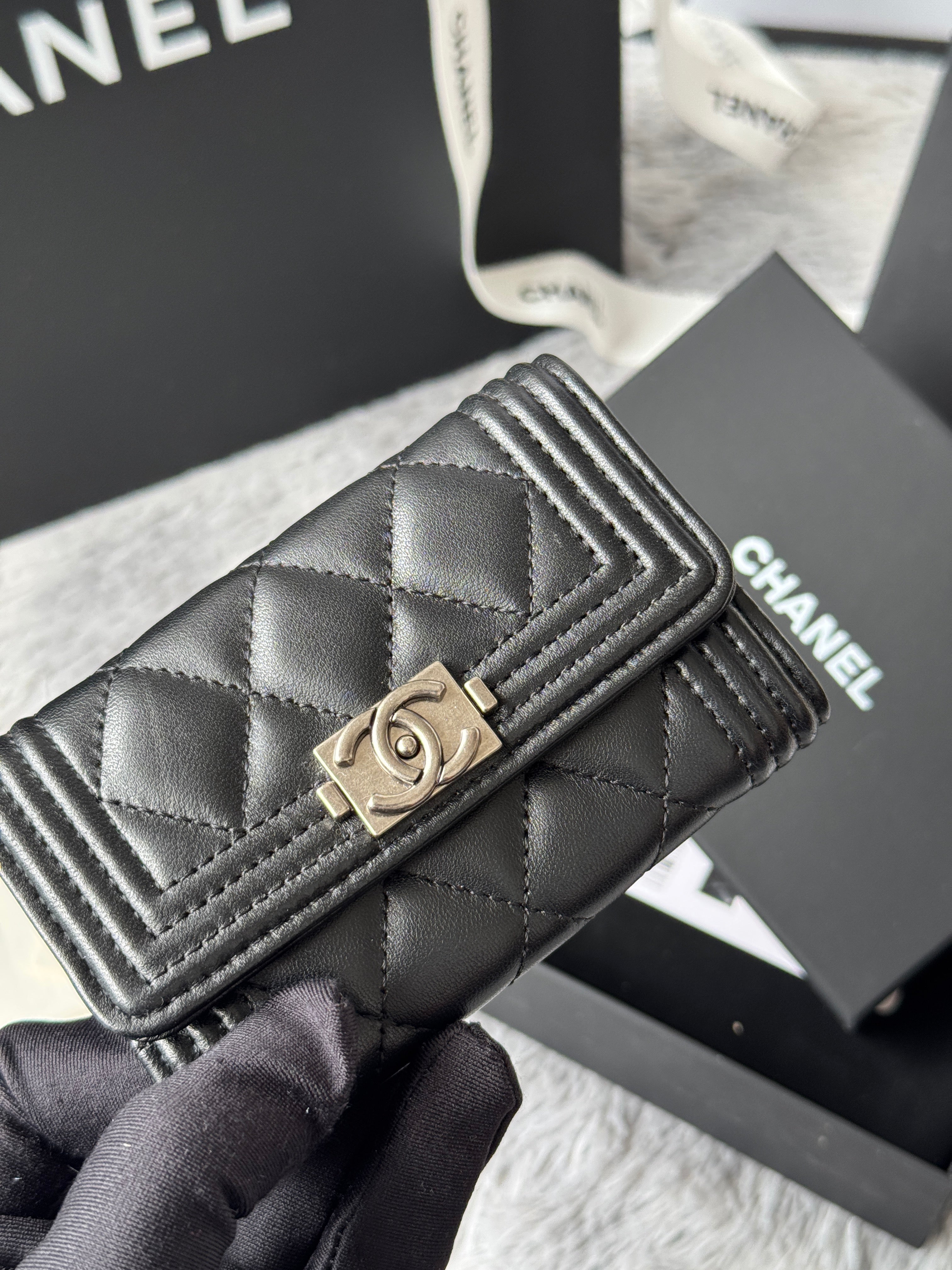 CC Boy Flap Card Holder Black Sliver-tone Lambskin 242864