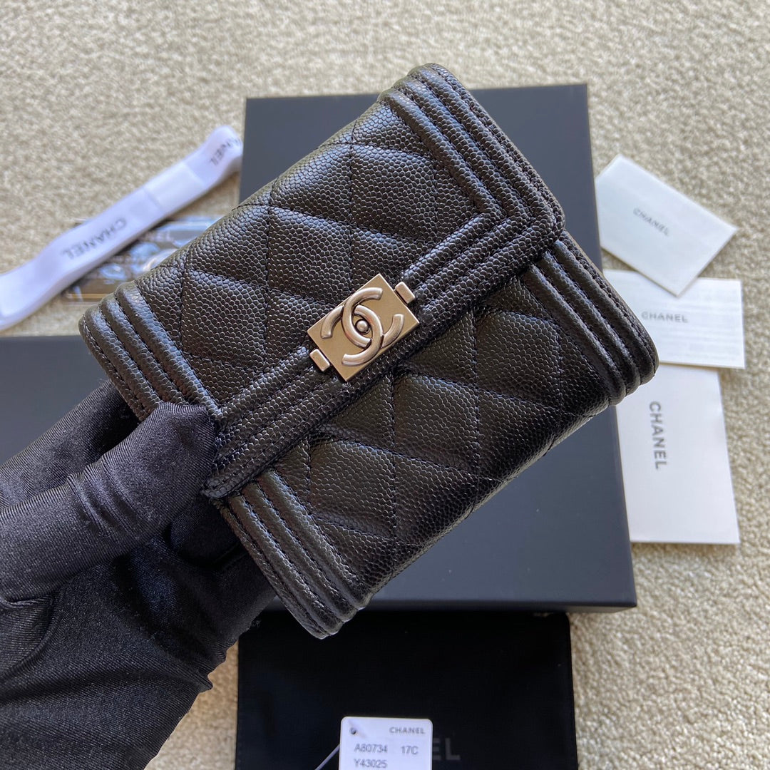CC Boy Small Flap Wallet Black Caviar Sliver Steel 156528