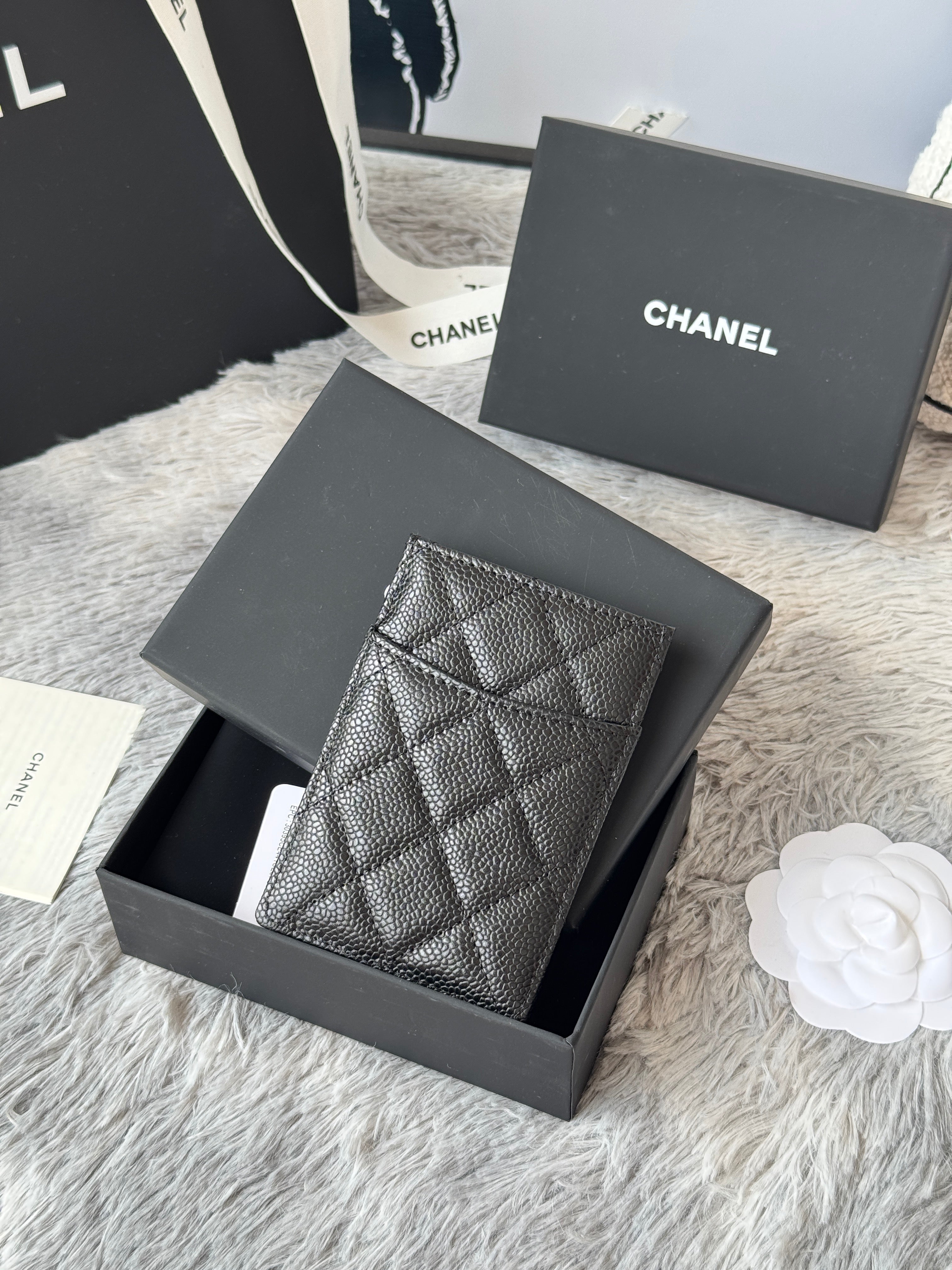 CC Carld Holder Black Gold-tone Metal Grain Calfskin 242682