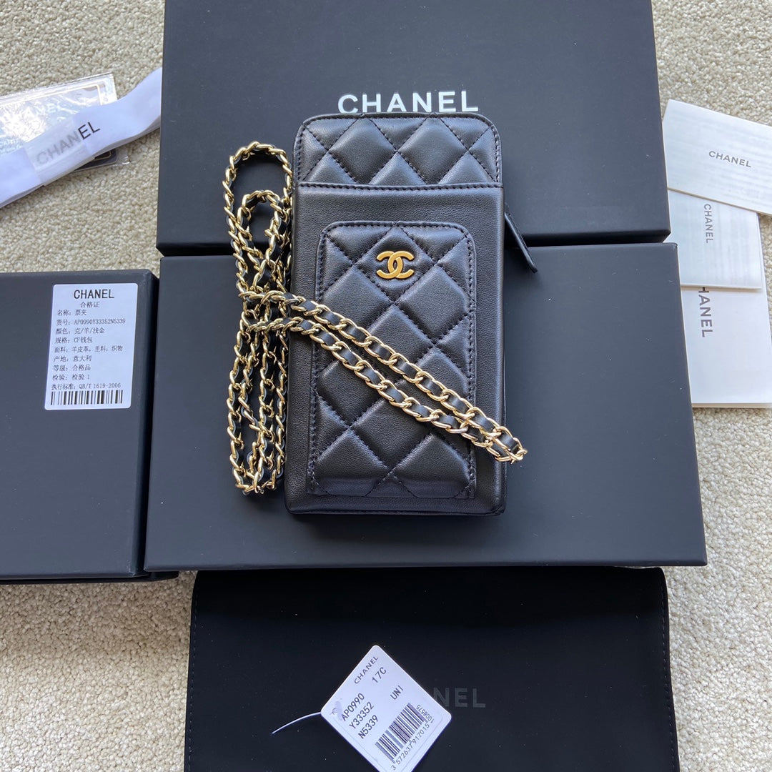 CC Compact Double Pouch Black Sheepskin GHW 229643